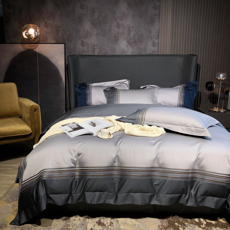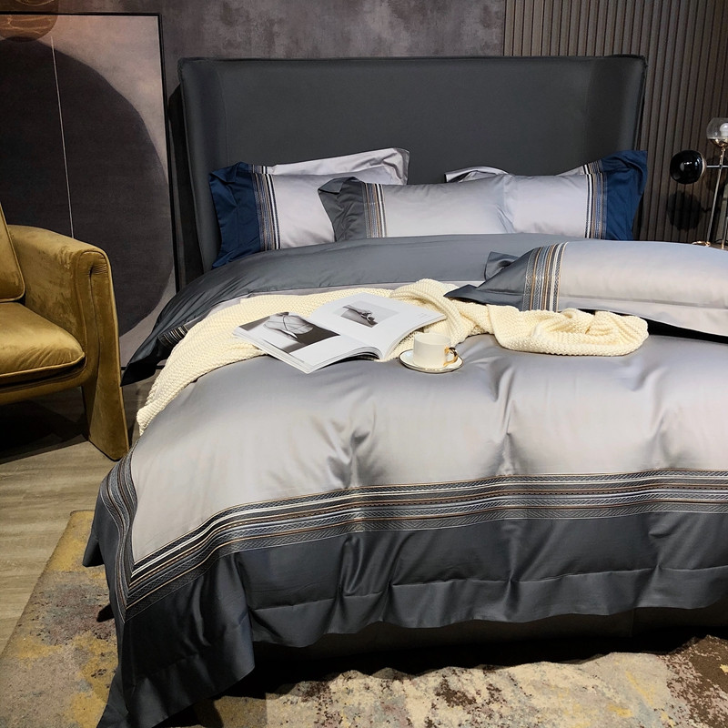 涞澳家纺 2021新款100支全棉长绒棉工艺款四件套-典雅灰