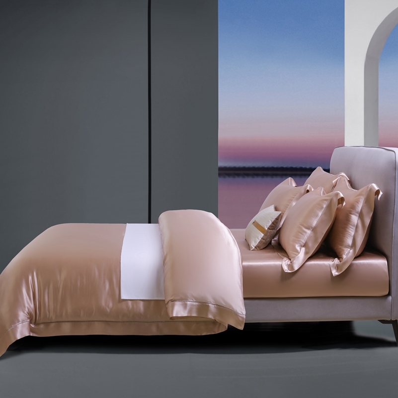 晋瑞红顶鹅绒馆新款纯色全真丝工艺款四件套 胭脂粉