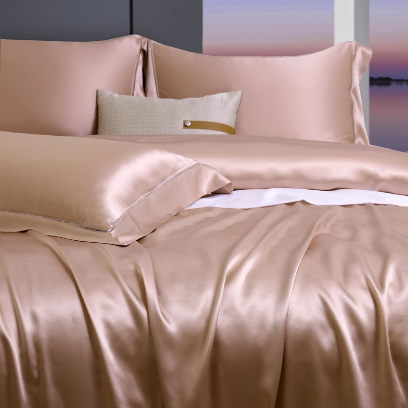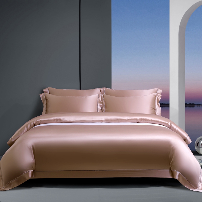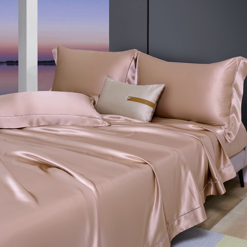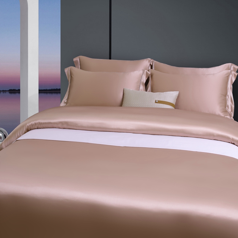 商品名称:晋瑞红顶鹅绒馆新款纯色全真丝工艺款四件套 胭脂粉