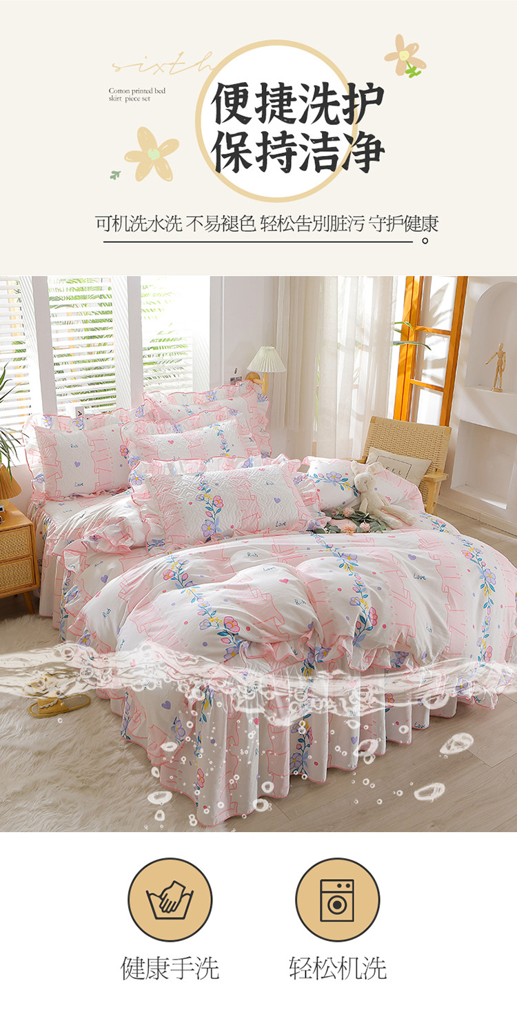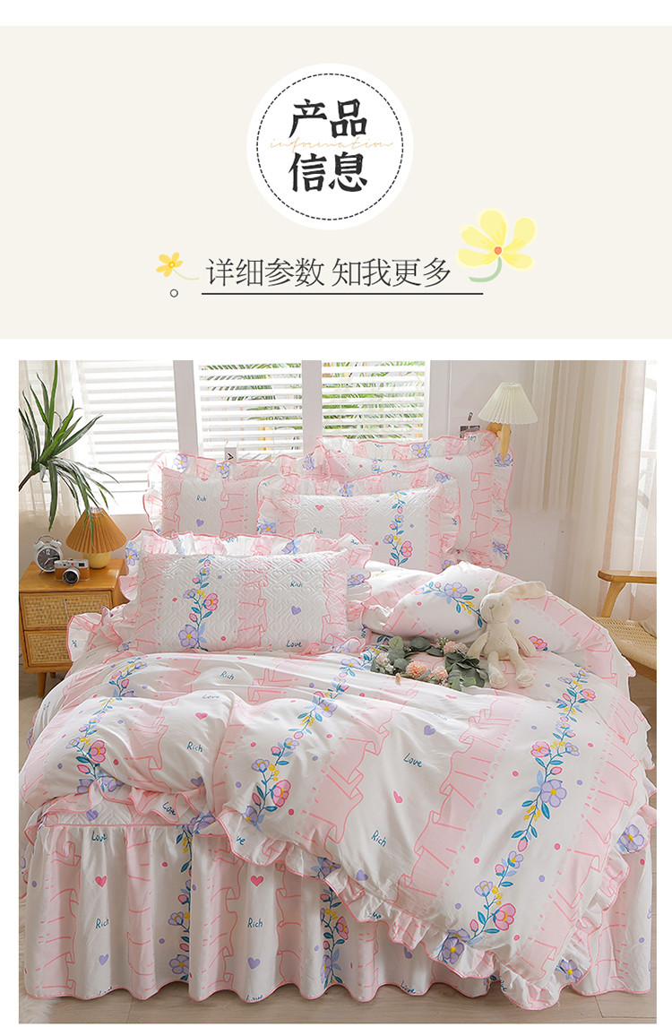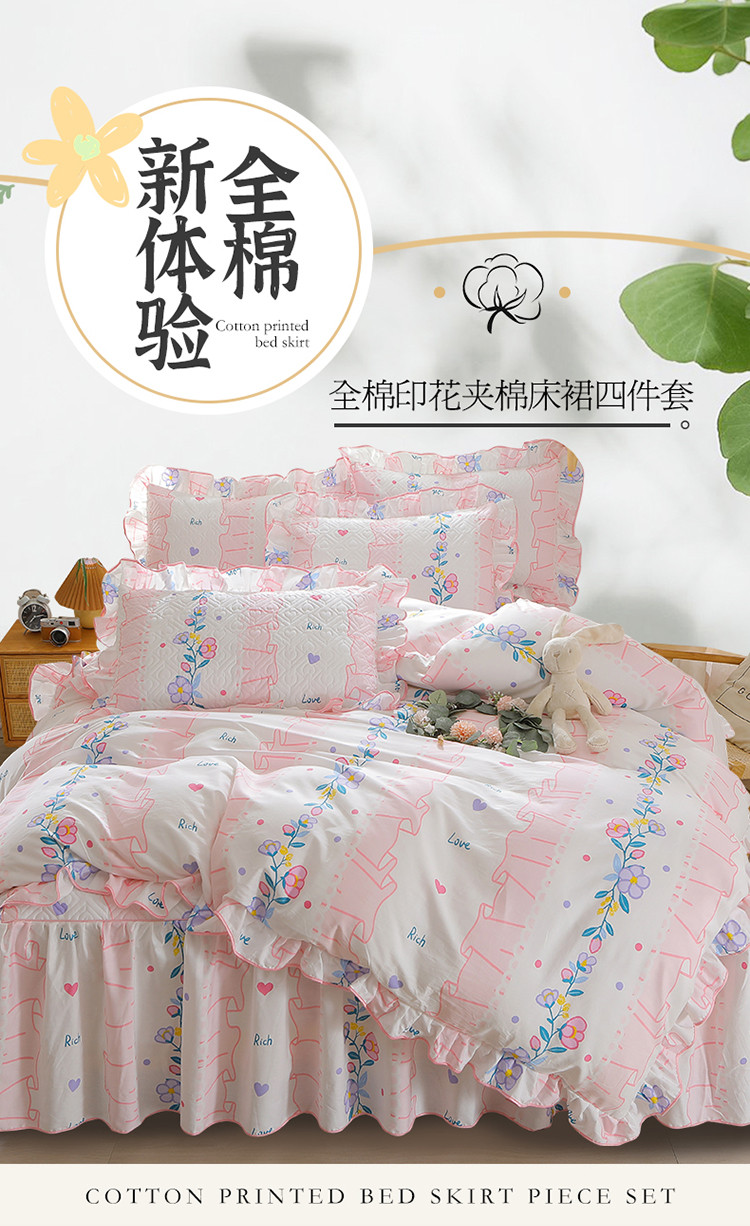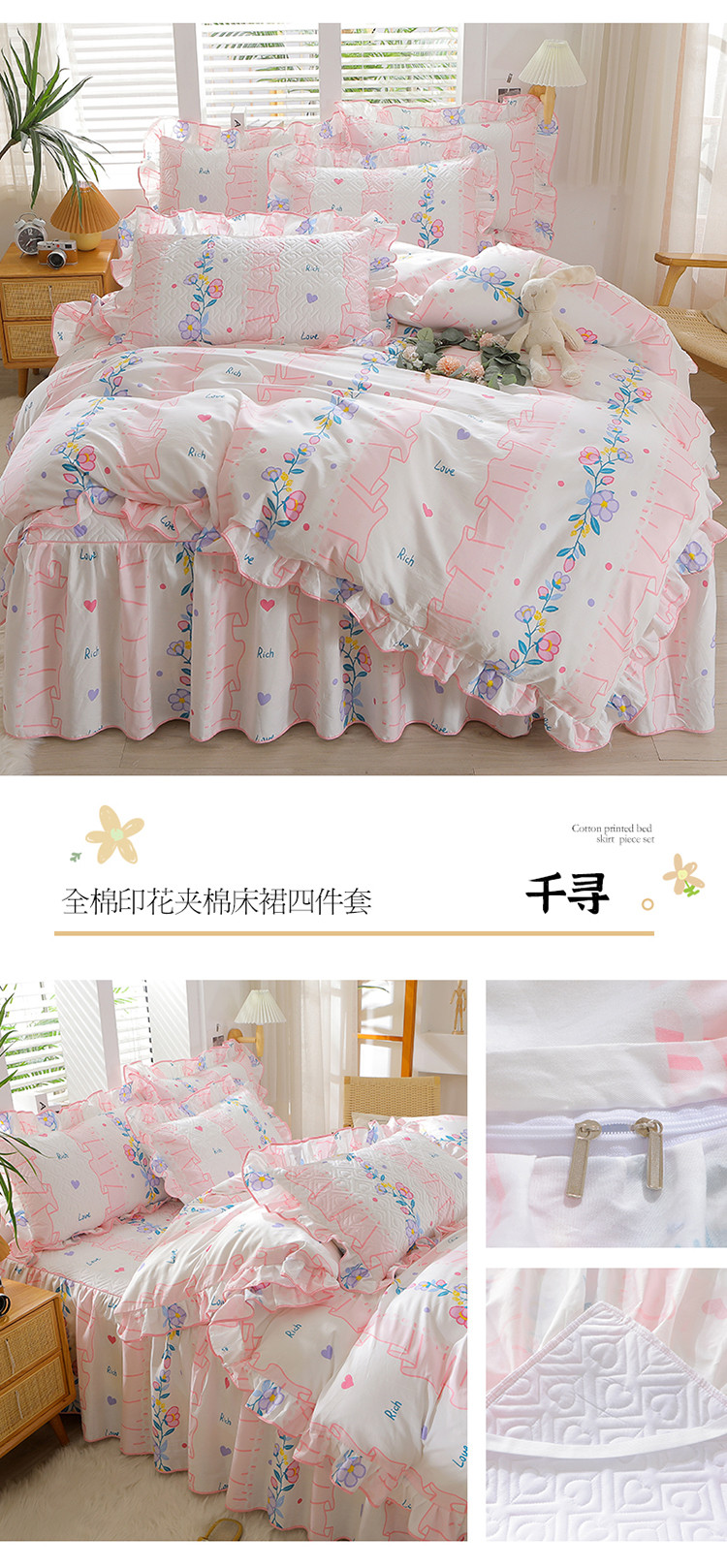 当前位置: 91家纺网 > 商品网购 > 床品套件 > 四件套 > 全棉普通四件套 > 宜凡家纺 2023新款全棉印花花边床裙四件套 千寻