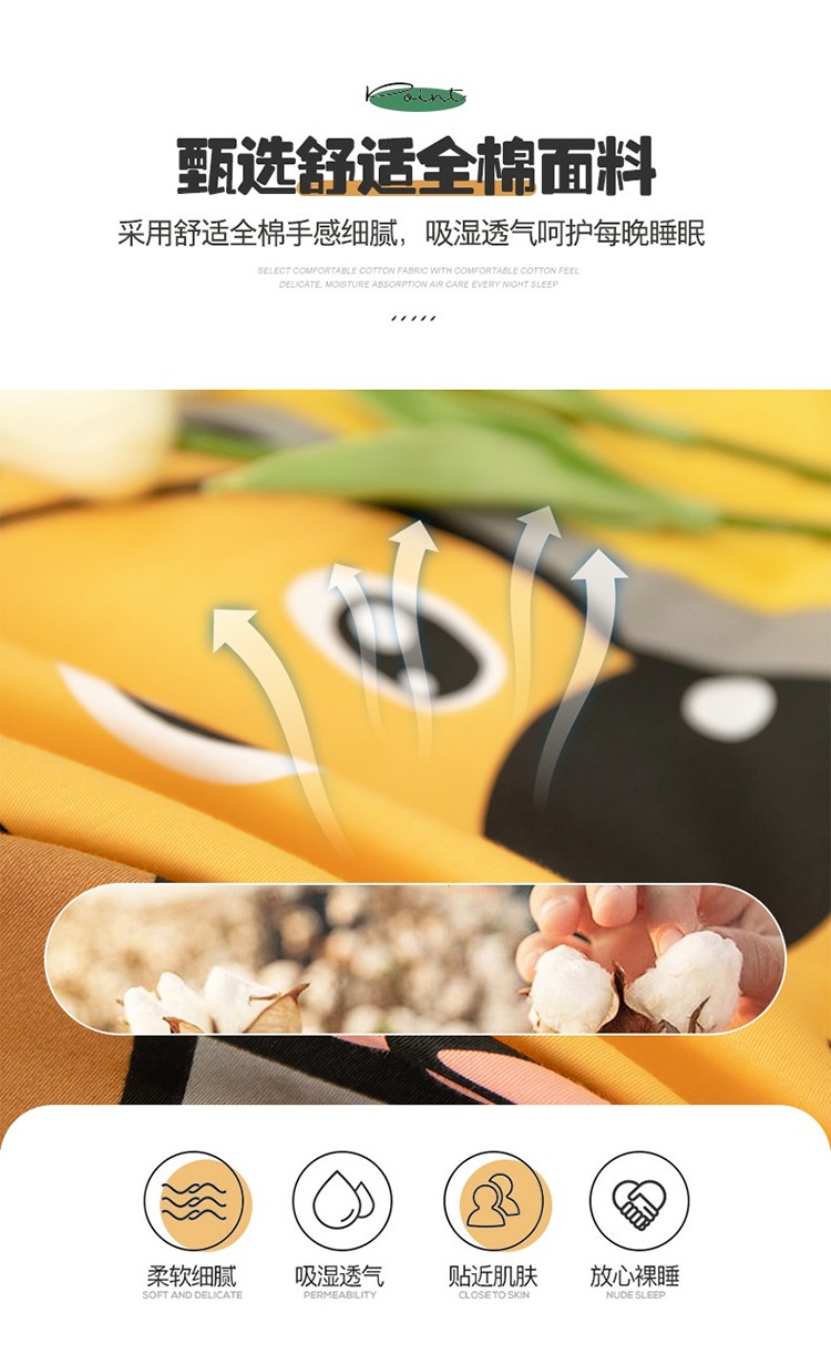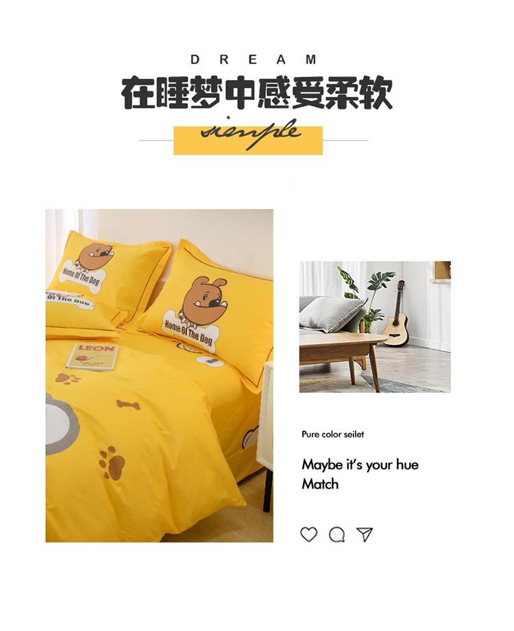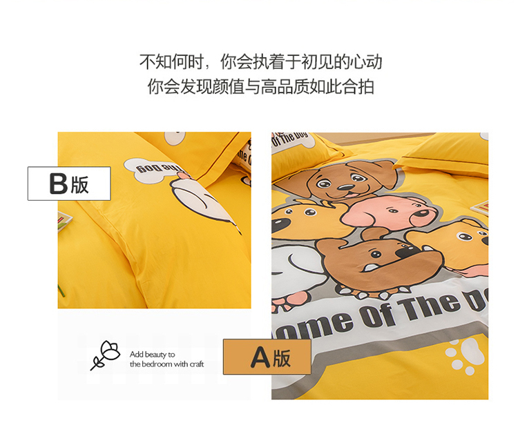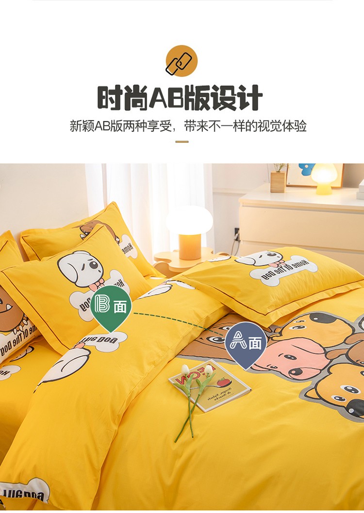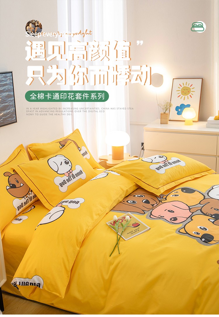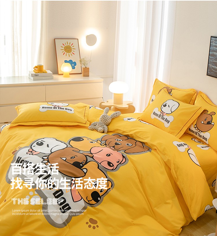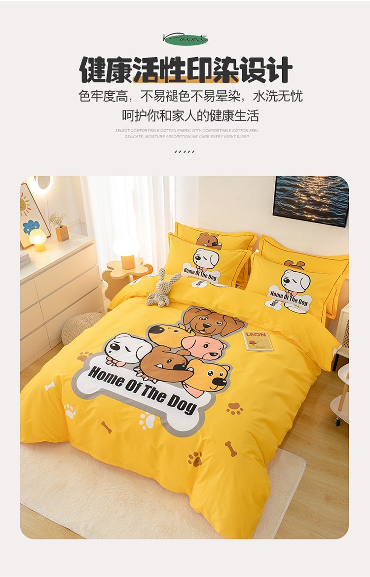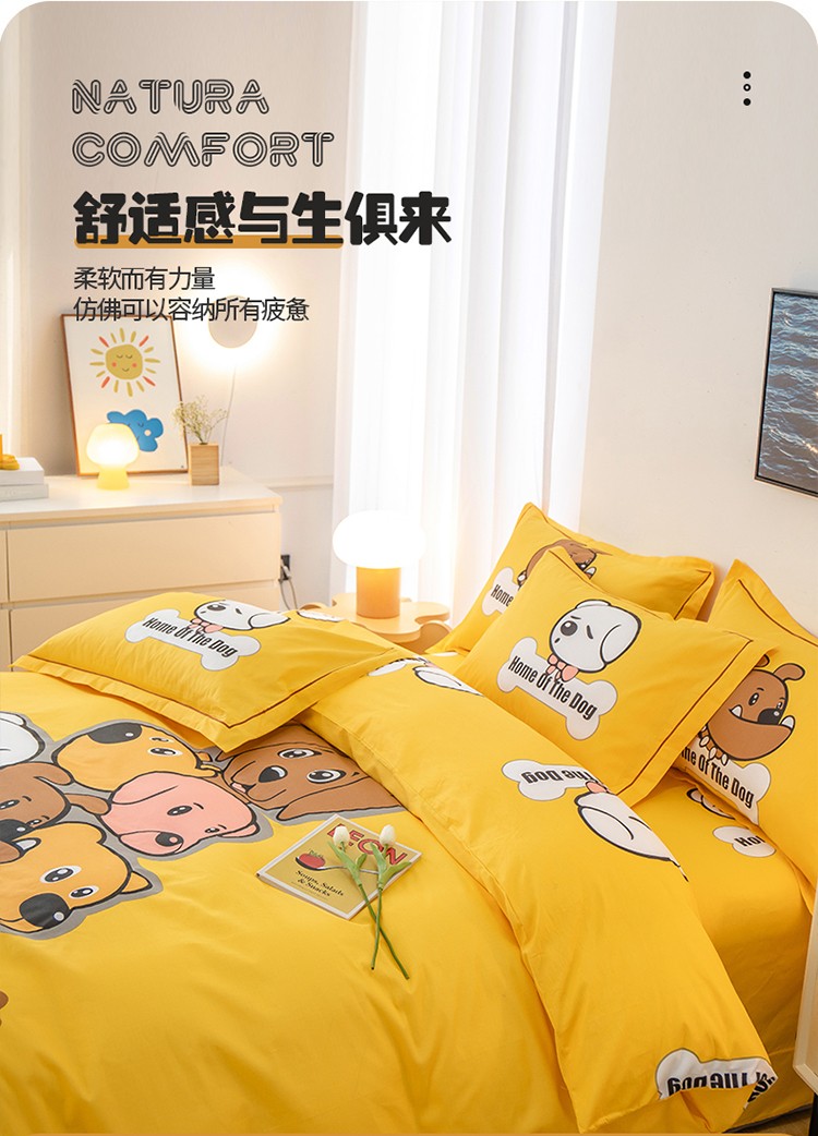 商品名称:雲归梦 2022新款全棉大版四件套 卡通花型 汪星人-黄