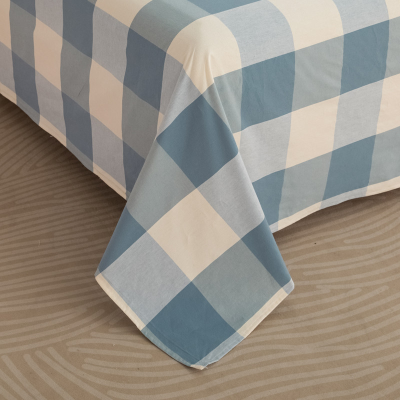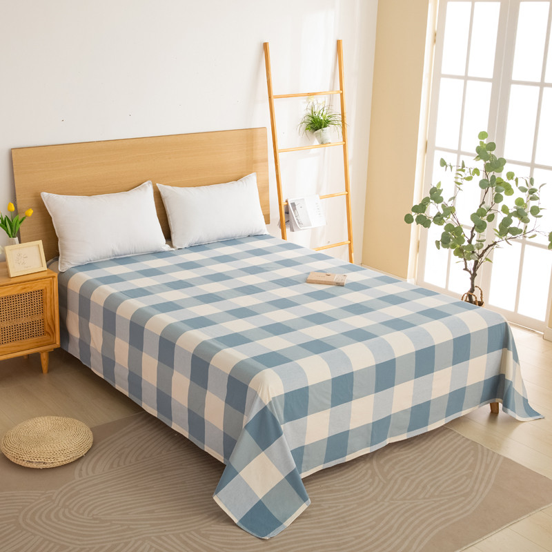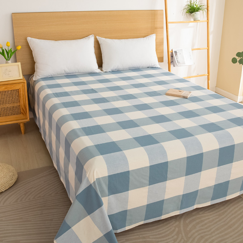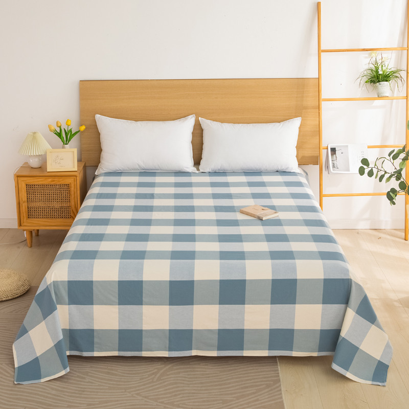 杜先生 2023新款全棉无印风老粗布单床单直播爆款 无印风格子-蓝