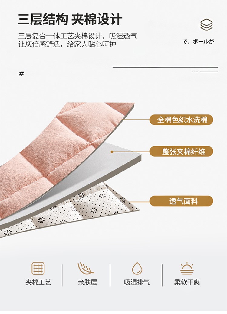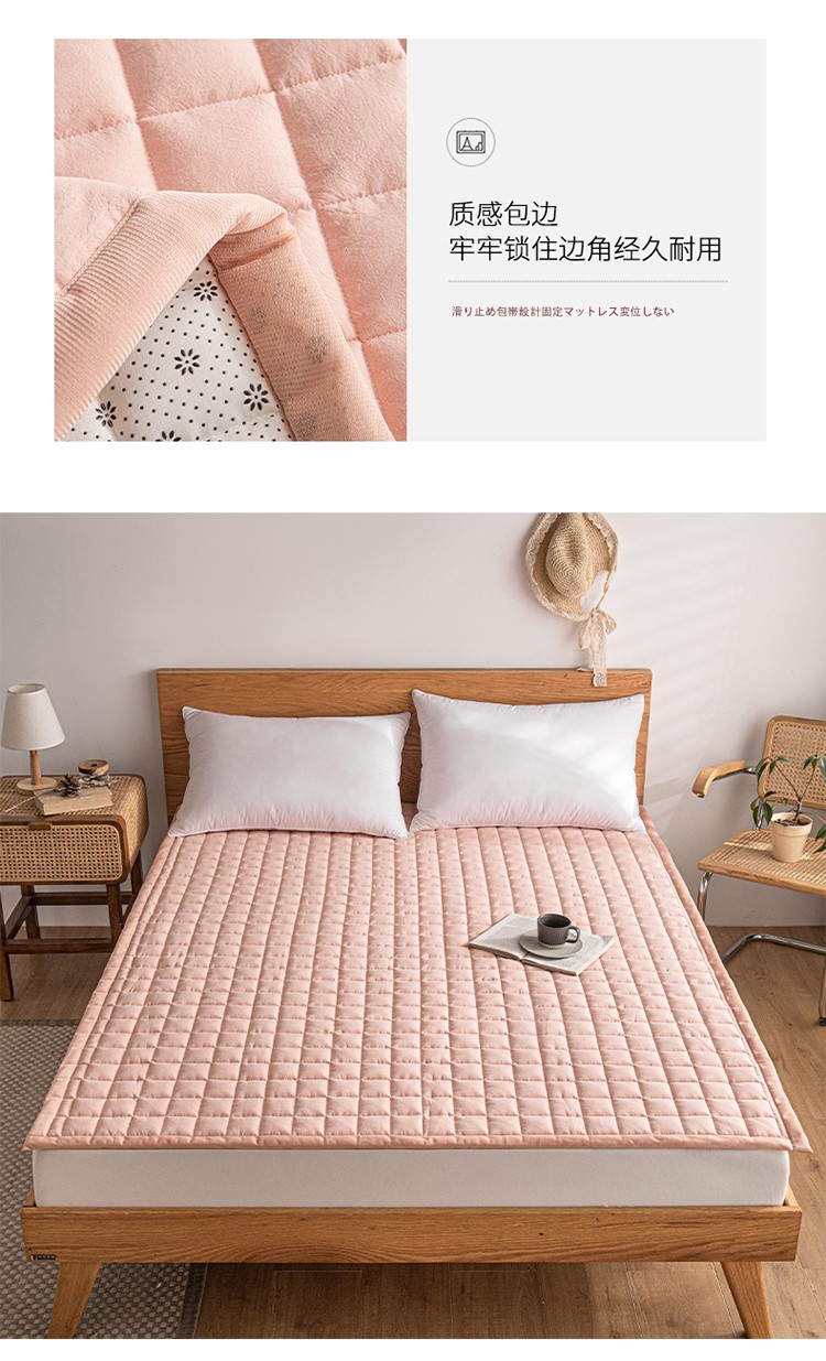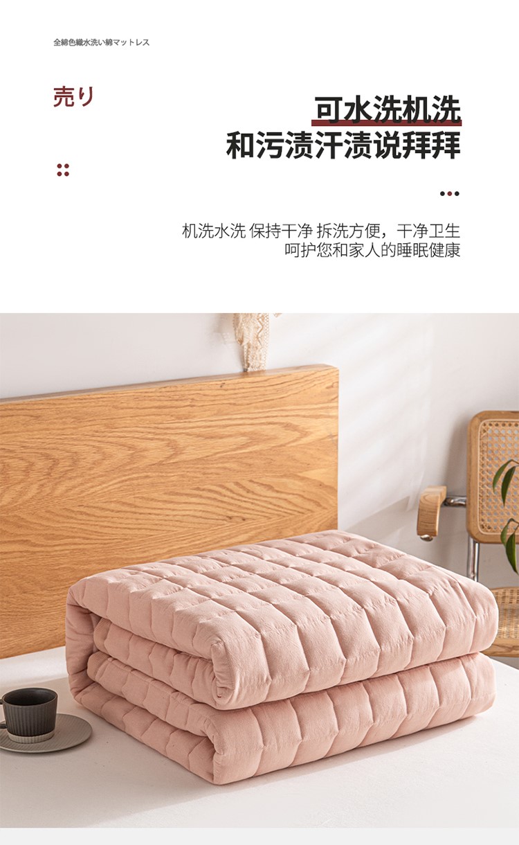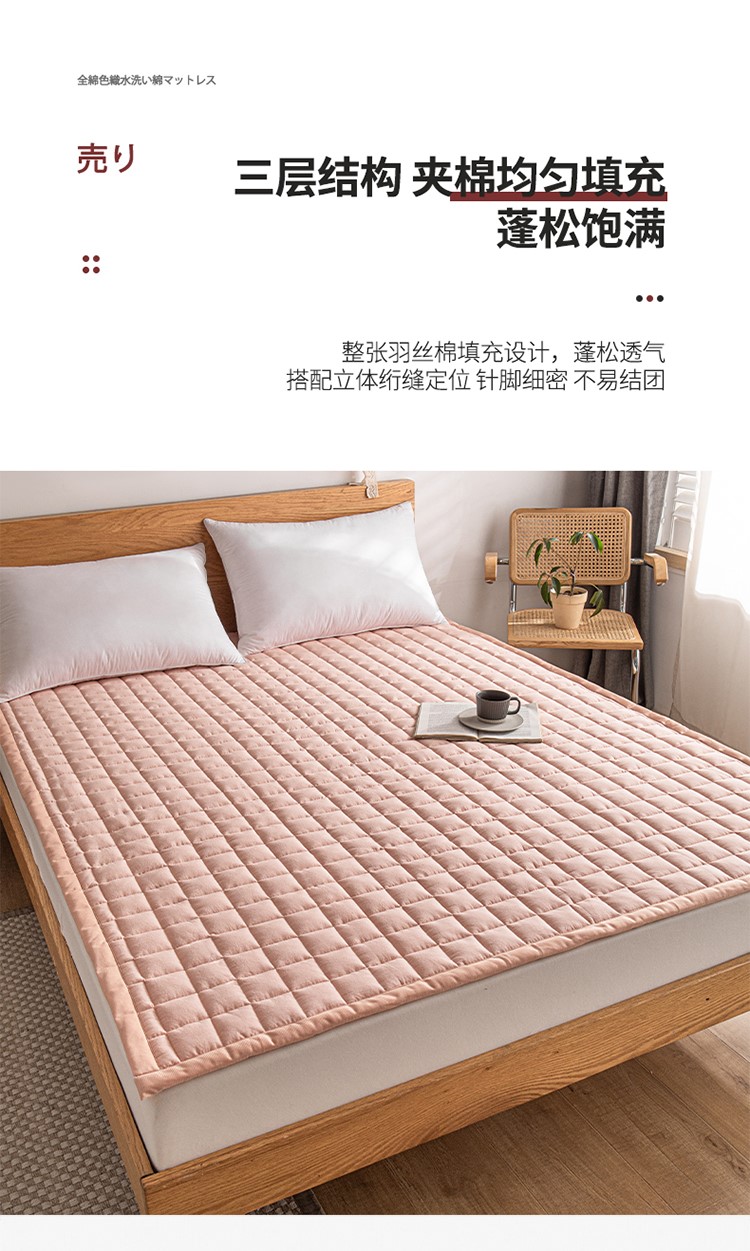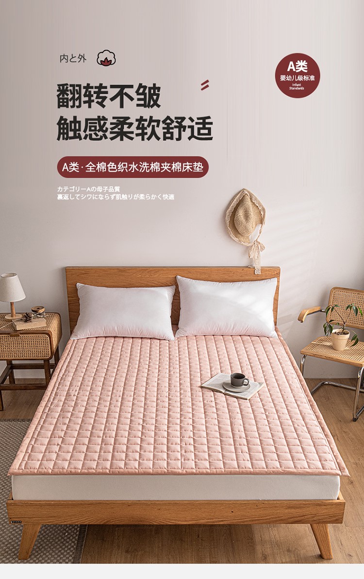 商品名称:东宇 2022新款A类全棉色织水洗棉夹棉床垫 粉