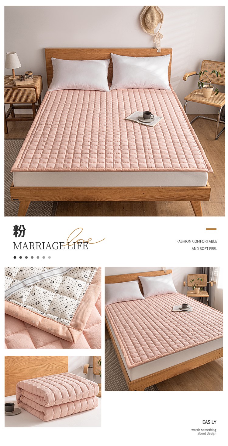 东宇 2022新款A类全棉色织水洗棉夹棉床垫 粉