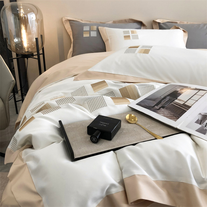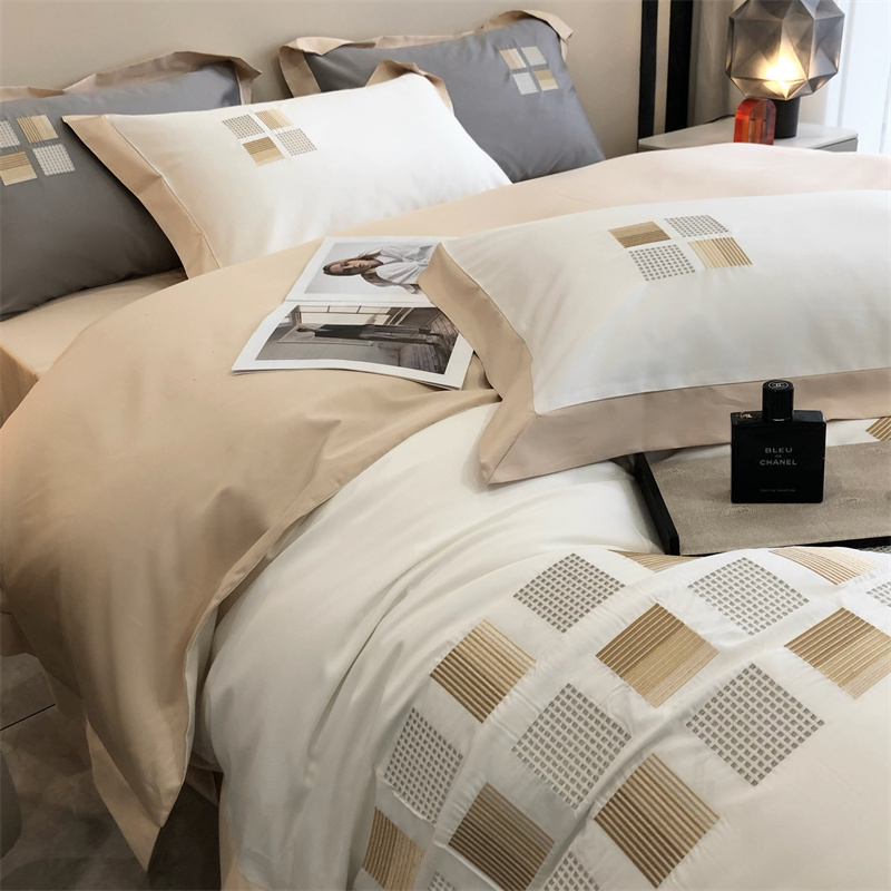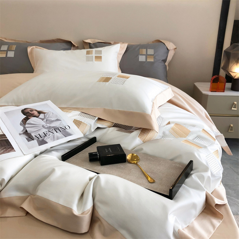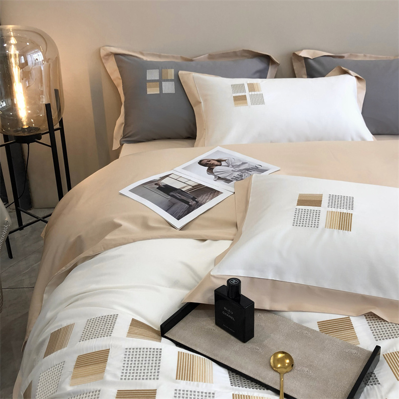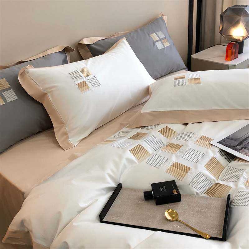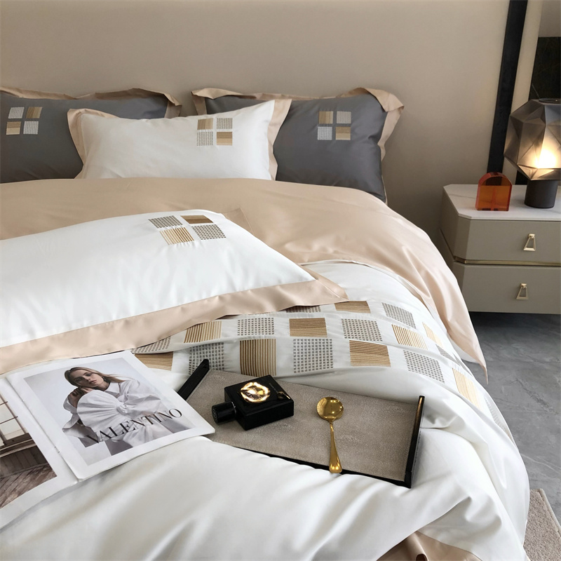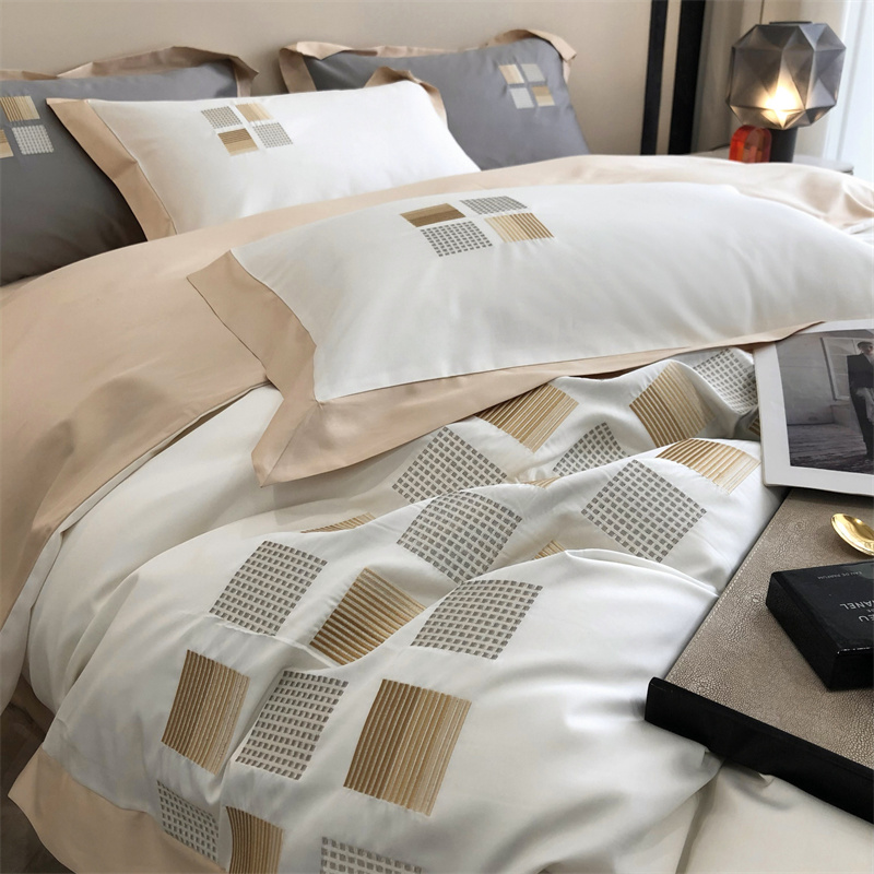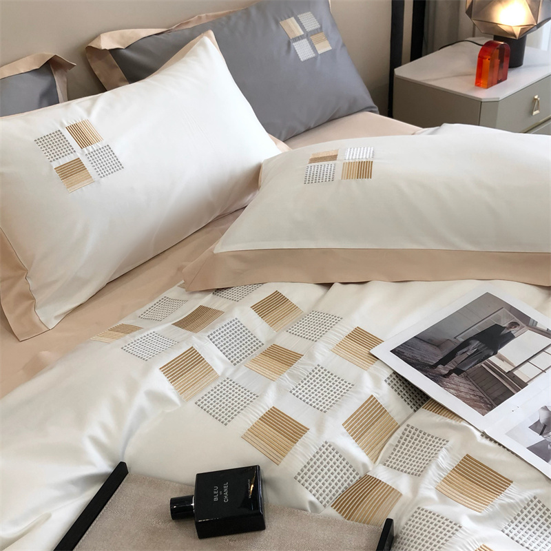 商品名称:太古汇 2022新款长绒棉高定绣花魔方四件套场景一 魔方-米白