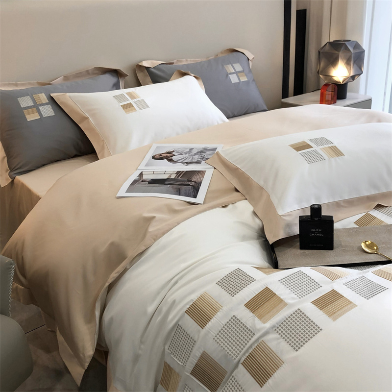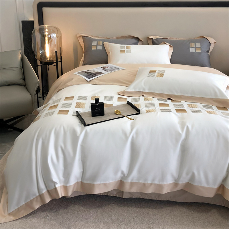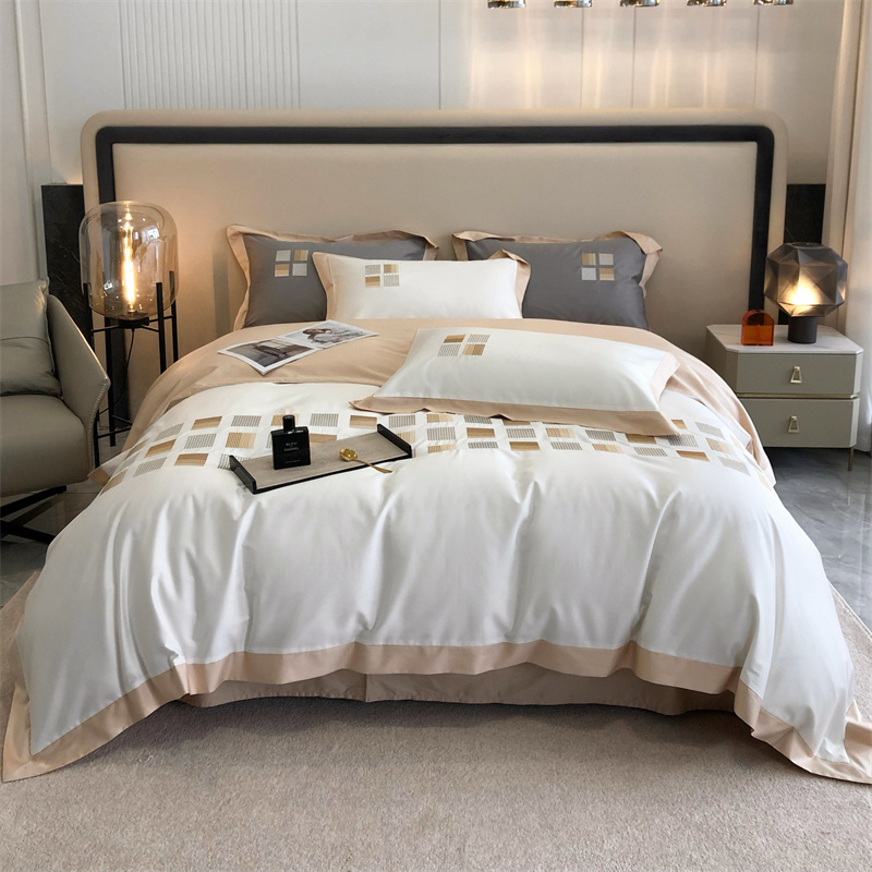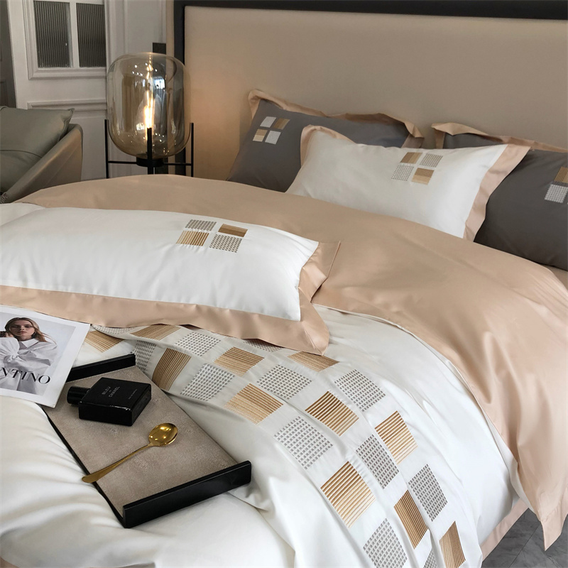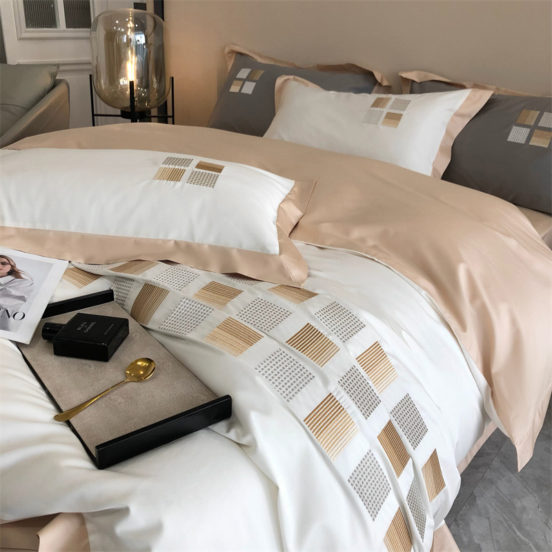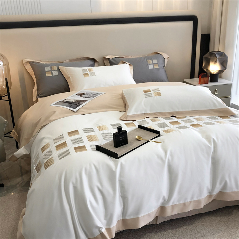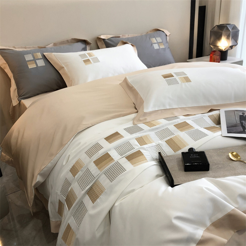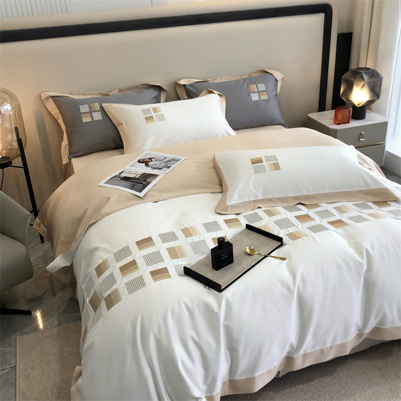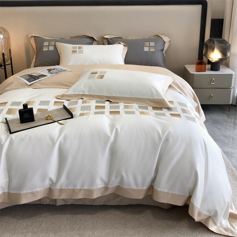 商品名称:太古汇 2022新款长绒棉高定绣花魔方四件套场景一 魔方-米白