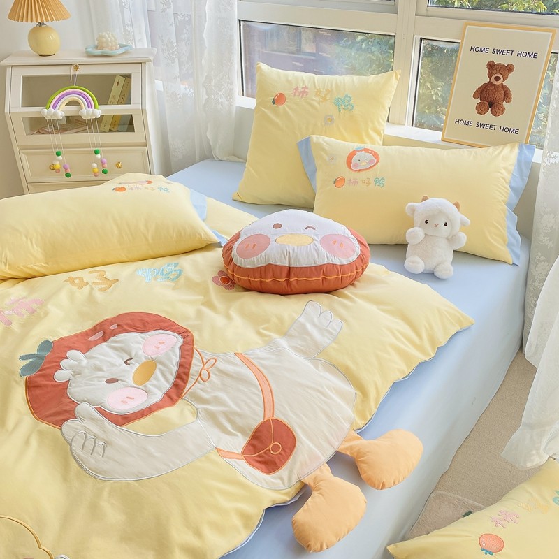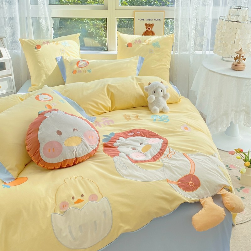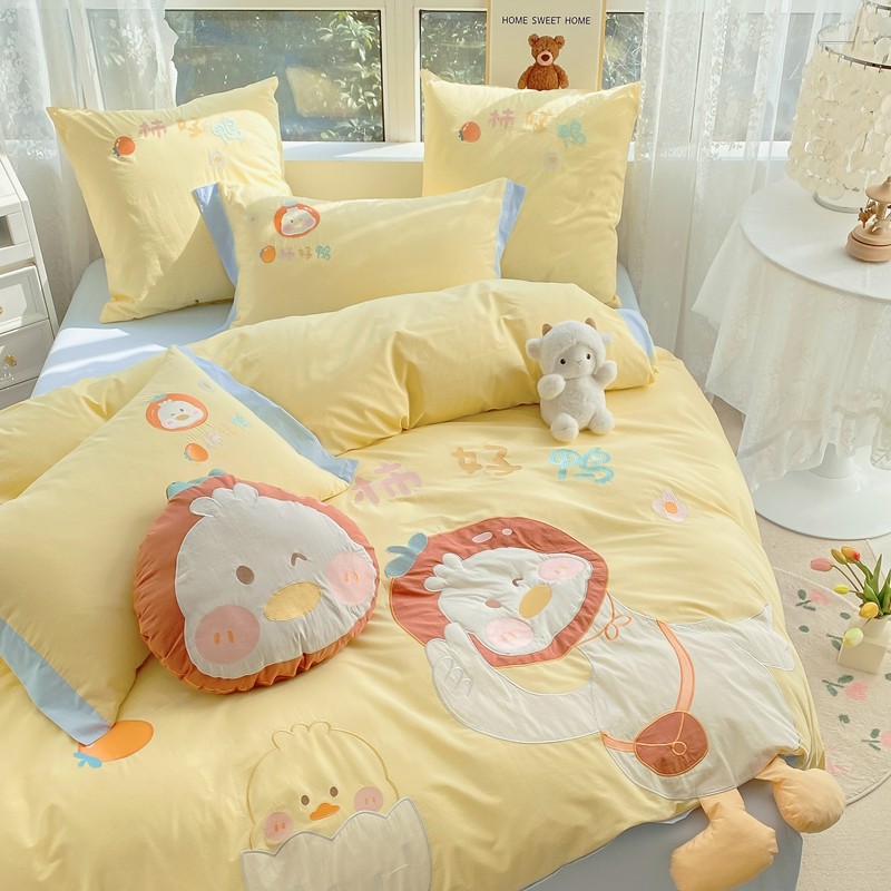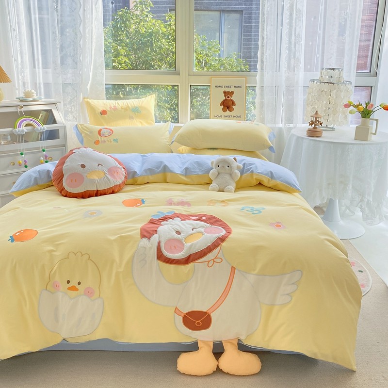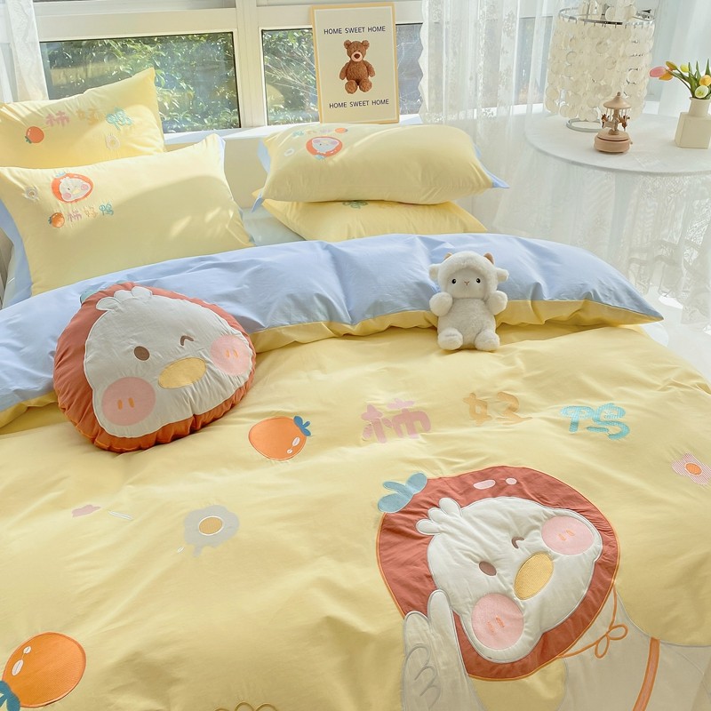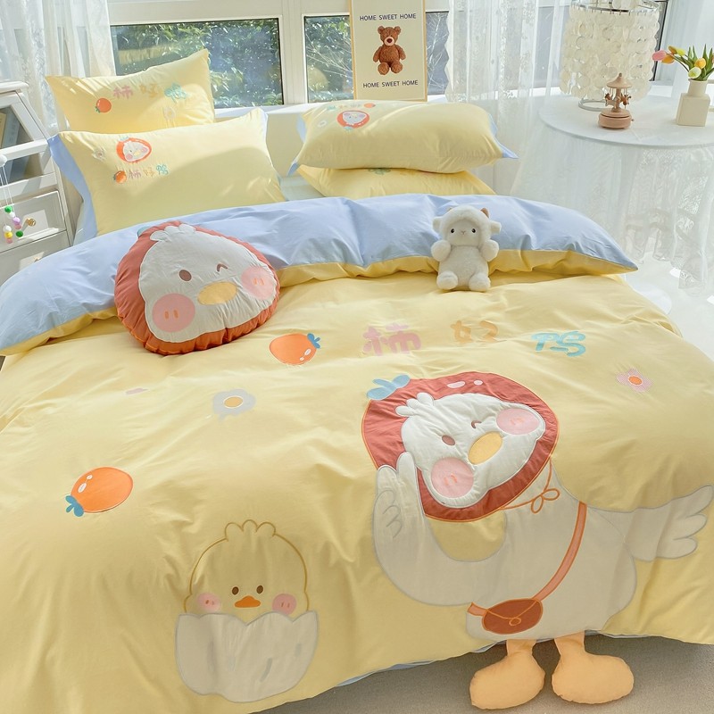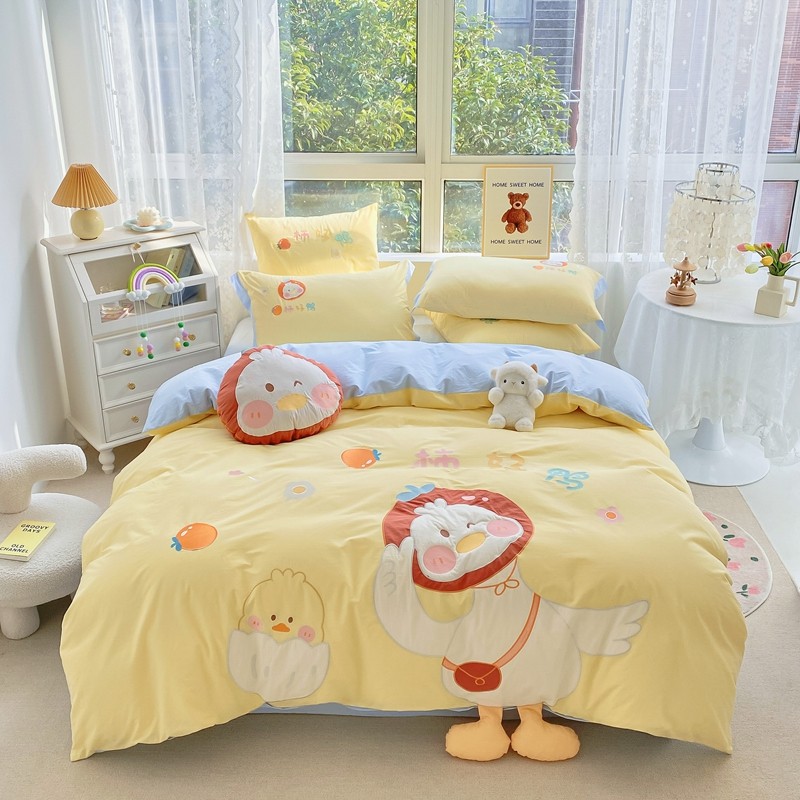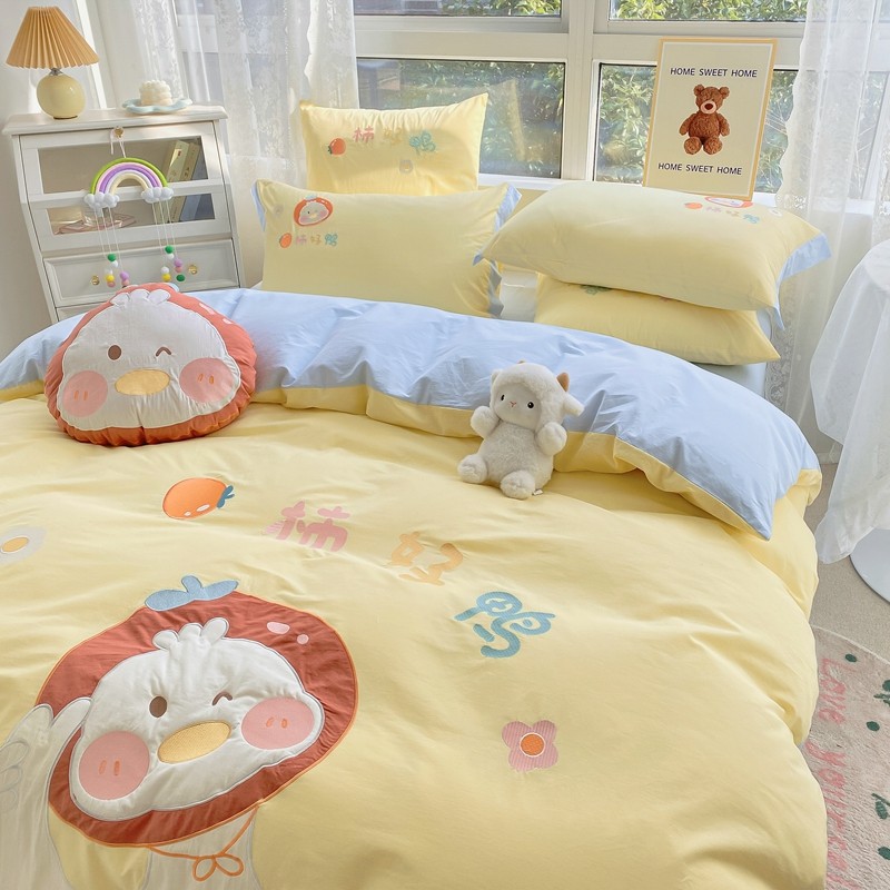 沐慕 2022新款全棉工艺款四件套-柿柿好鸭 柿柿好鸭-黄