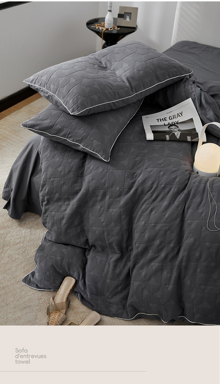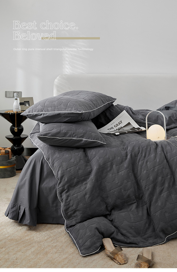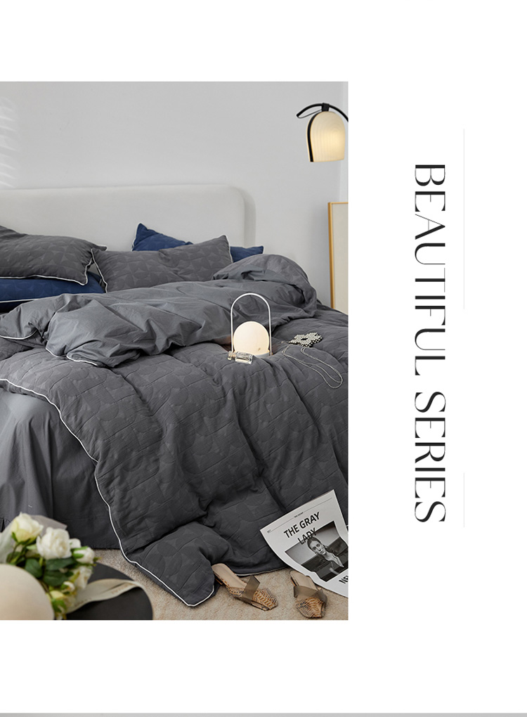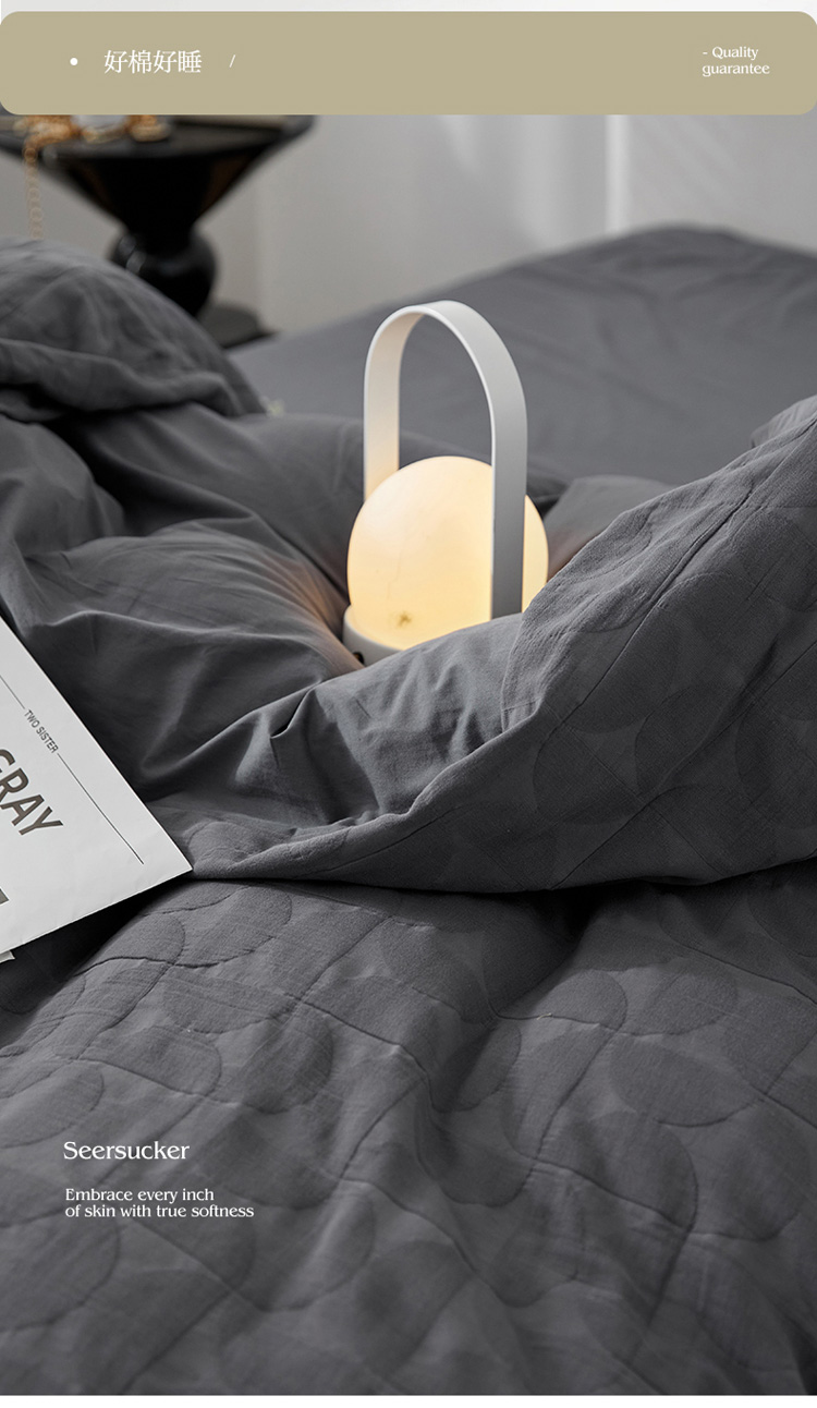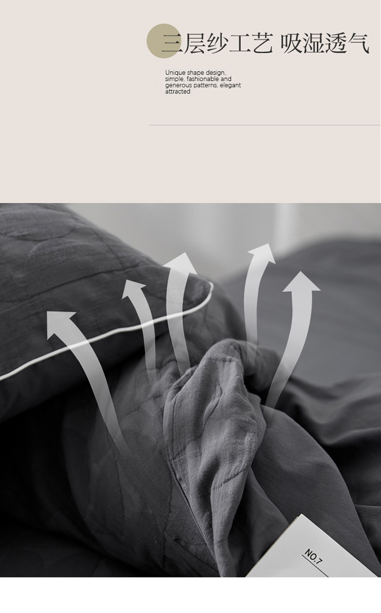 名品优仓 2023新款纯棉水洗棉三层纱提花四件套 幕灰