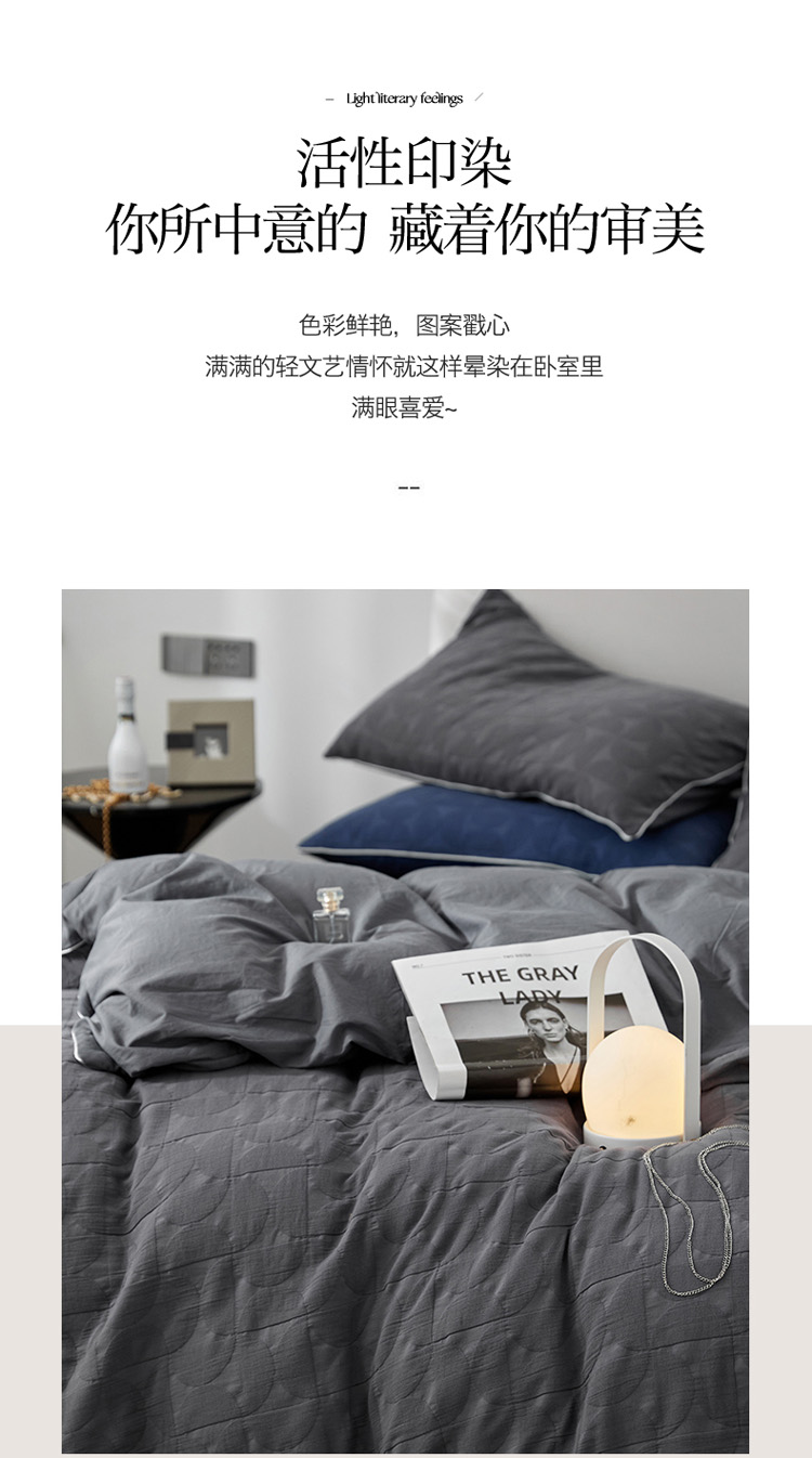 商品名称:名品优仓 2023新款纯棉水洗棉三层纱提花四件套 幕灰