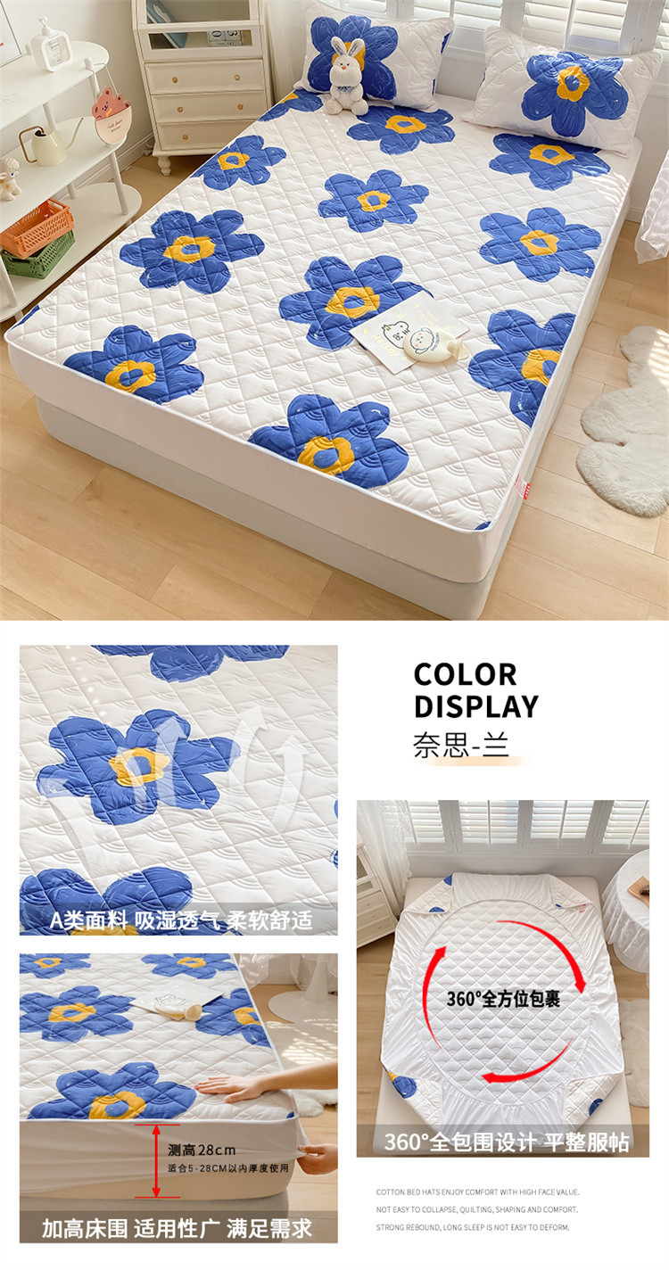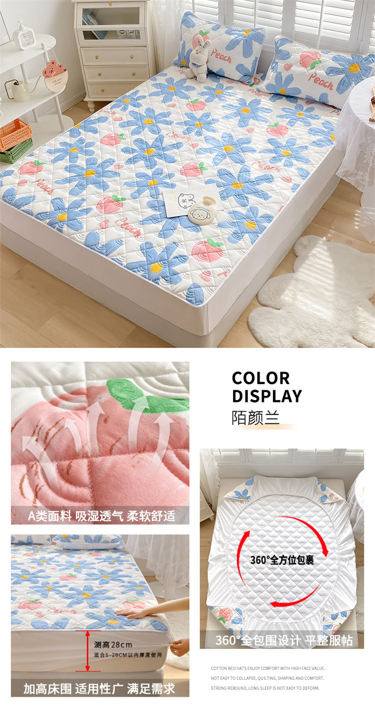(总)鑫钰 2025新款A类纯棉夹棉床笠学生宿舍专用90x190-80x190-花漾山茶格,花漾山茶格-粉,花漾山茶格-蓝,花漾山茶格-灰
