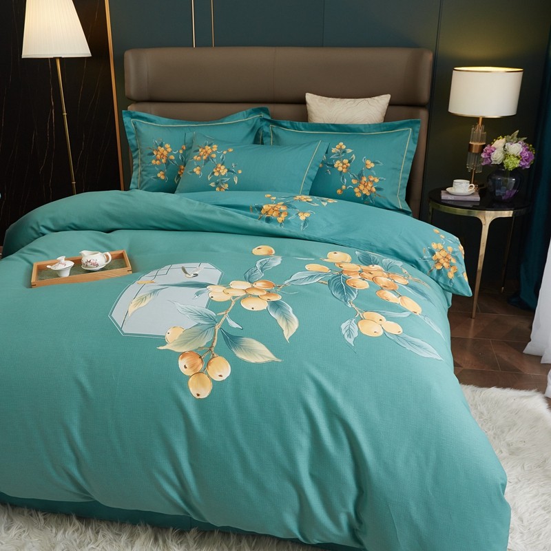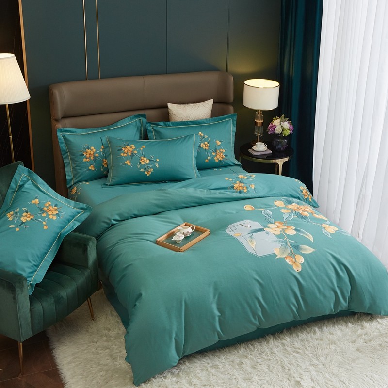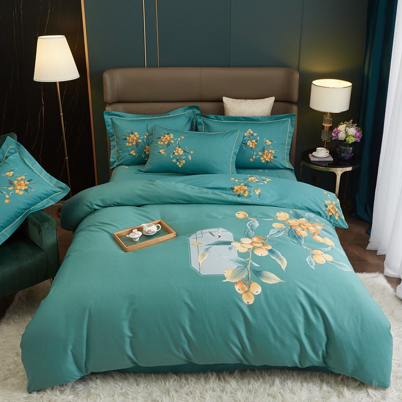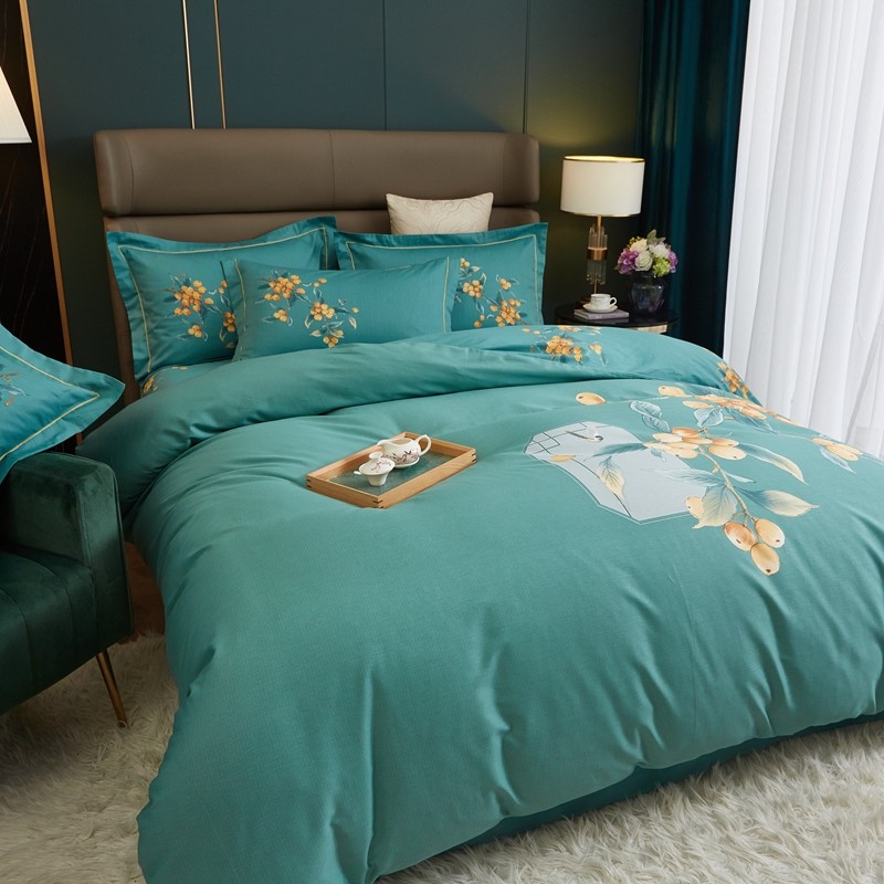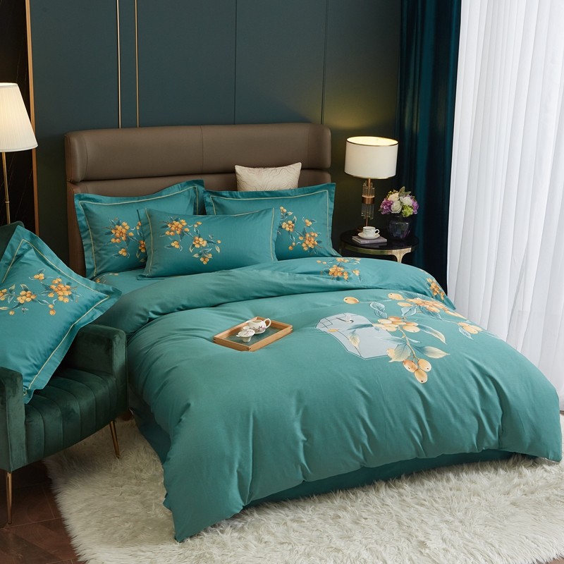 (总)惠居家 2023新款 13376全棉刺绣四件套 兰亭系列,牛果绿,豆沙,高级灰,桔色,森林绿,天空蓝,温馨紫
