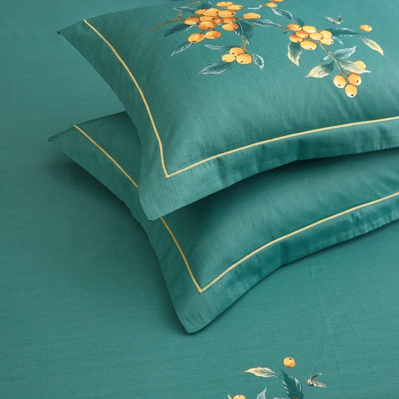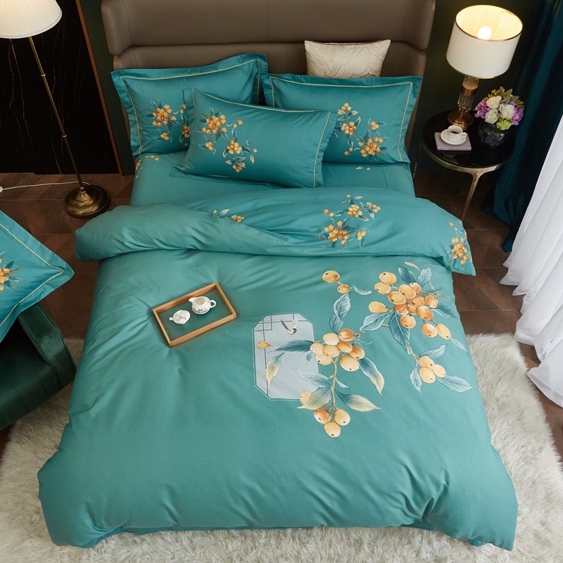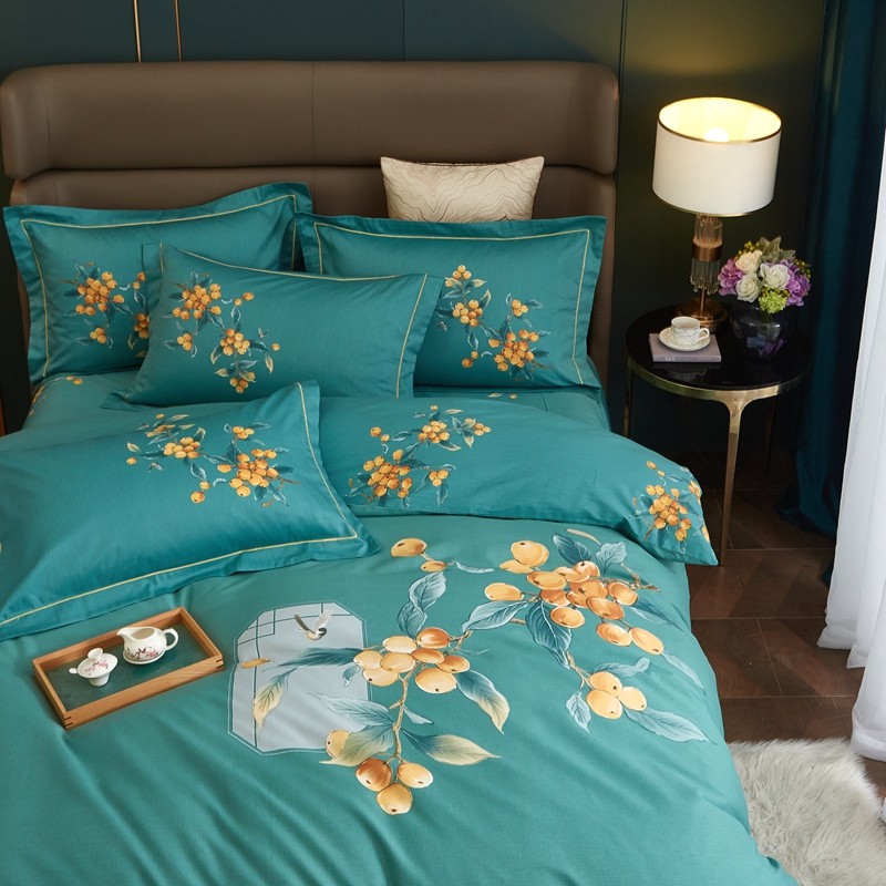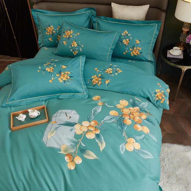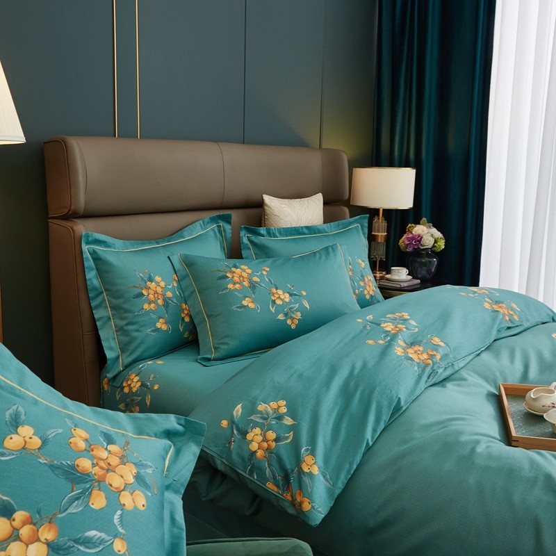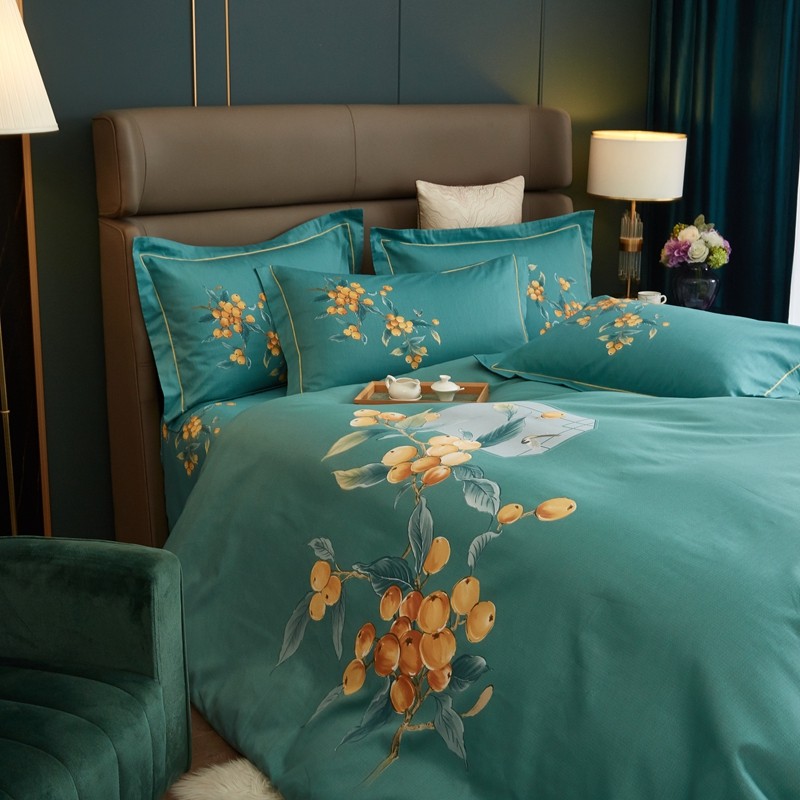 (总)惠居家 2023新款 13376全棉刺绣四件套 兰亭系列,牛果绿,豆沙,高级灰,桔色,森林绿,天空蓝,温馨紫