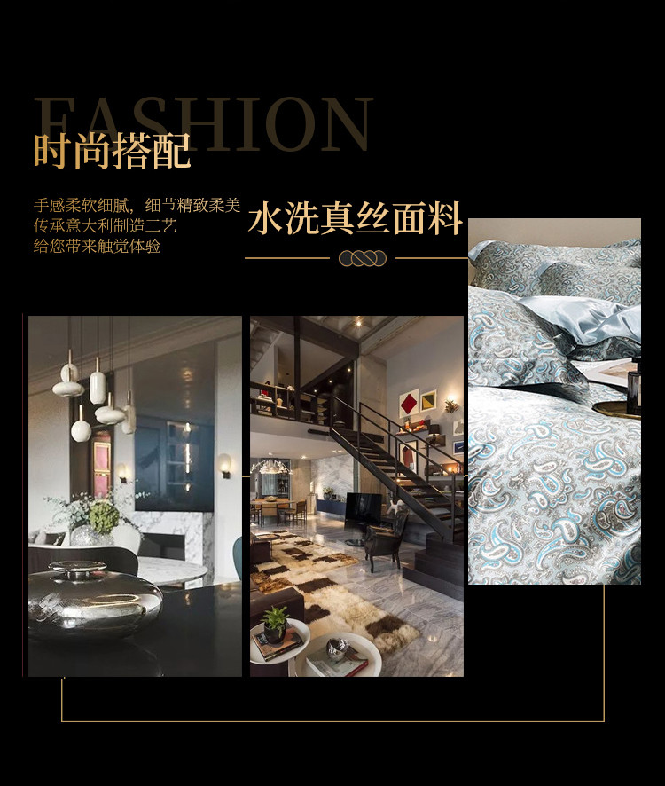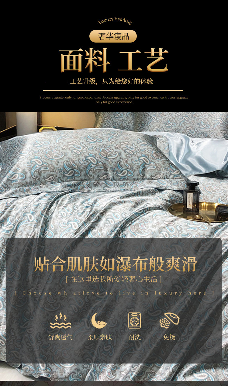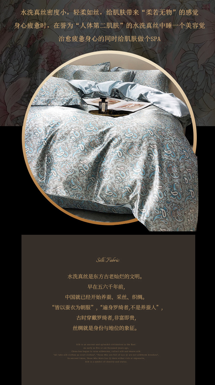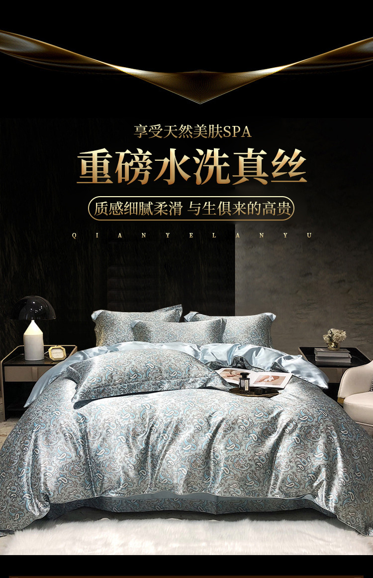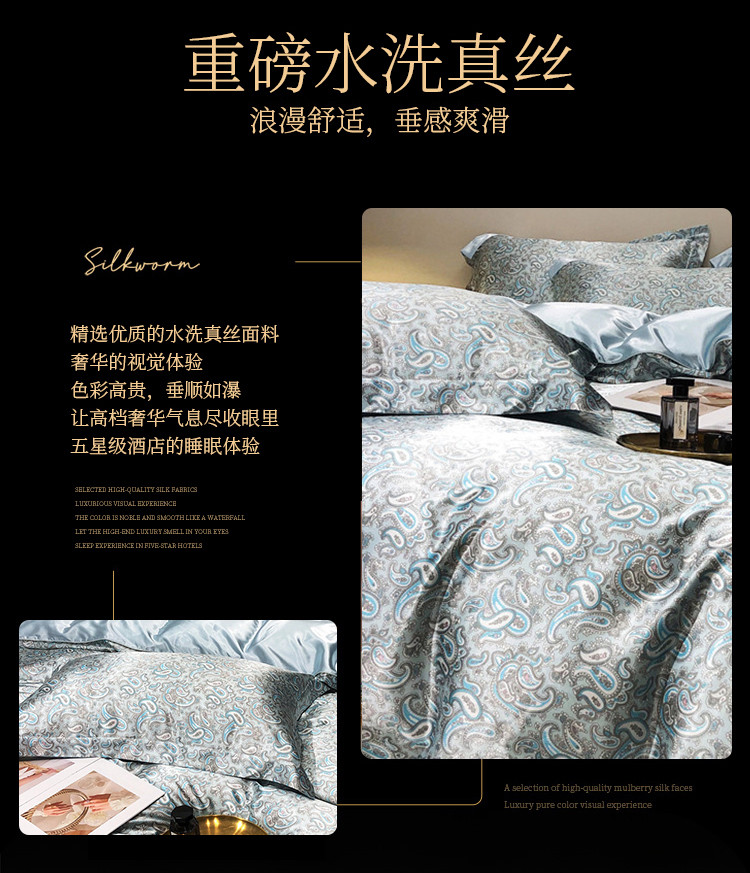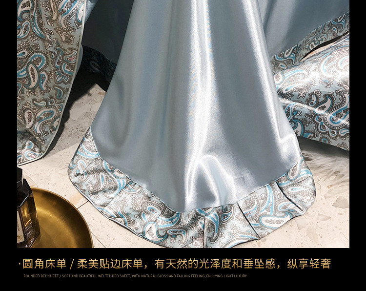 黄鹂鸟 2025新款高端轻奢丝滑裸睡丝绸数码印花水洗真丝天丝四件套系列 -风格一 腰果蓝