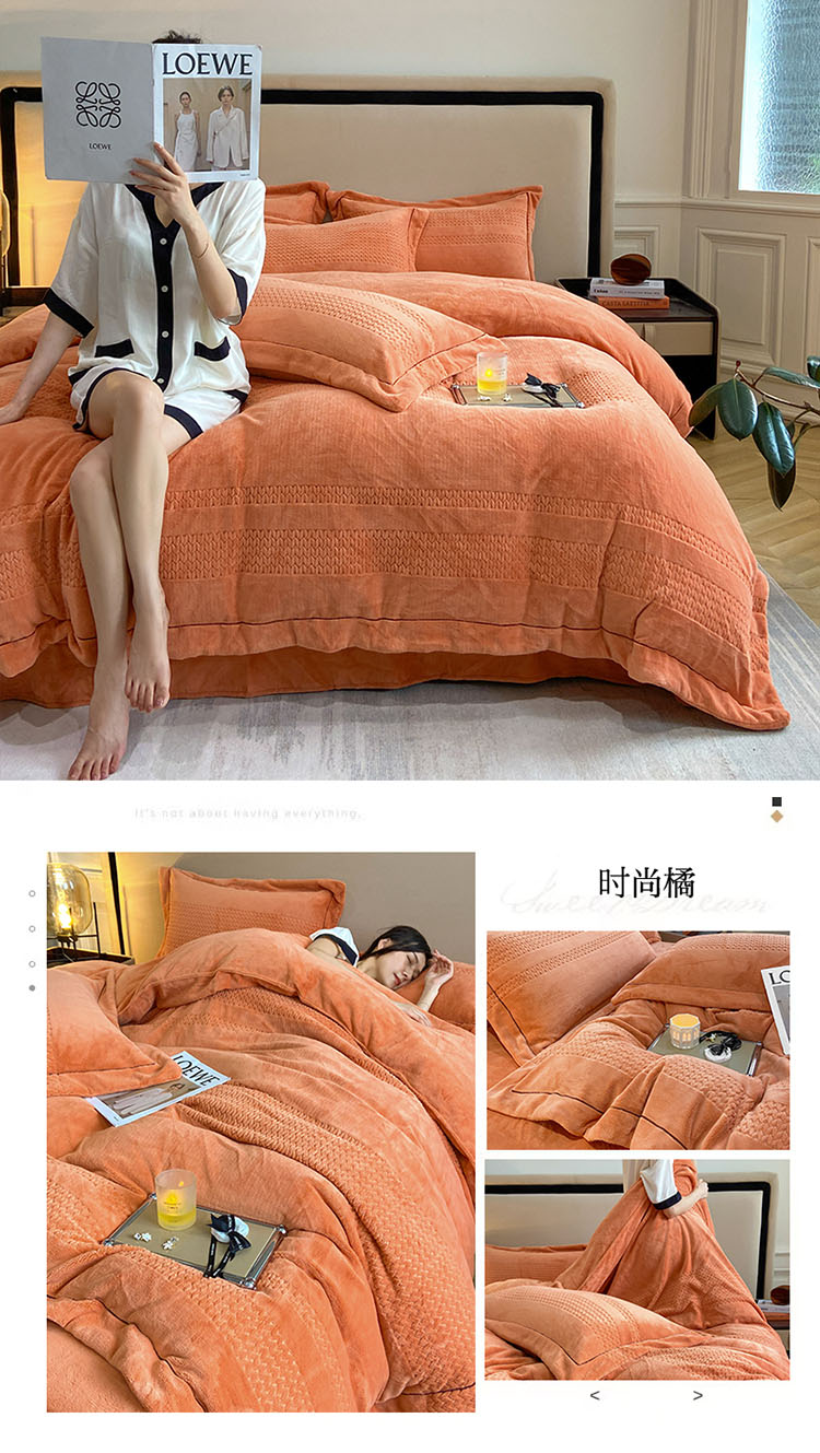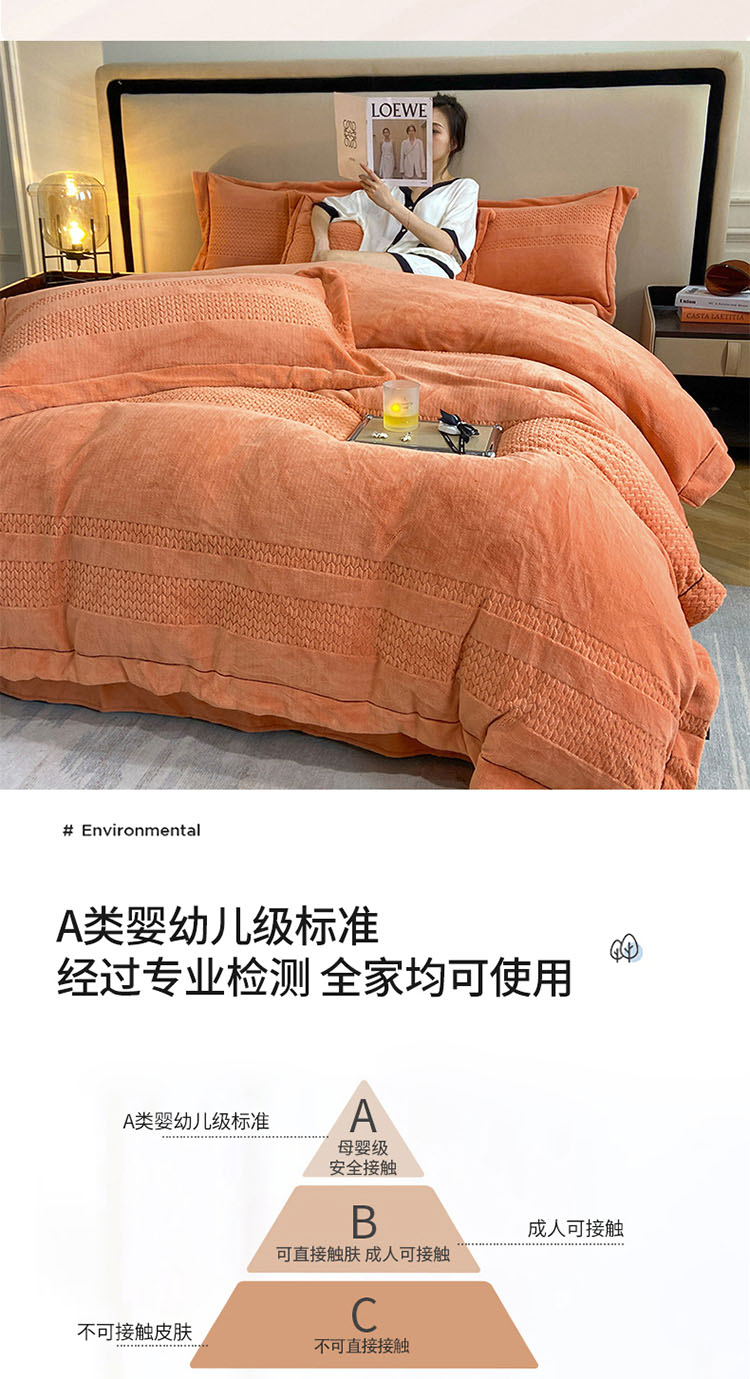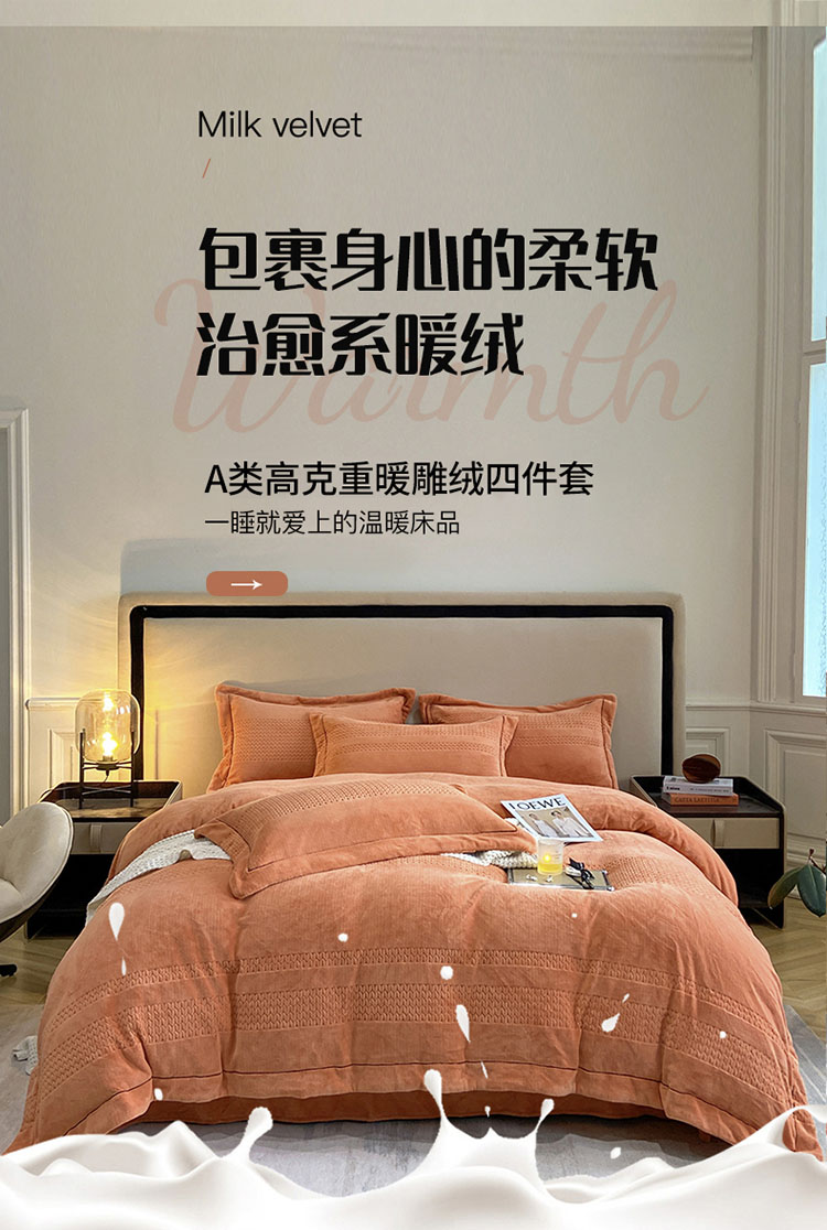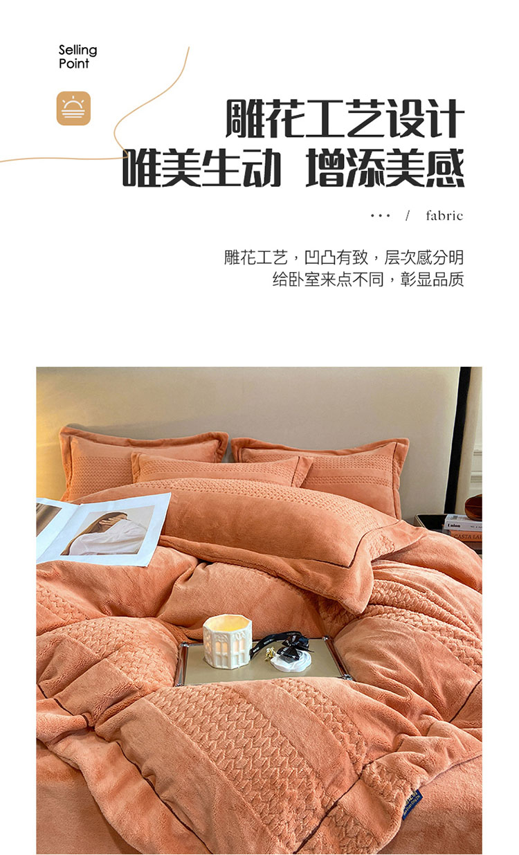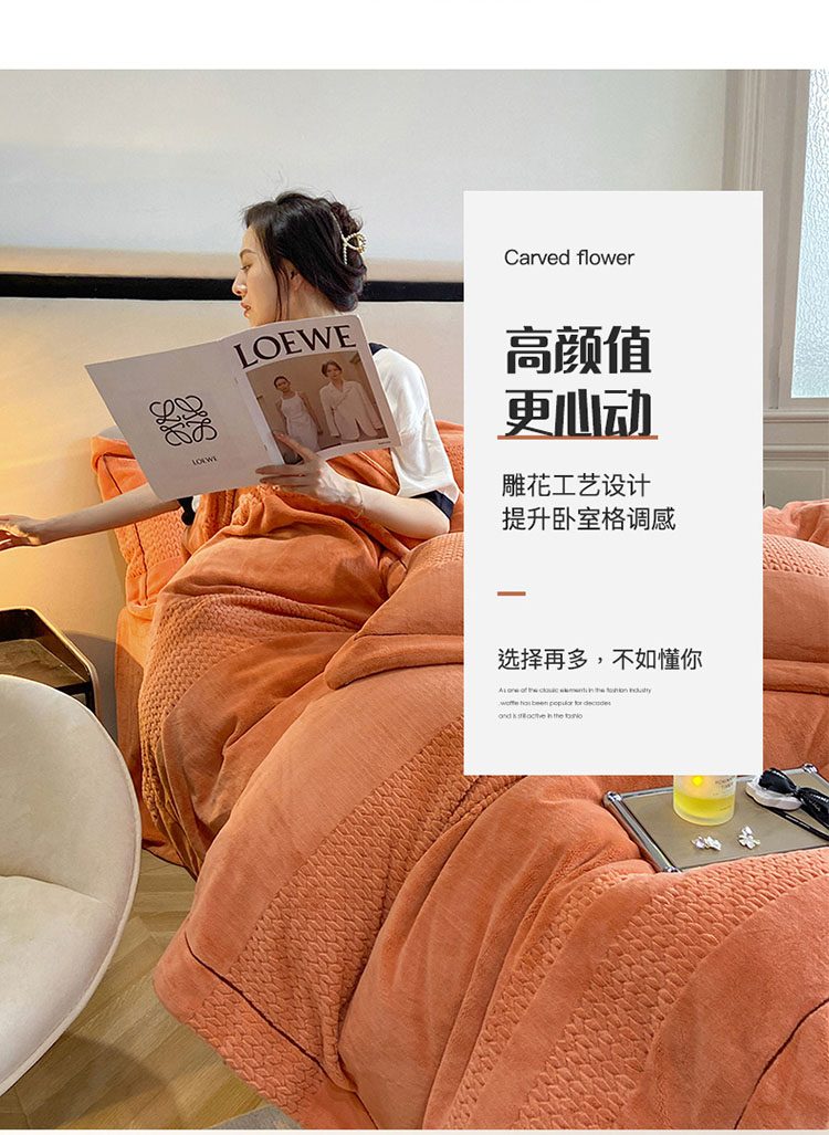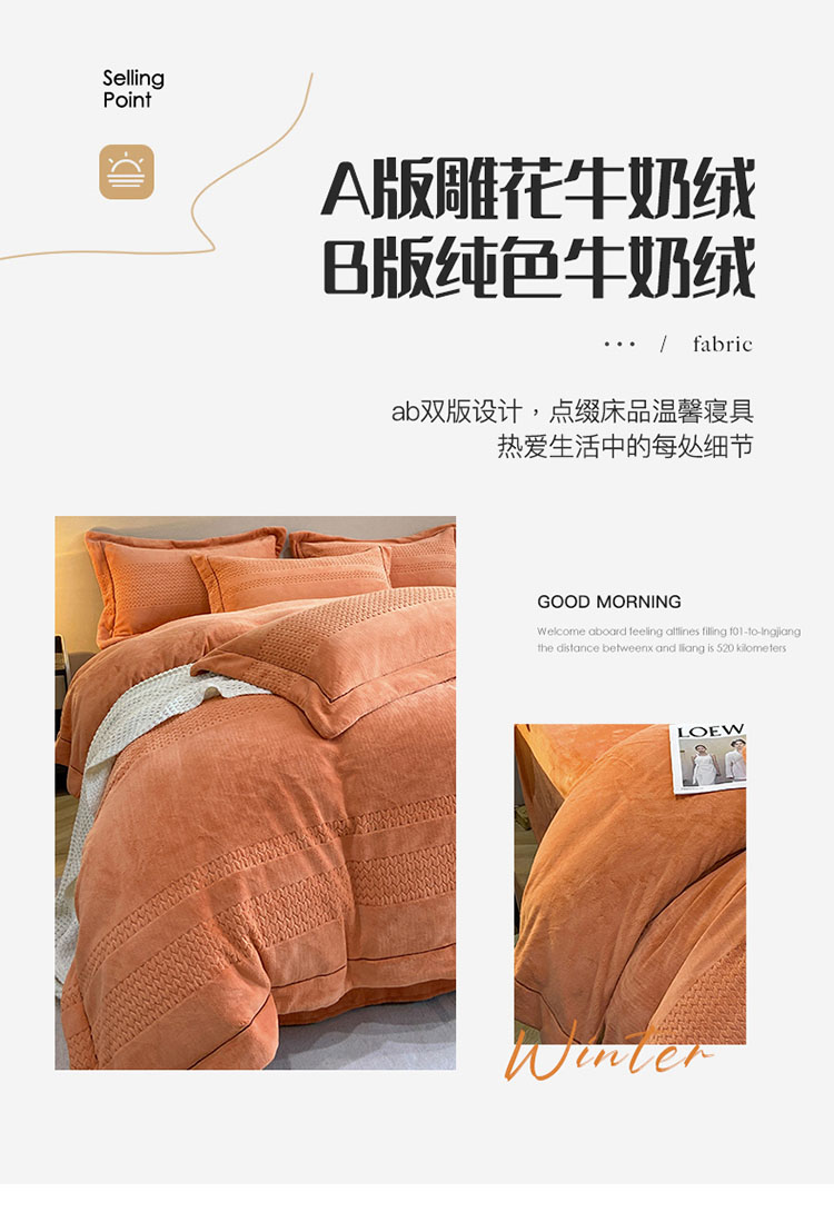 商品名称:嗯呢 2023新款A类高克重轻奢雕花牛奶绒四件套 大麦-桔色