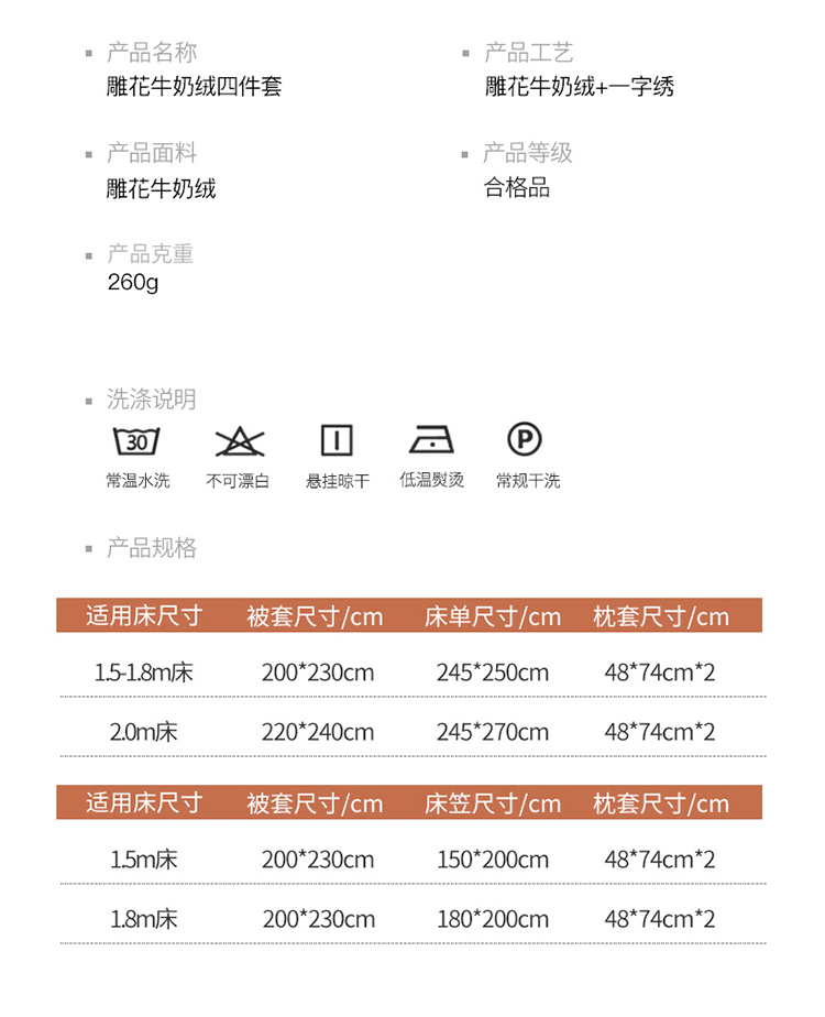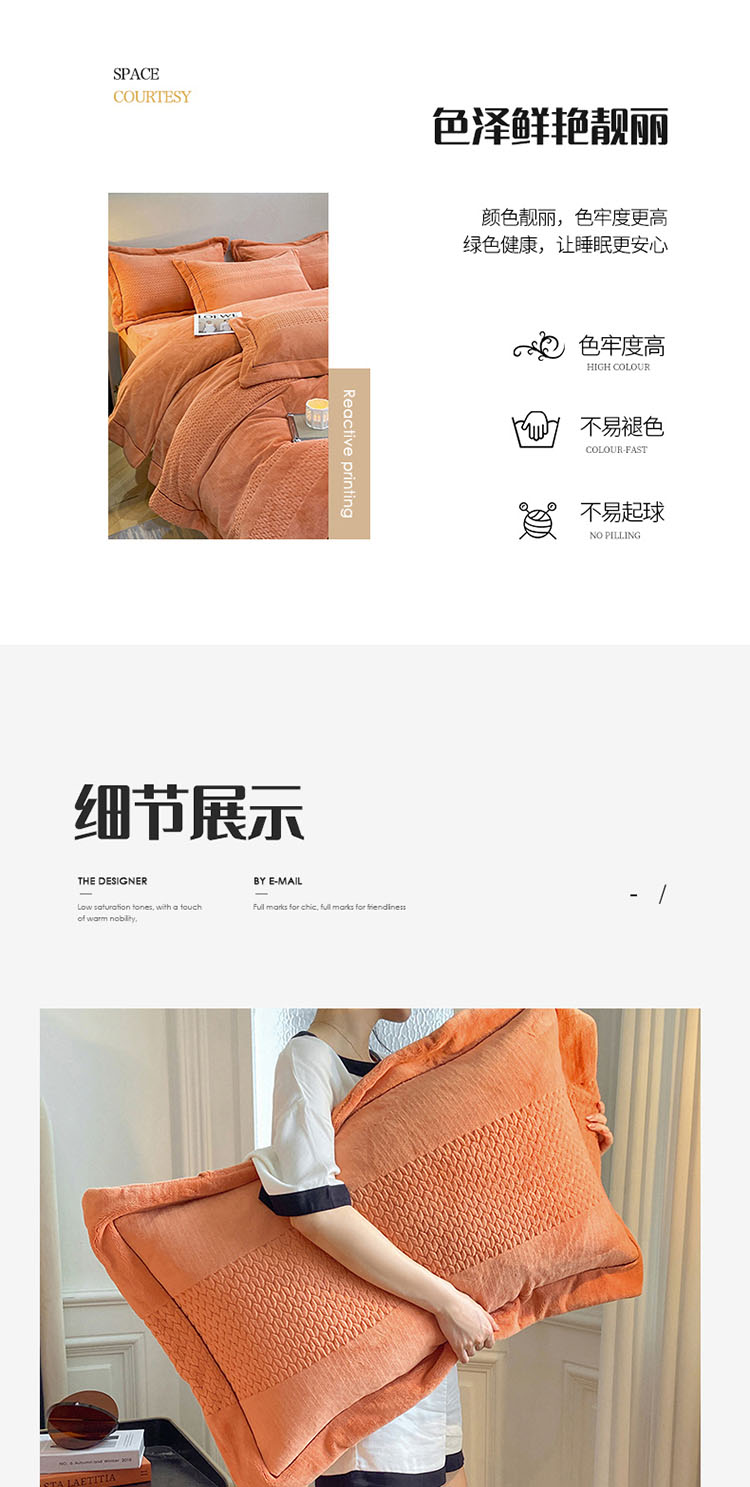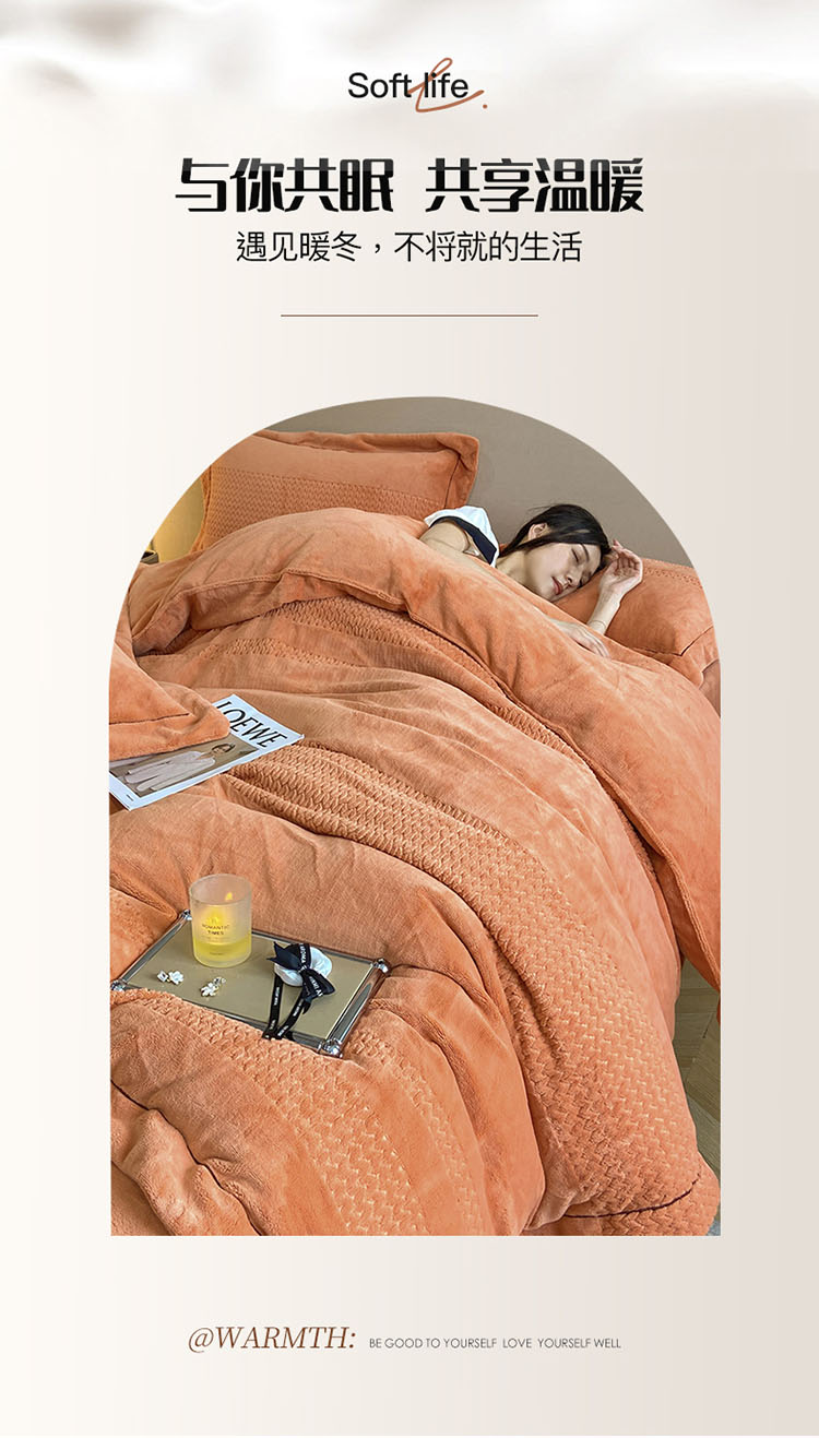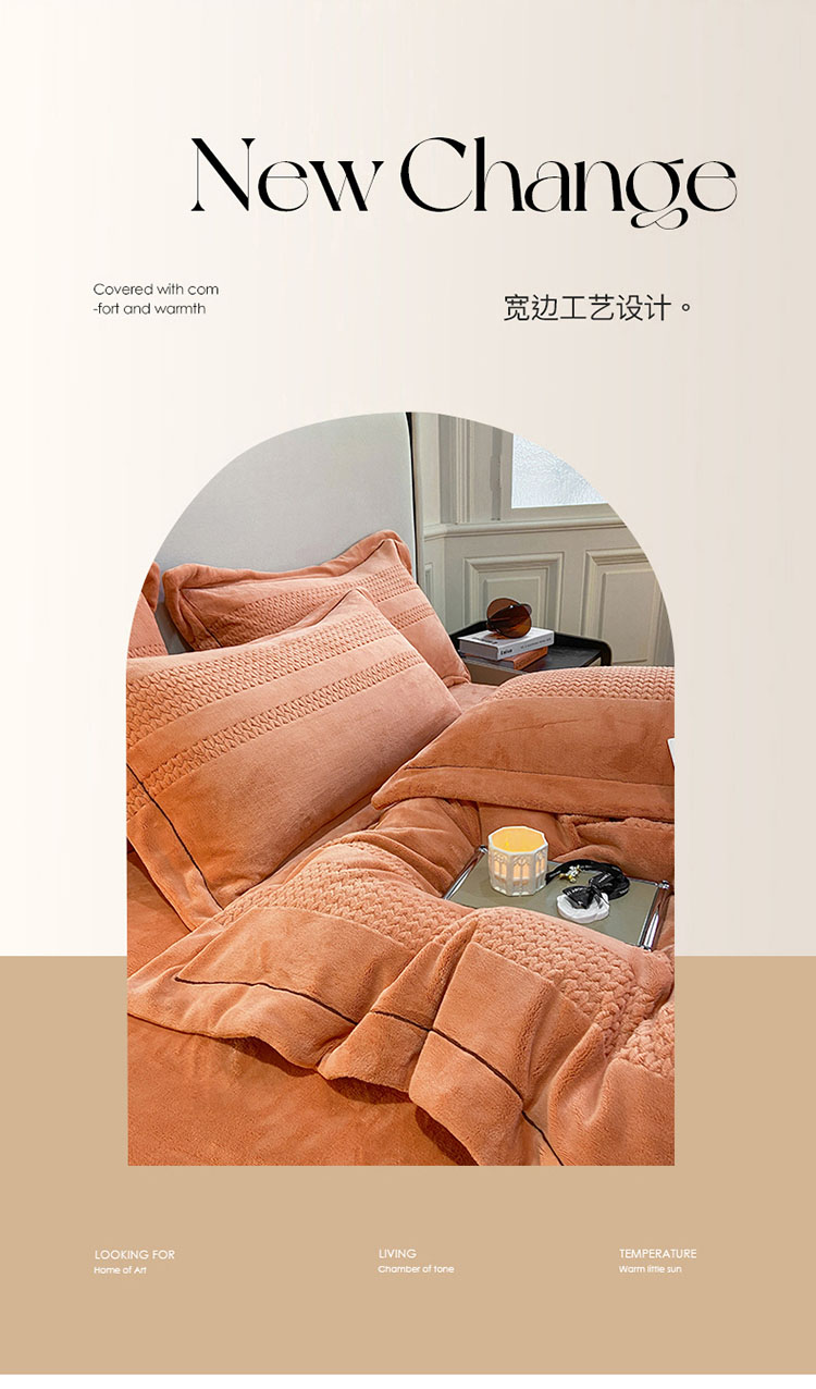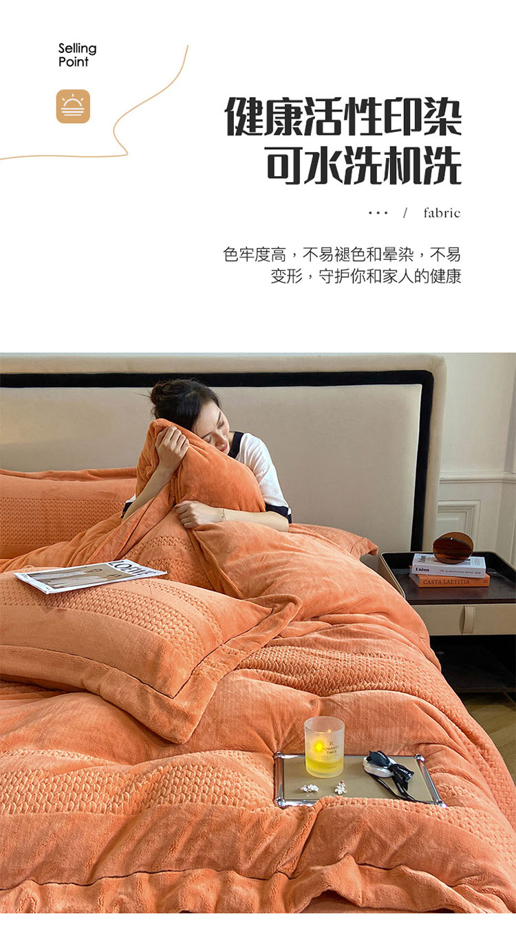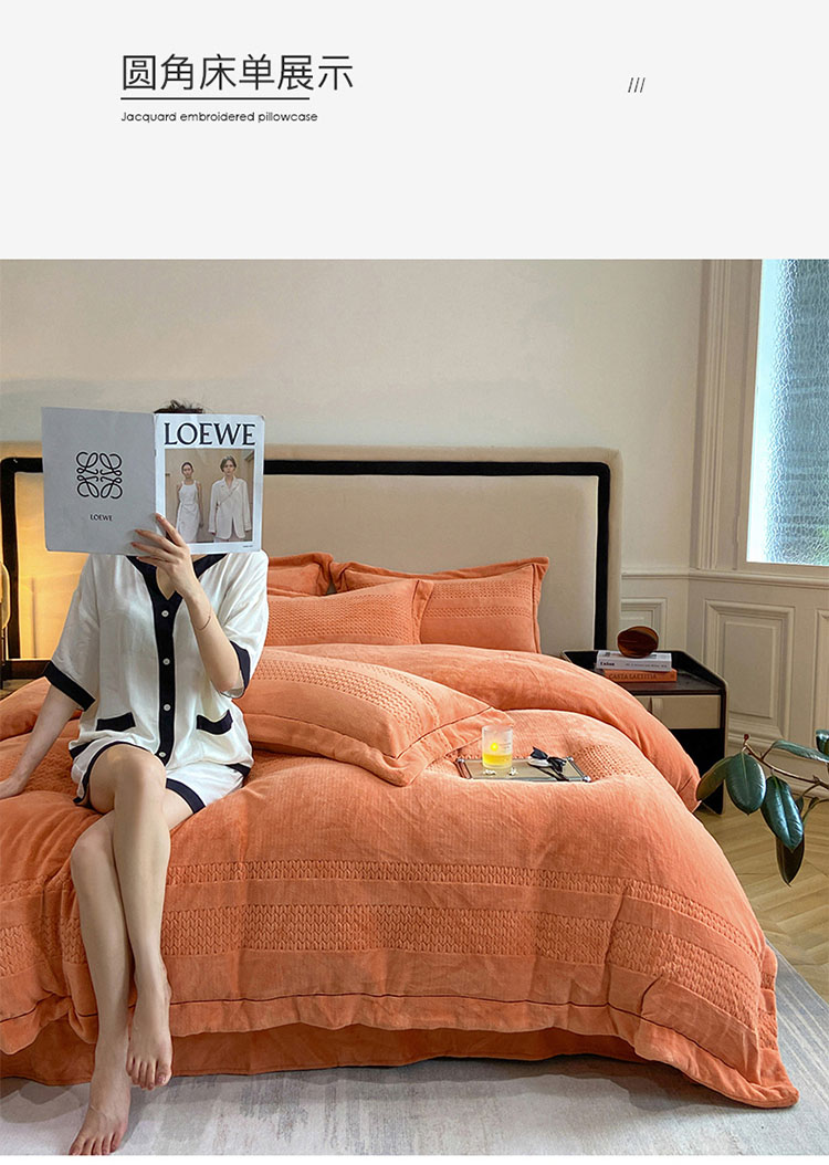 商品名称:嗯呢 2023新款A类高克重轻奢雕花牛奶绒四件套 大麦-桔色