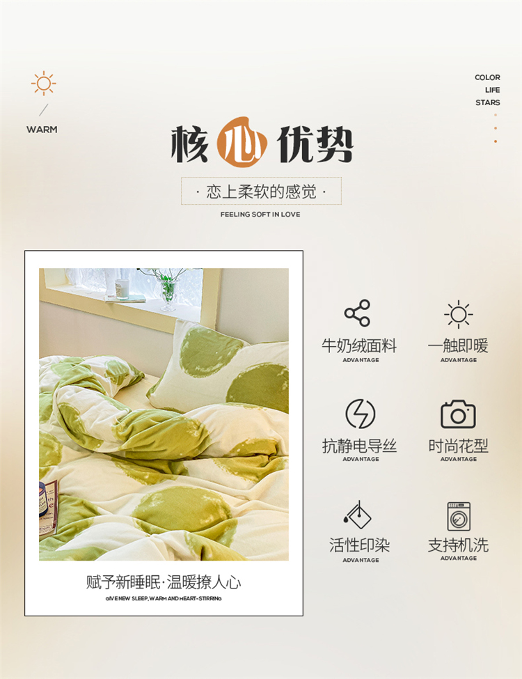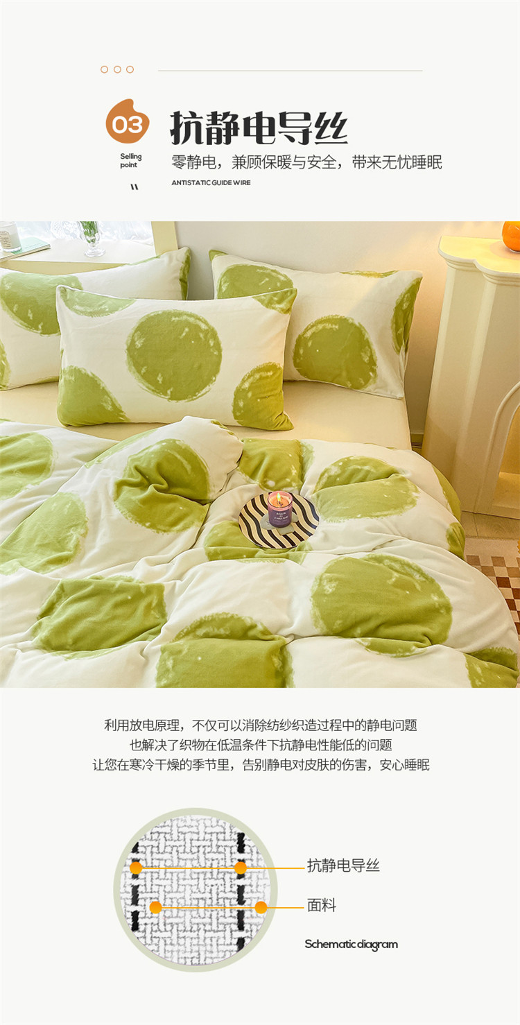 商品名称:桃子家居2022新款ins波浪泡泡加厚牛奶绒系列四件套 绿泡泡