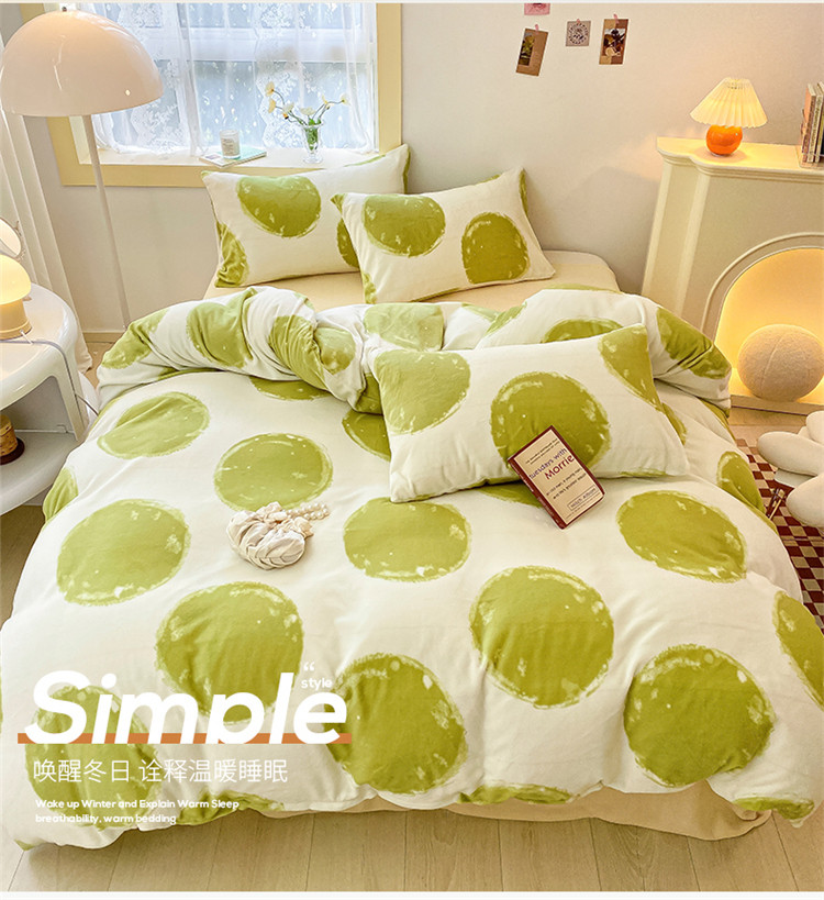 桃子家居2022新款ins波浪泡泡加厚牛奶绒系列四件套 绿泡泡