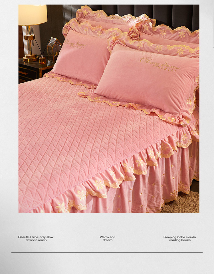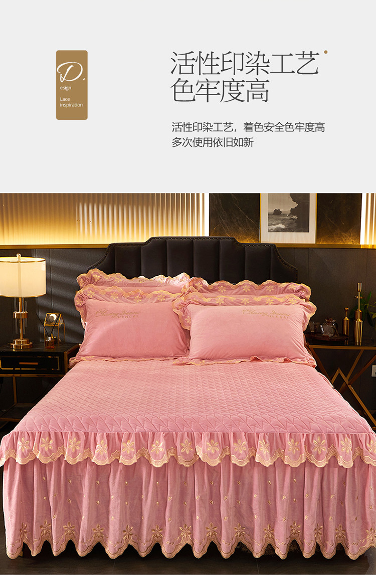 • 91家纺网 家纺一手货源 找家纺 恒爱 2022新款秋冬轻奢宝宝绒刺绣单床裙 香妃粉