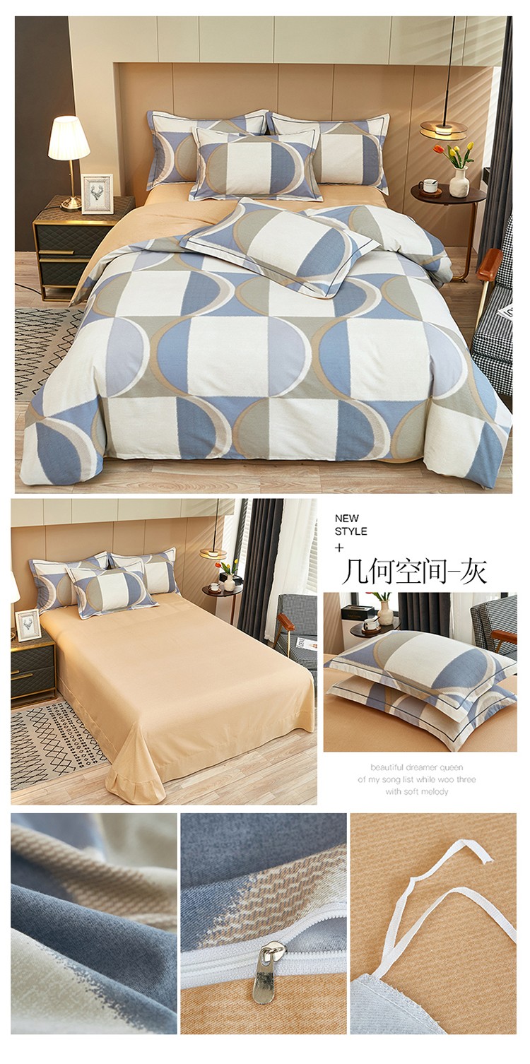 商品名称:雲归梦 2022年新款加厚全棉大版四件套第二批-格条卡通 几何空间-灰