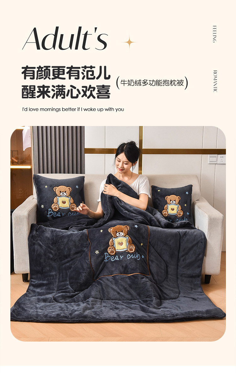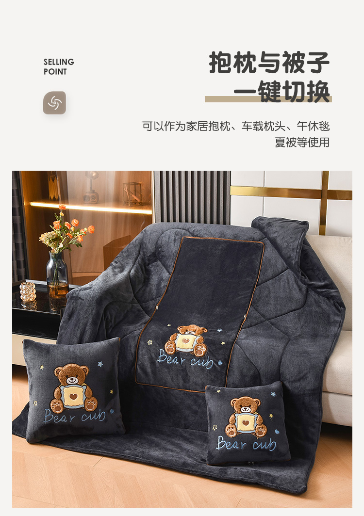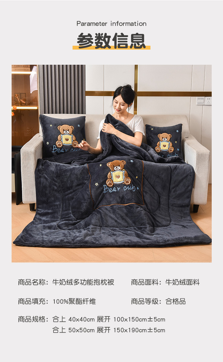商品名称:阳光依佰2022新款牛奶绒多功能抱枕被系列-艾尼熊 深灰