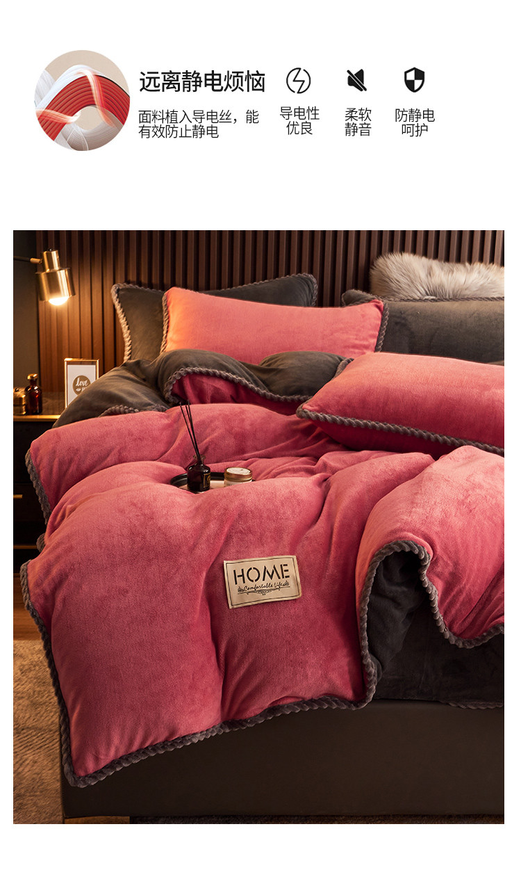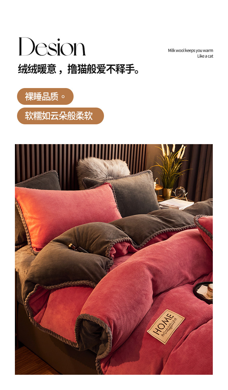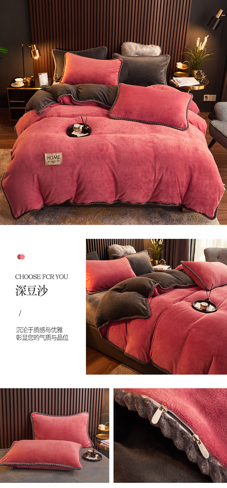 (总)闲鱼家纺 2025新款牛奶绒拆卸被可拆卸四件套 ,豆沙,粉色,湖蓝,酒红,橘色,咖啡,墨绿,浅灰,深灰