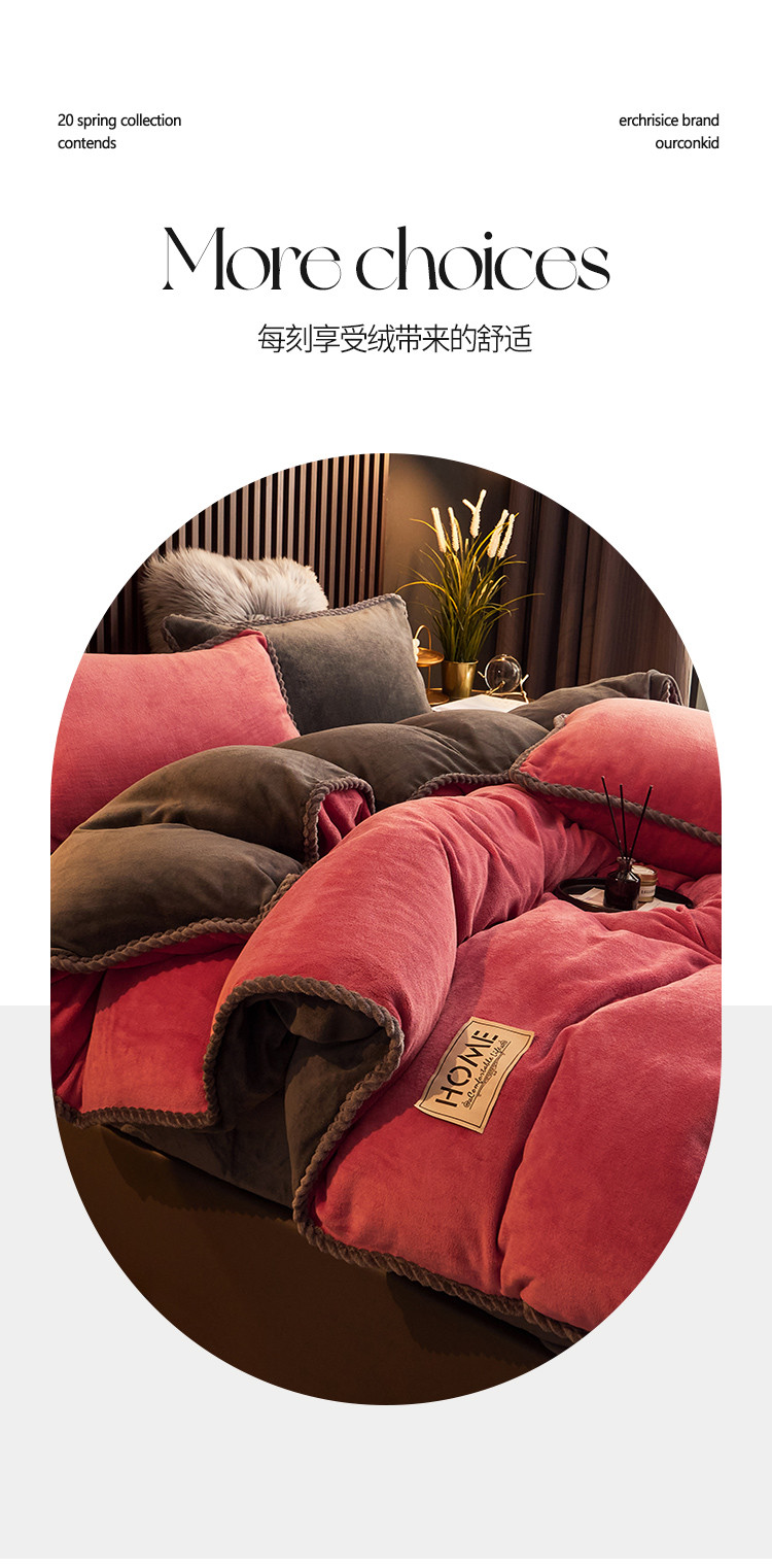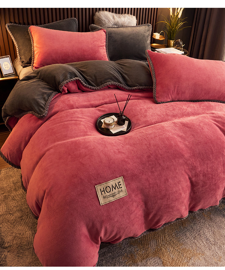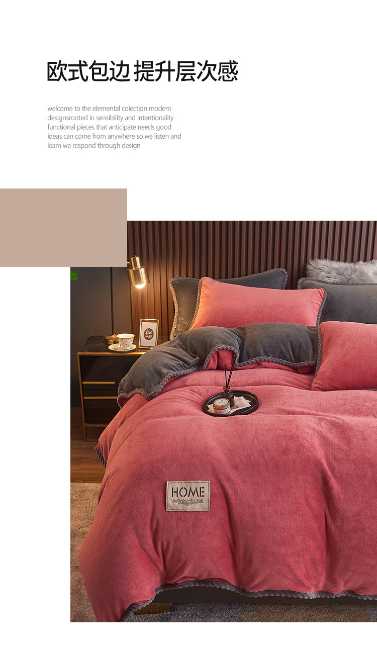 (总)闲鱼家纺 2025款高克重欧式包边牛奶绒四件套,爱玛橙,高级灰,湖光蓝,墨绿,浅咖啡,深豆沙,深灰,深酒红,樱花粉