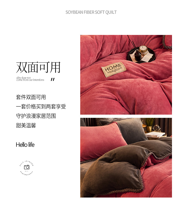 商品名称:闲鱼家纺 2025款高克重欧式包边牛奶绒单被套-深豆沙