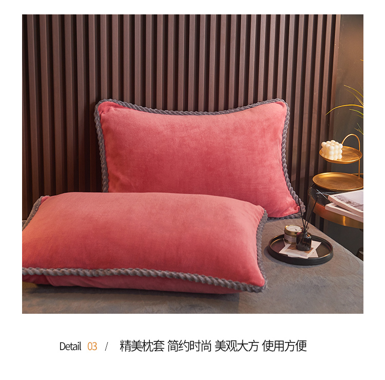 (总)闲鱼家纺 2025新款高克重牛奶绒四件套水晶绒金貂法莱绒臻绒欧式包边系列(新拍图)-单枕套,橘色,咖啡,墨绿,浅灰,深灰,湖蓝,粉色,豆沙,酒红