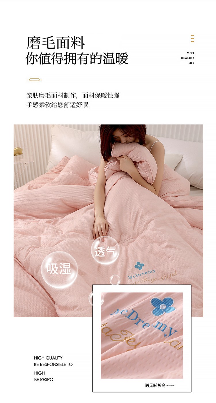• 91家纺网 家纺一手货源 找家纺 伊被源 2022新款抗菌立体冬被春秋被被芯被子-华夫泡 粉色