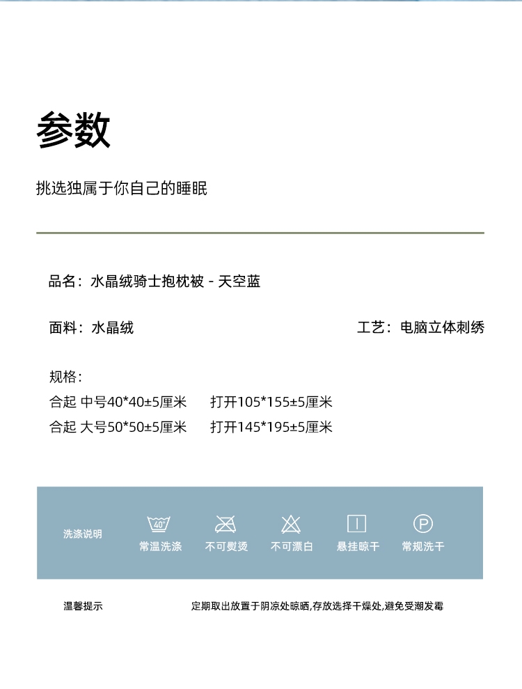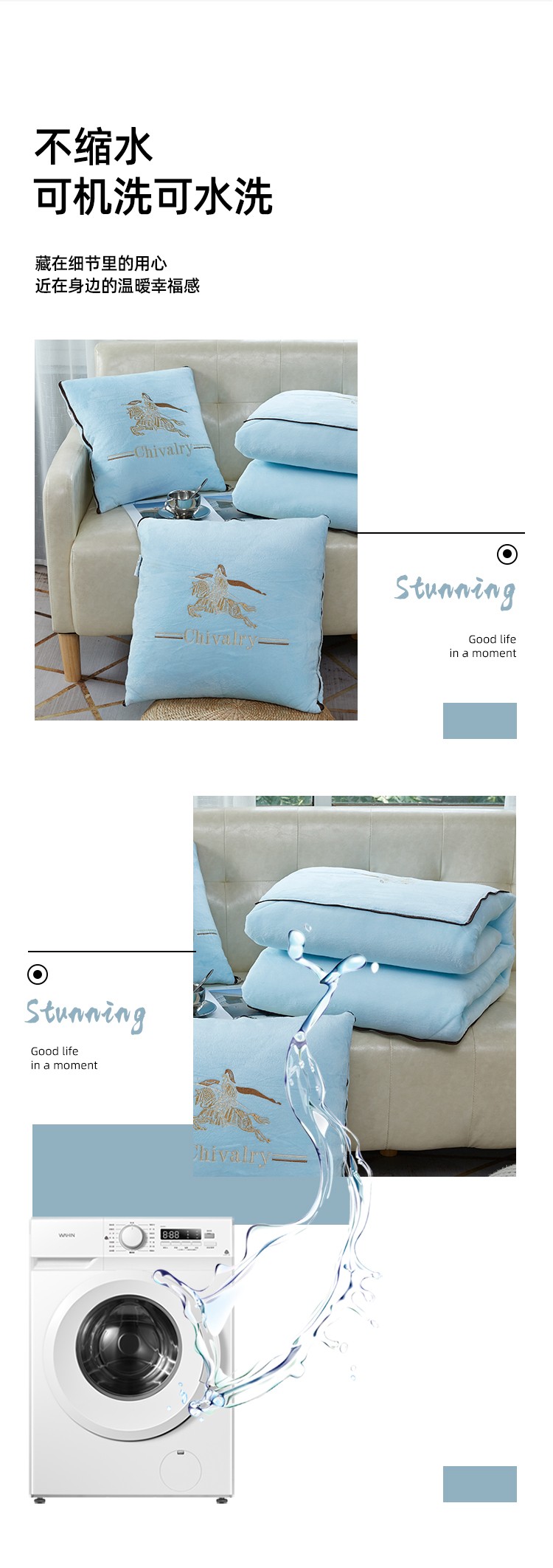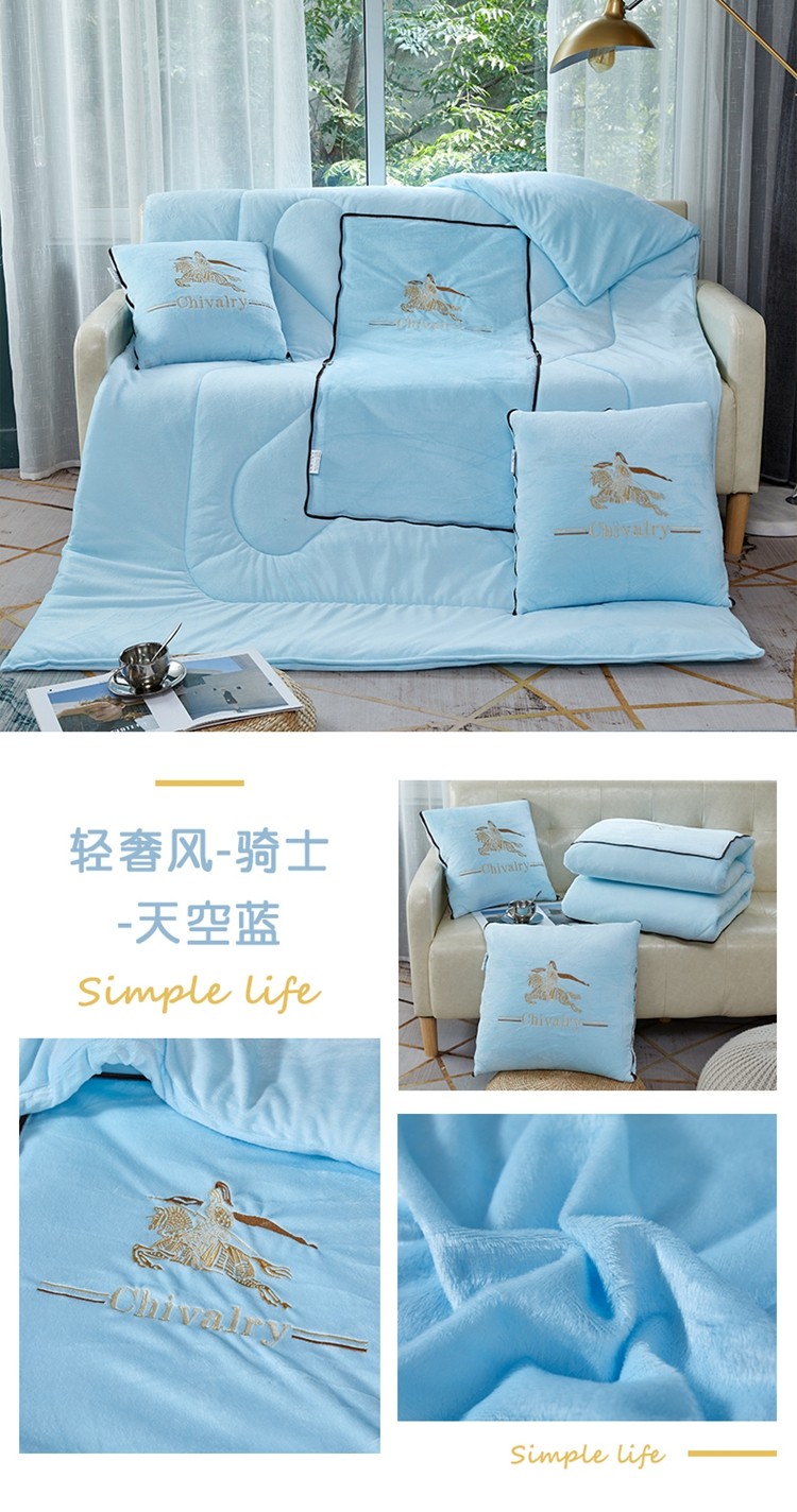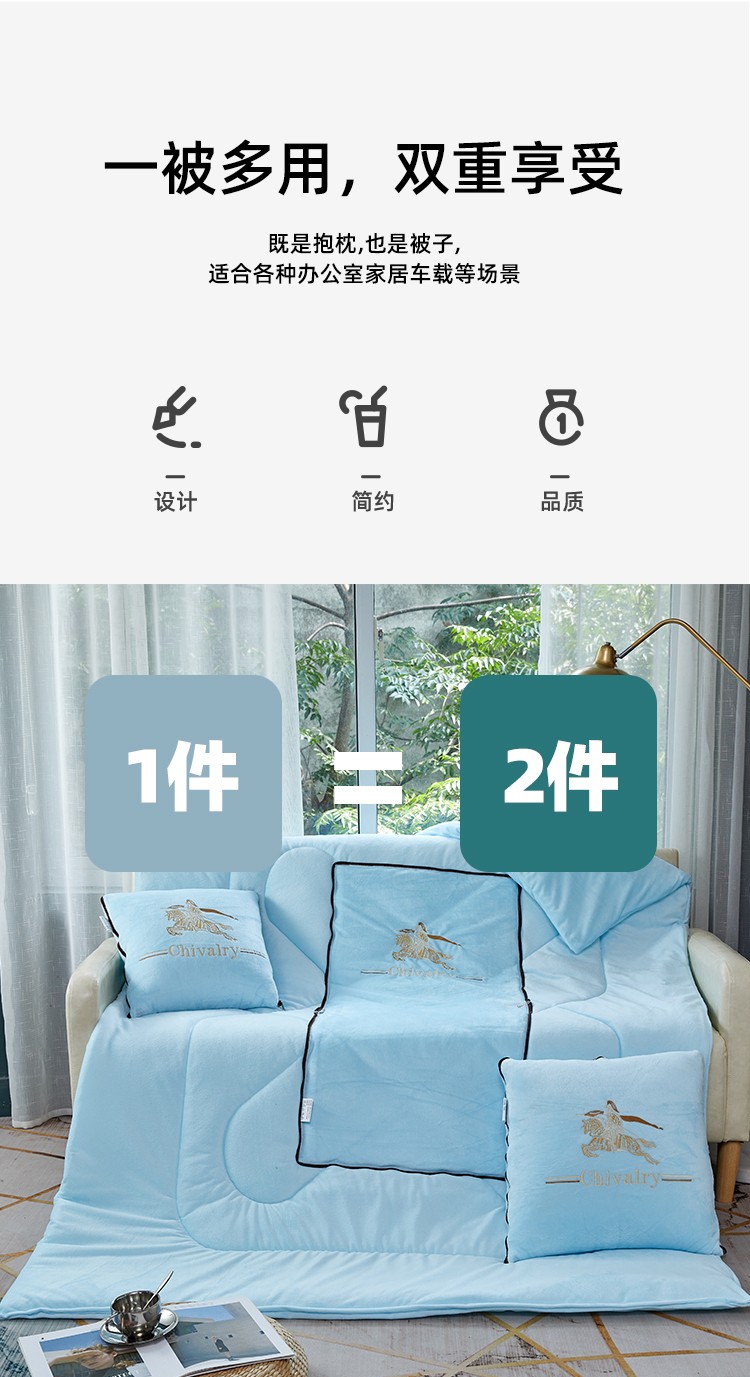 商品名称:翰轩家居 2022新款水晶绒绣花抱枕被系列-骑士 骑士-天空蓝