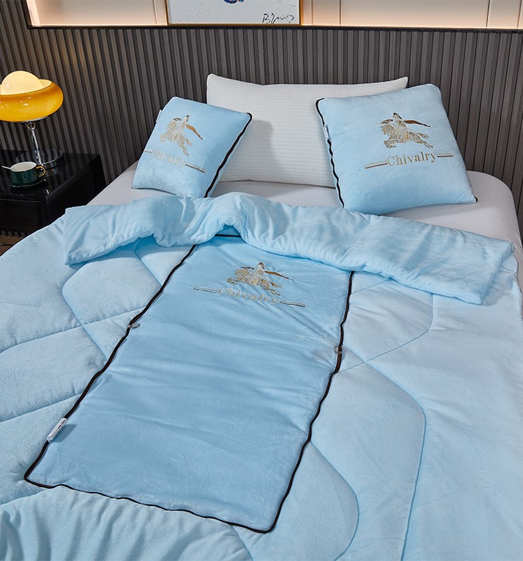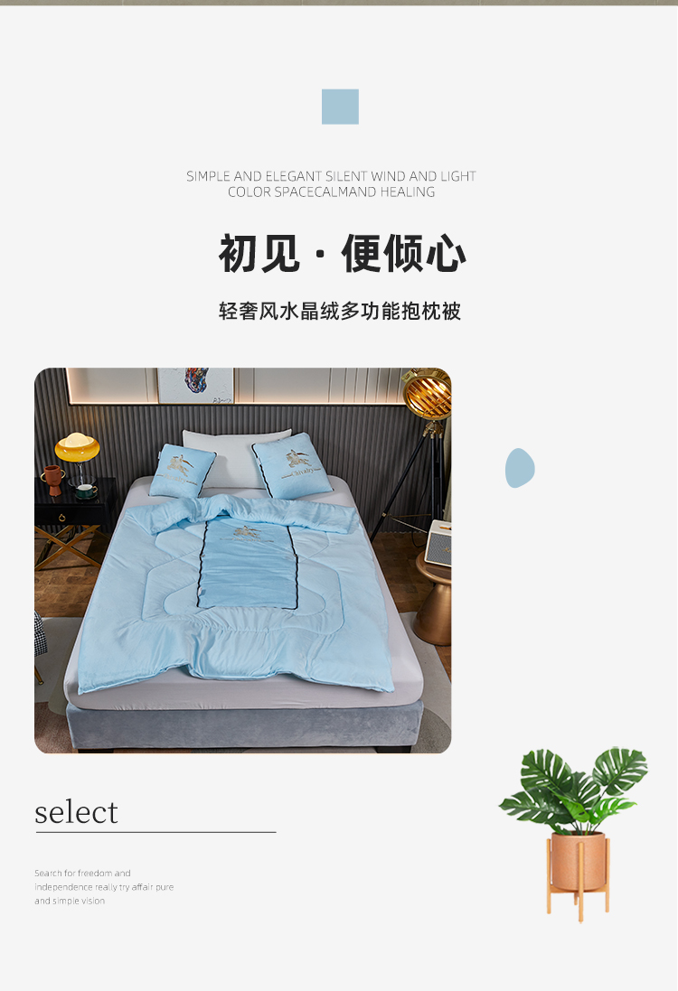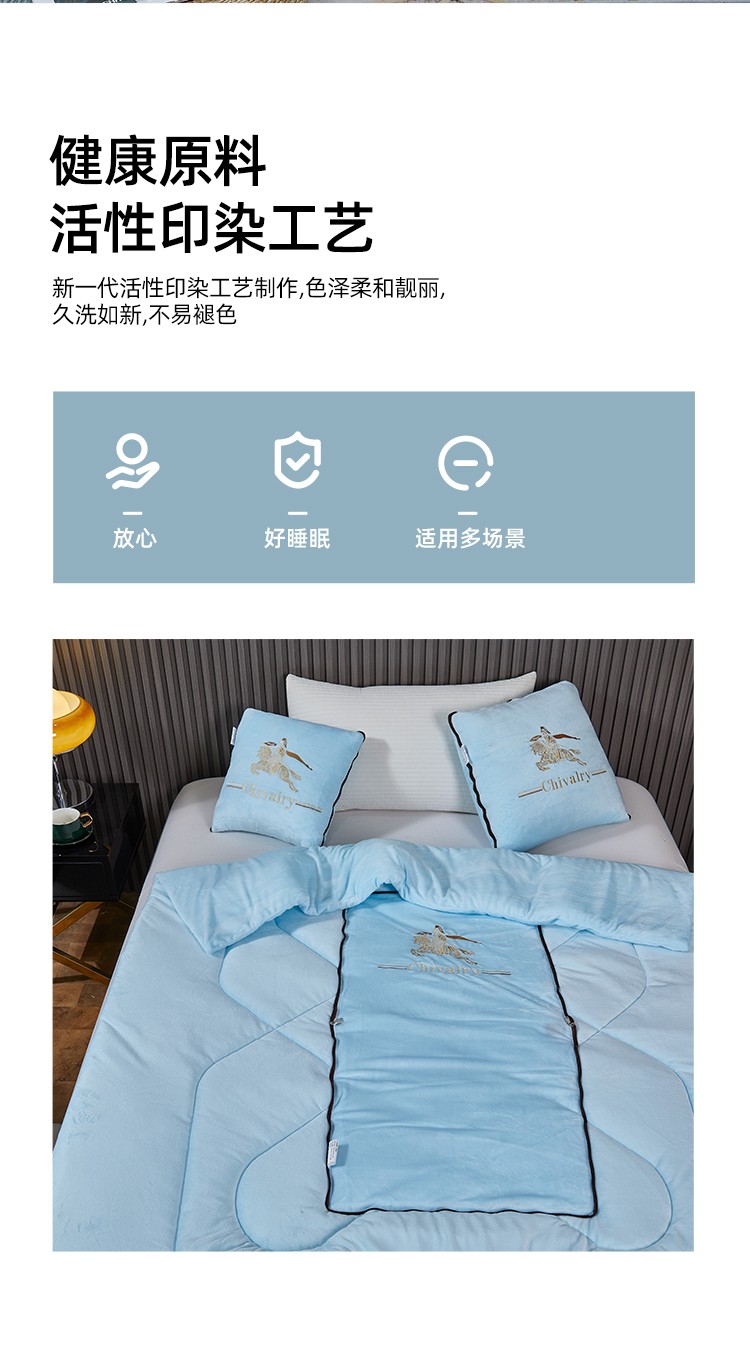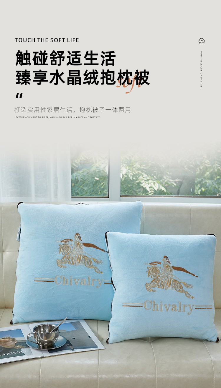 商品名称:翰轩家居 2022新款水晶绒绣花抱枕被系列-骑士 骑士-天空蓝
