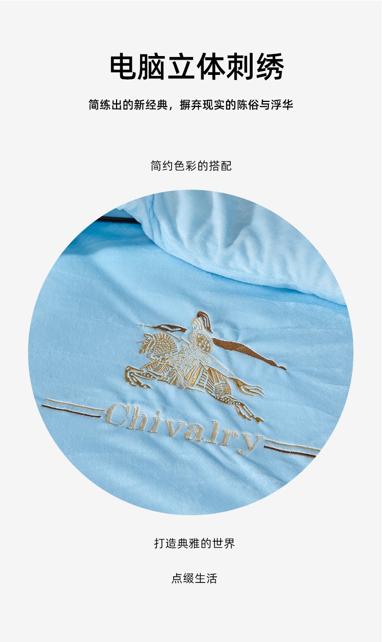 翰轩家居 2022新款水晶绒绣花抱枕被系列-骑士 骑士-天空蓝