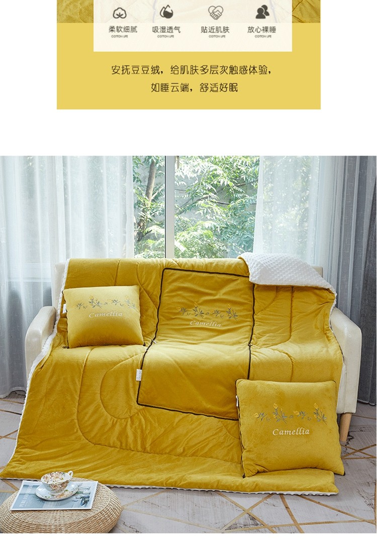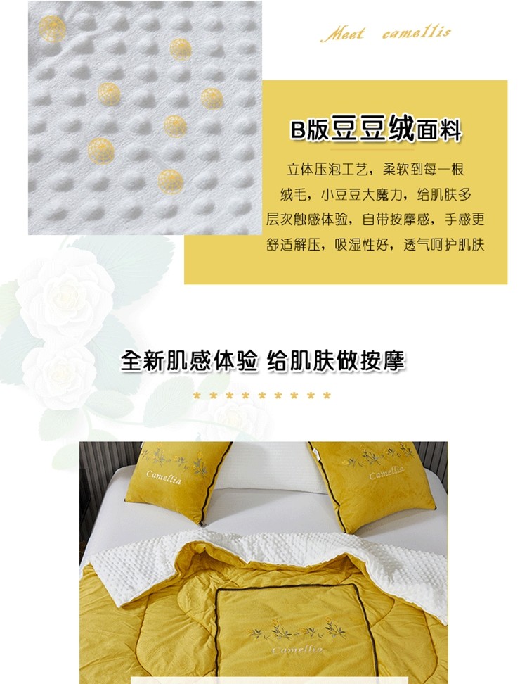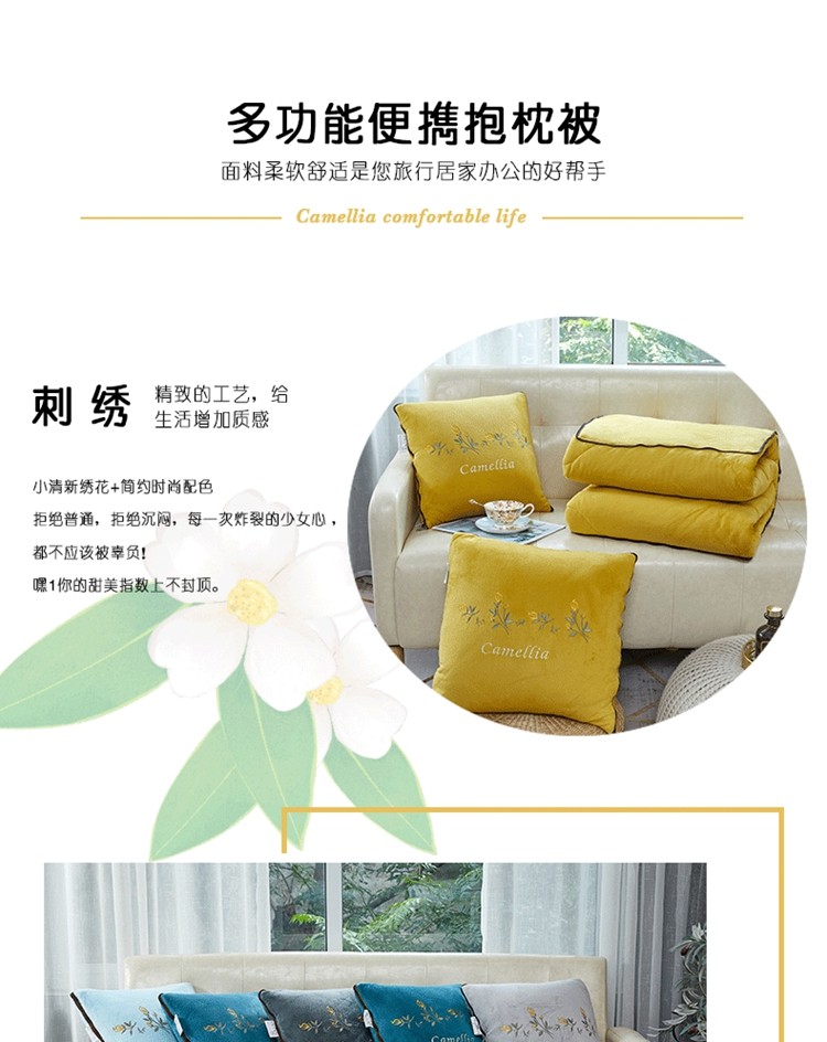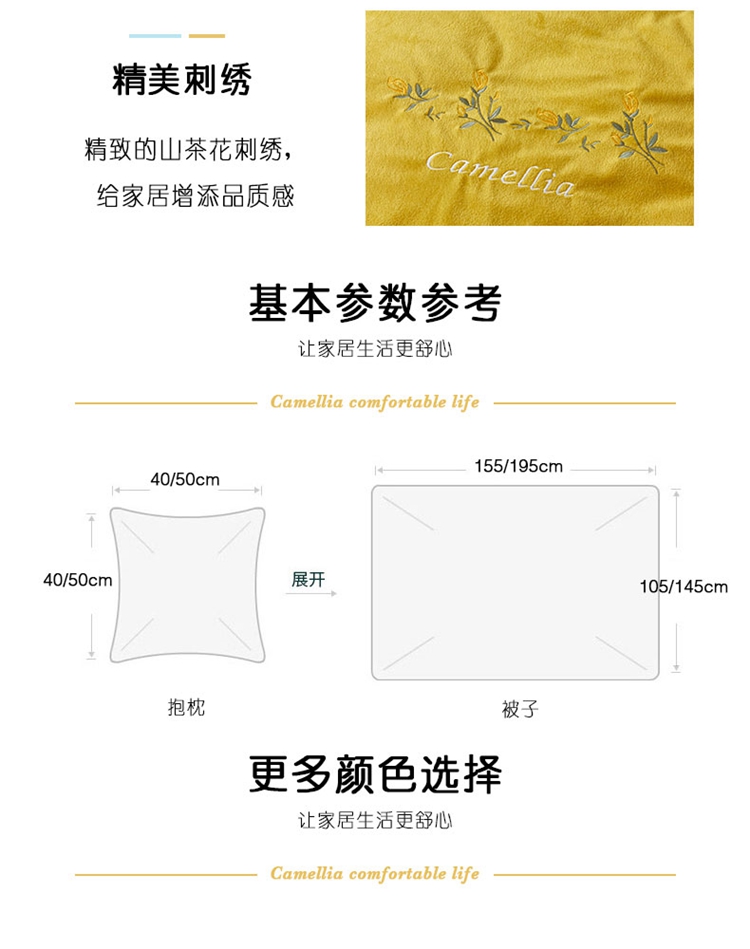 商品名称:翰轩家居 2022新款水晶绒绣花抱枕被系列-山茶花开 姜黄