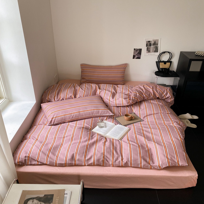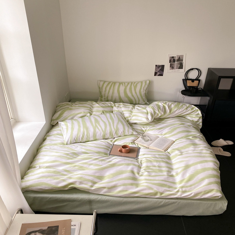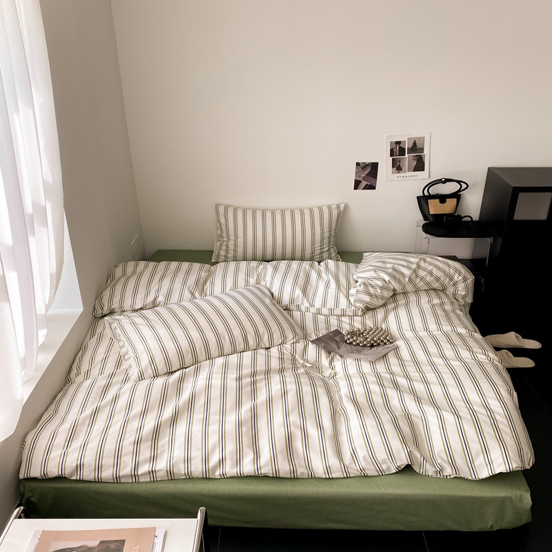 (总)昔可 2023新款全棉ins格子混搭系列四件套,ins简约绿格,粉蓝格,开心果格,学院格纹,粉绿格,海盐兰格,黄绿格,夏日蓝条,芝士黄条,紫芋泥芝士格