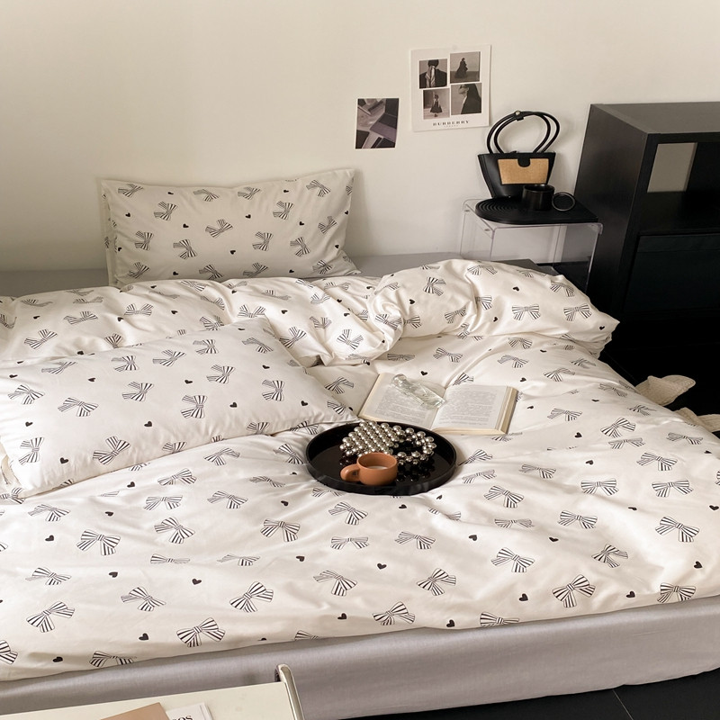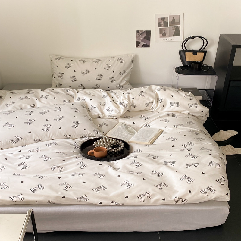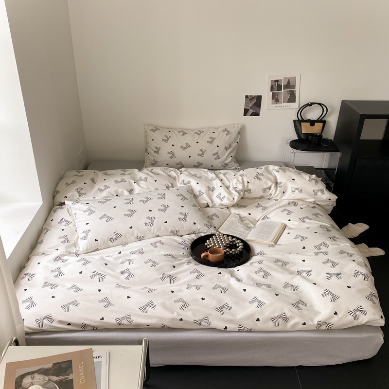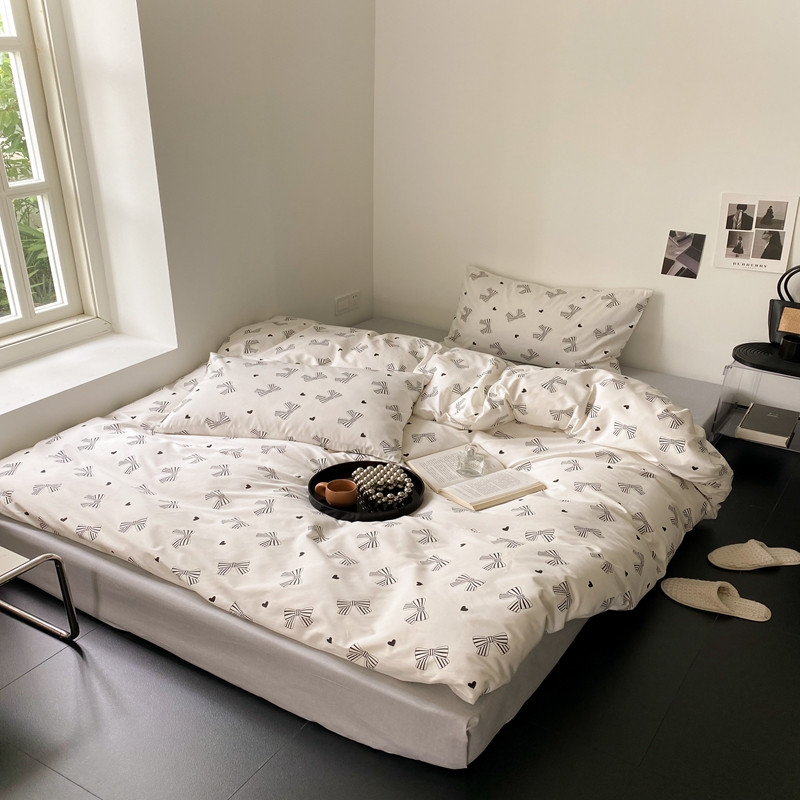 商品名称:昔可 2022新款全棉四件套影棚图1 黑白爱心蝴蝶结