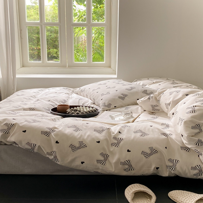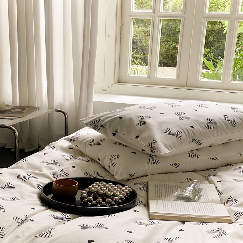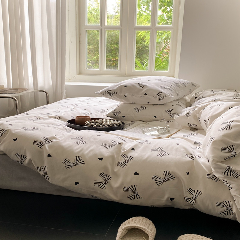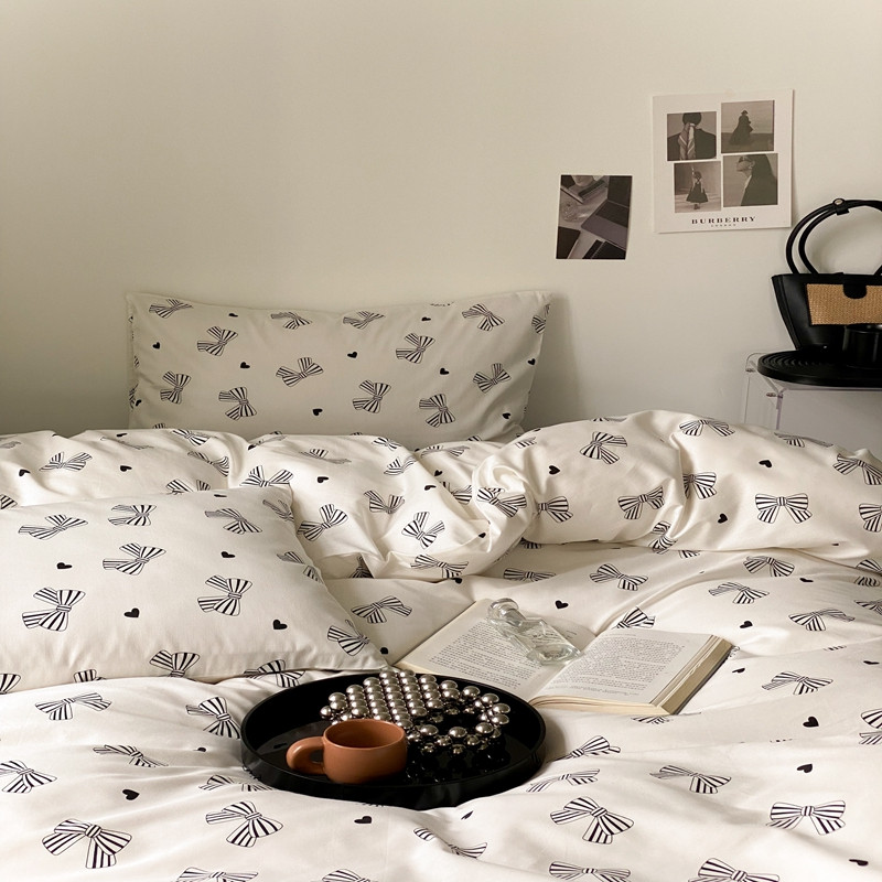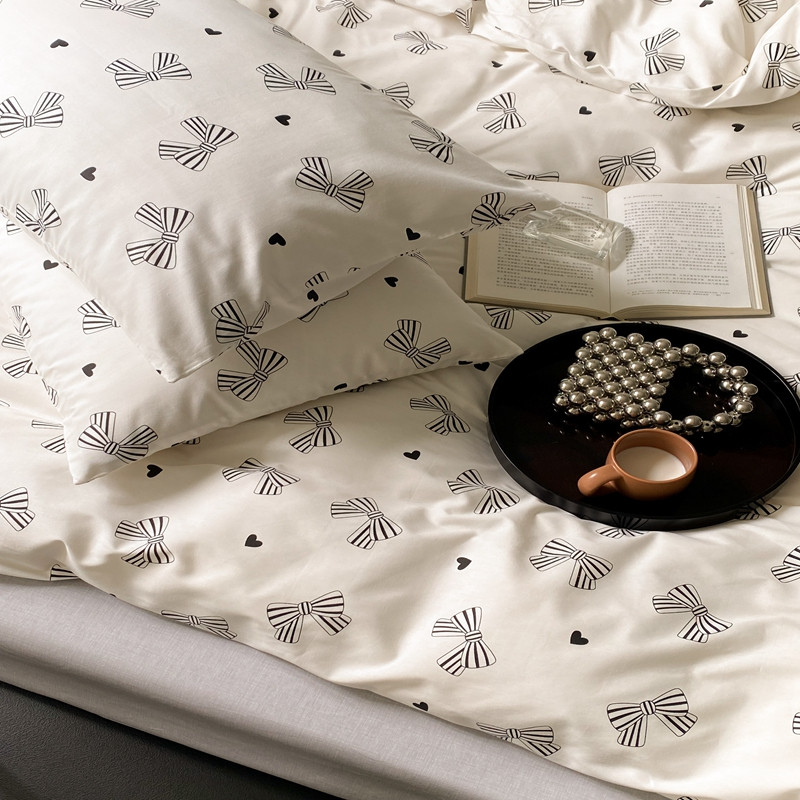 昔可 2022新款全棉四件套影棚图1 黑白爱心蝴蝶结