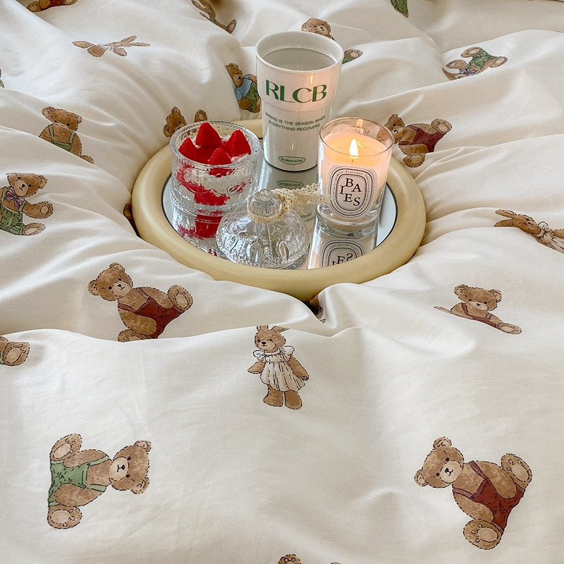 (总)昔可家纺 2024新款印花牛奶绒四件套系列-洛丽塔风,萝莉小兔,小熊烘焙屋,小熊玩偶屋