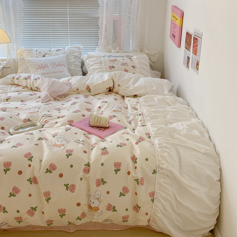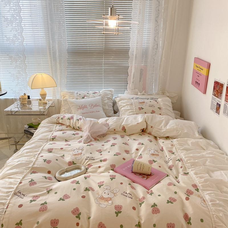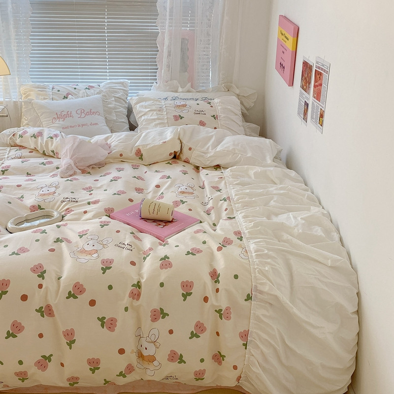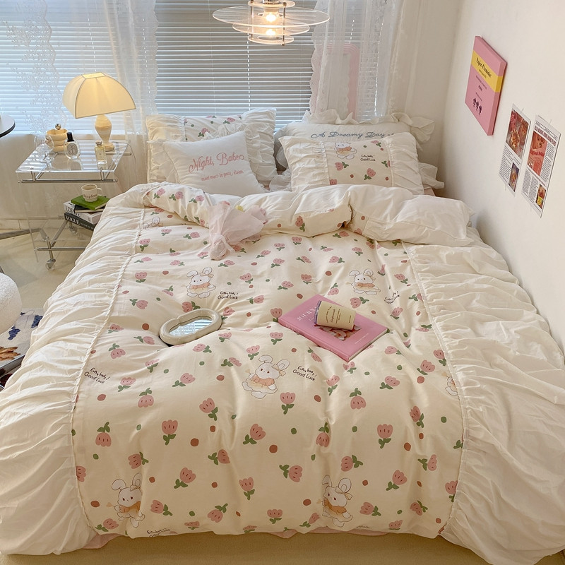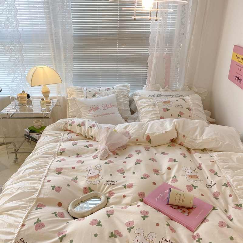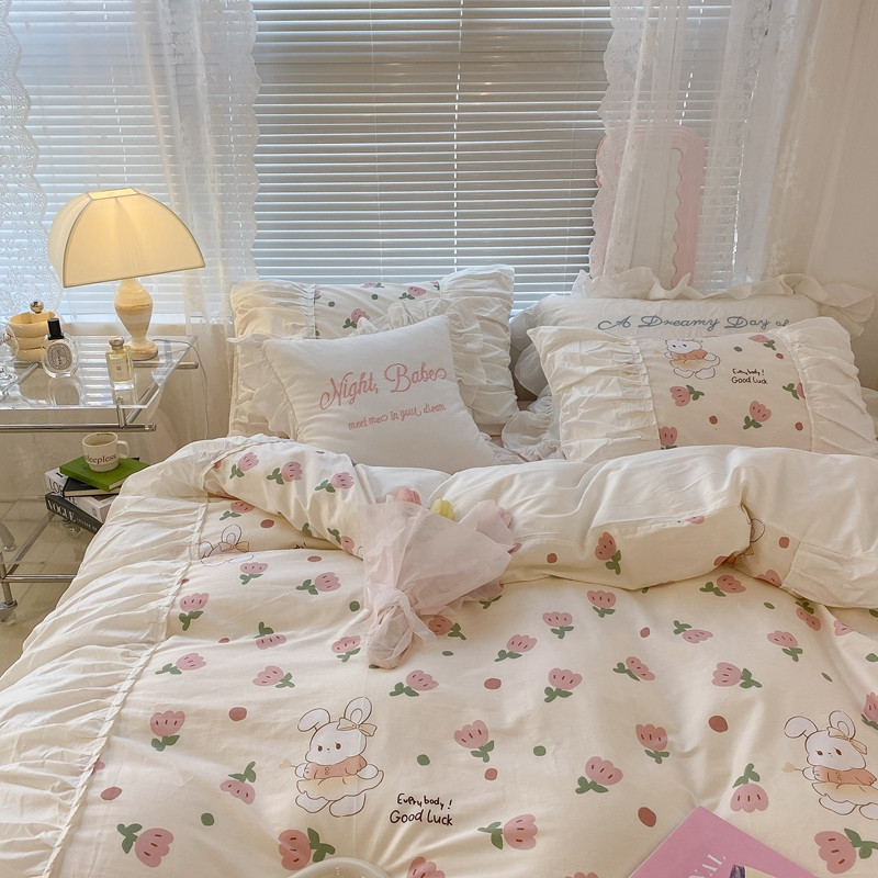 昔可 2022新款韩版花边系列四件套 粉郁金兔