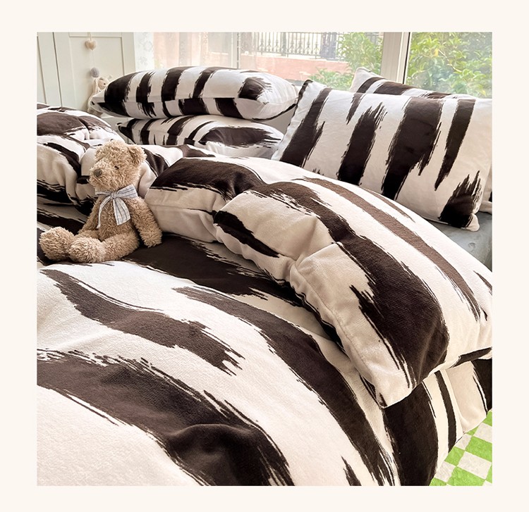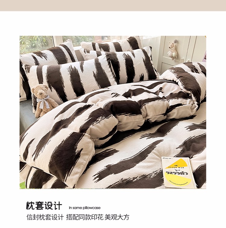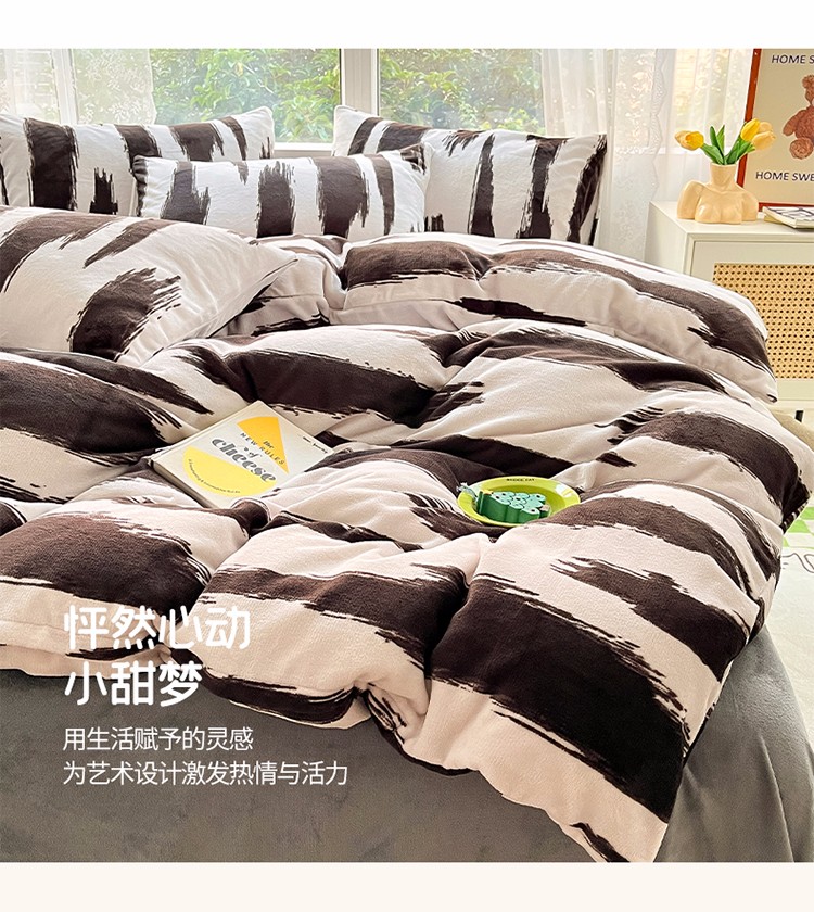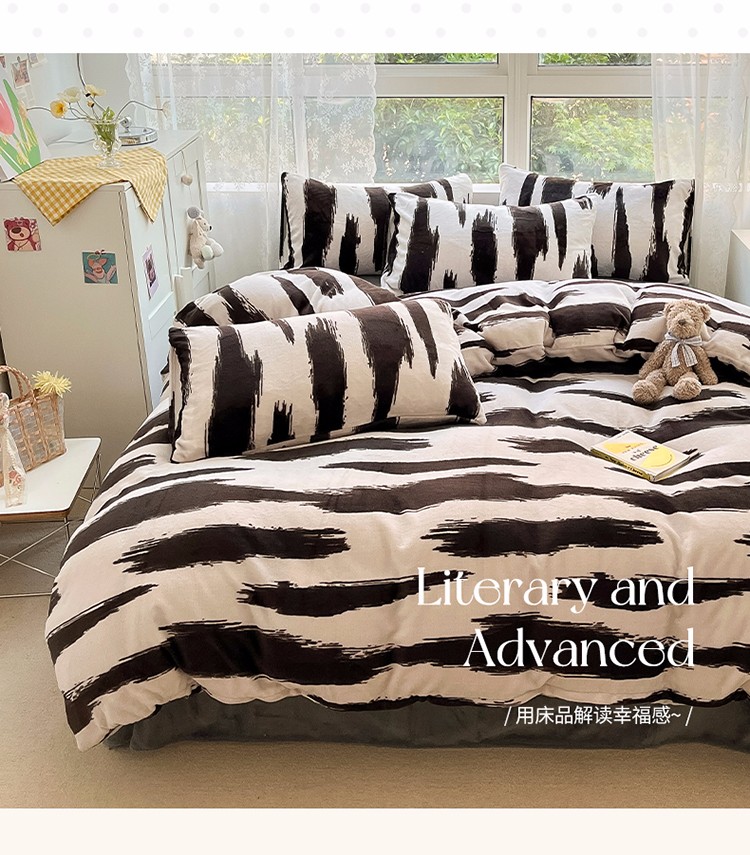 雅居纺 2022新款牛奶绒印花四件套 炫彩黑
