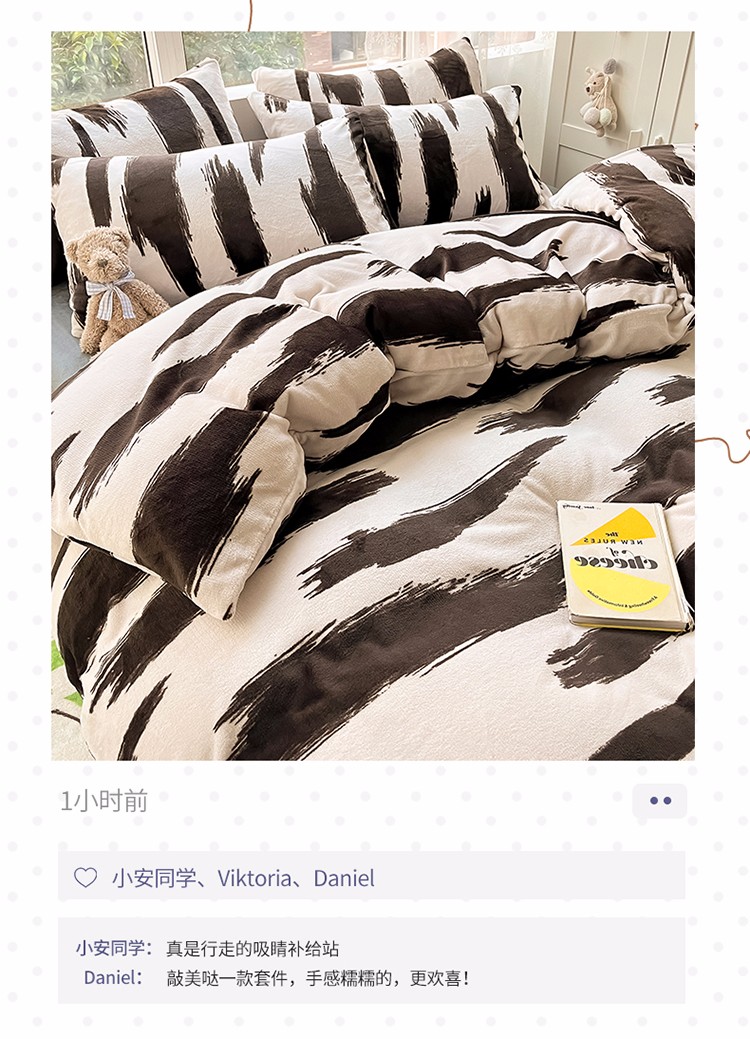 (总)雅居纺家纺 2025新款简约兔绒球球保暖舒适四件套-波点,波点-白咖,波点-粉黄,波点-咖,波点-蓝黄