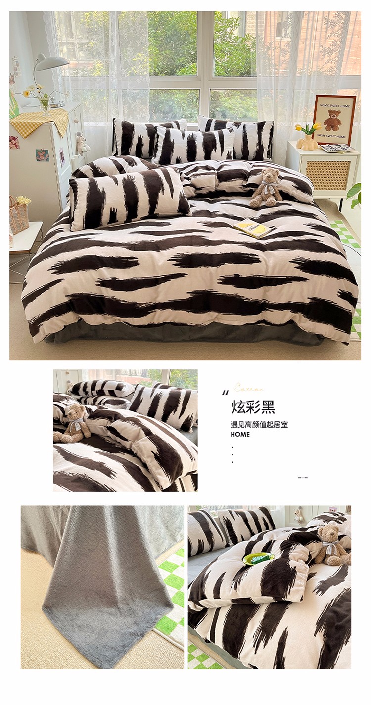 商品名称:雅居纺 2022新款牛奶绒印花四件套 炫彩黑