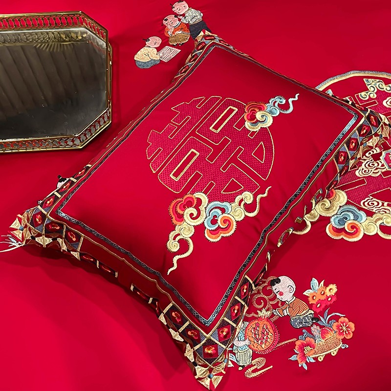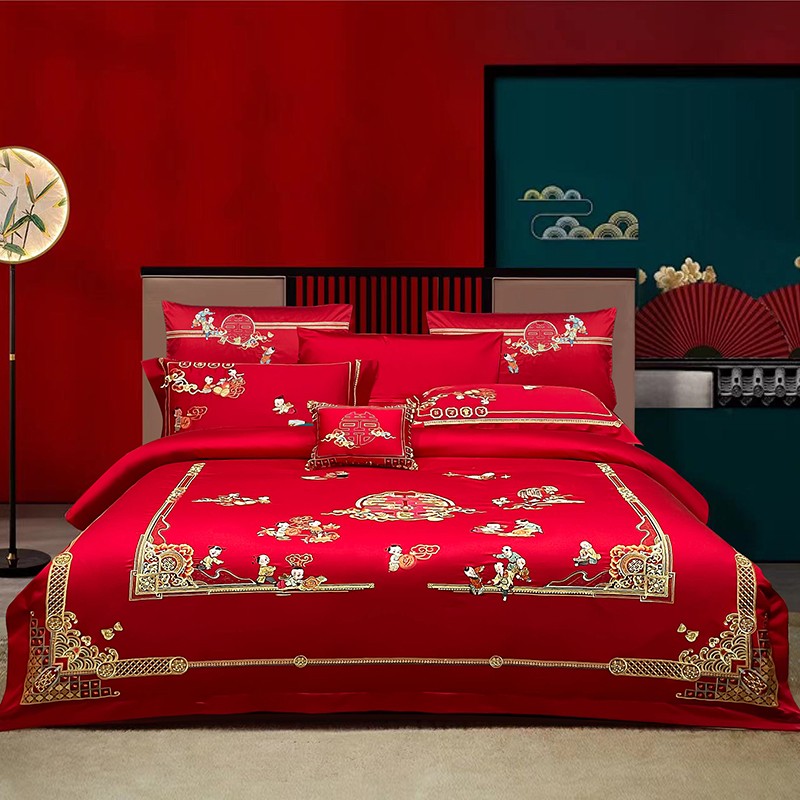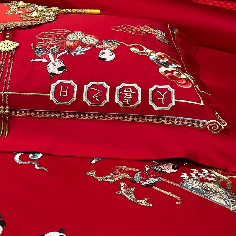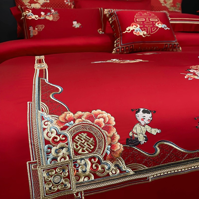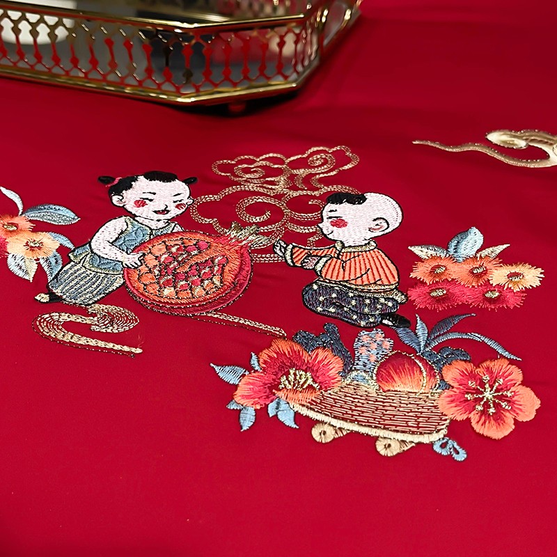 (总) 缔缦 2022新款秋冬婚庆长绒棉刺绣多件套-百子千禧