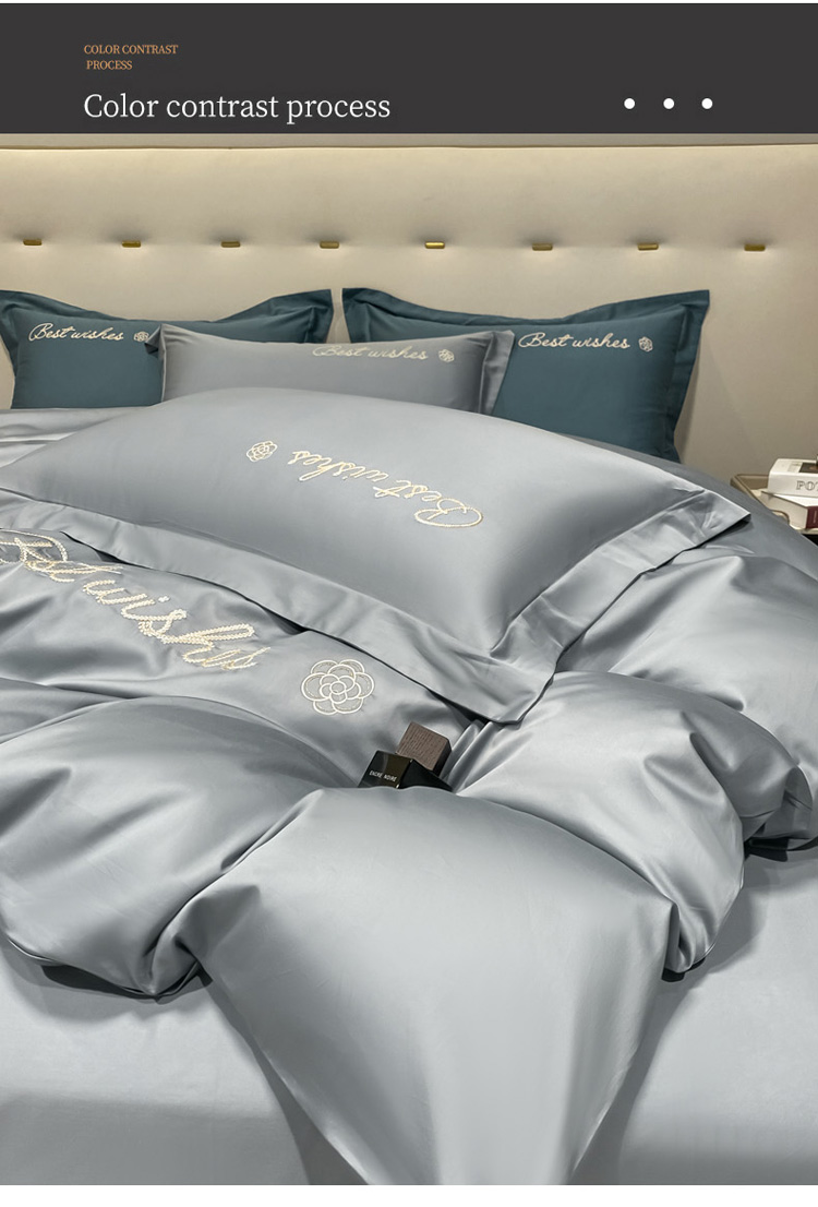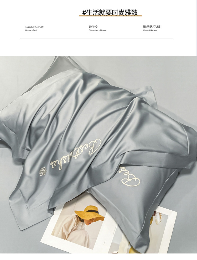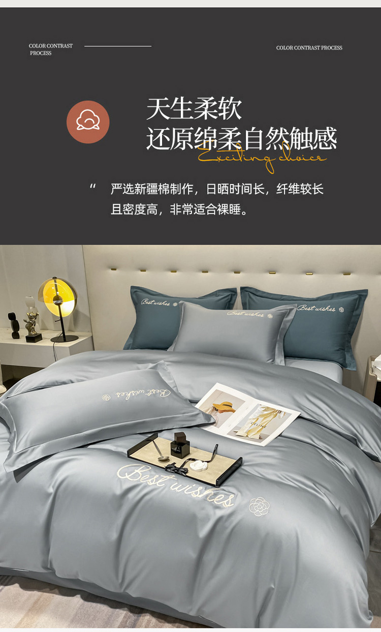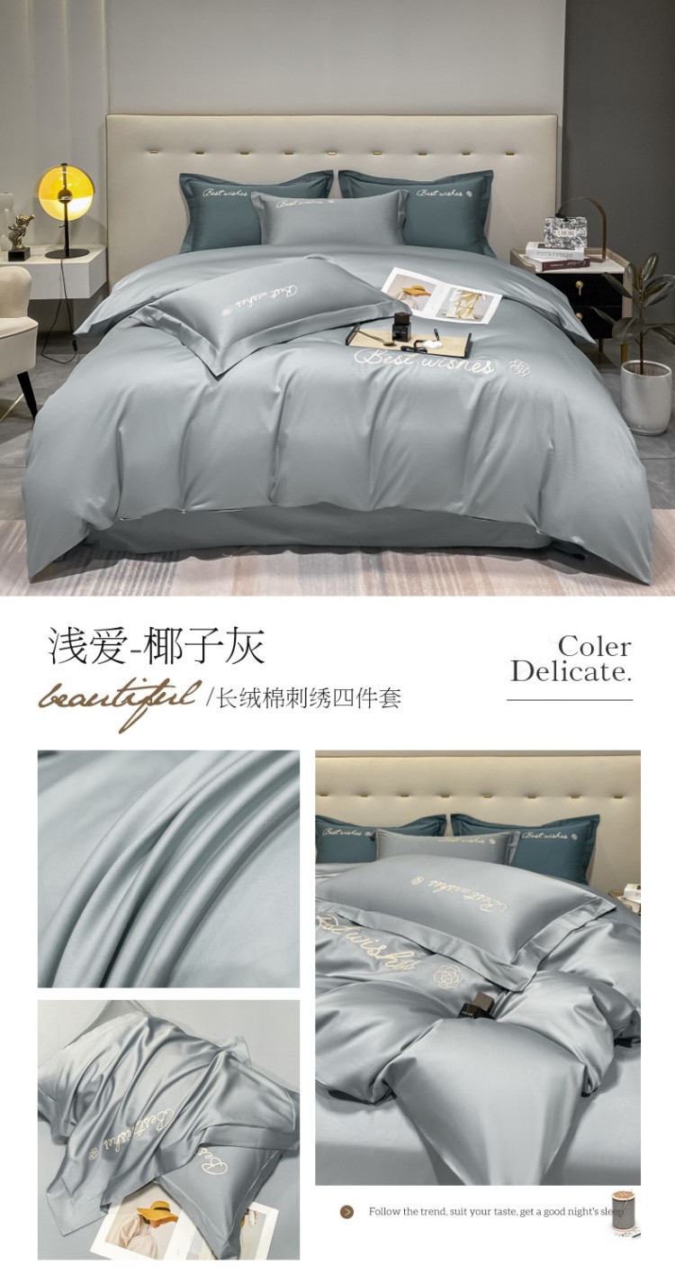 商品名称:寐居 2022新款60支长绒棉刺绣四件套 浅爱-椰子灰