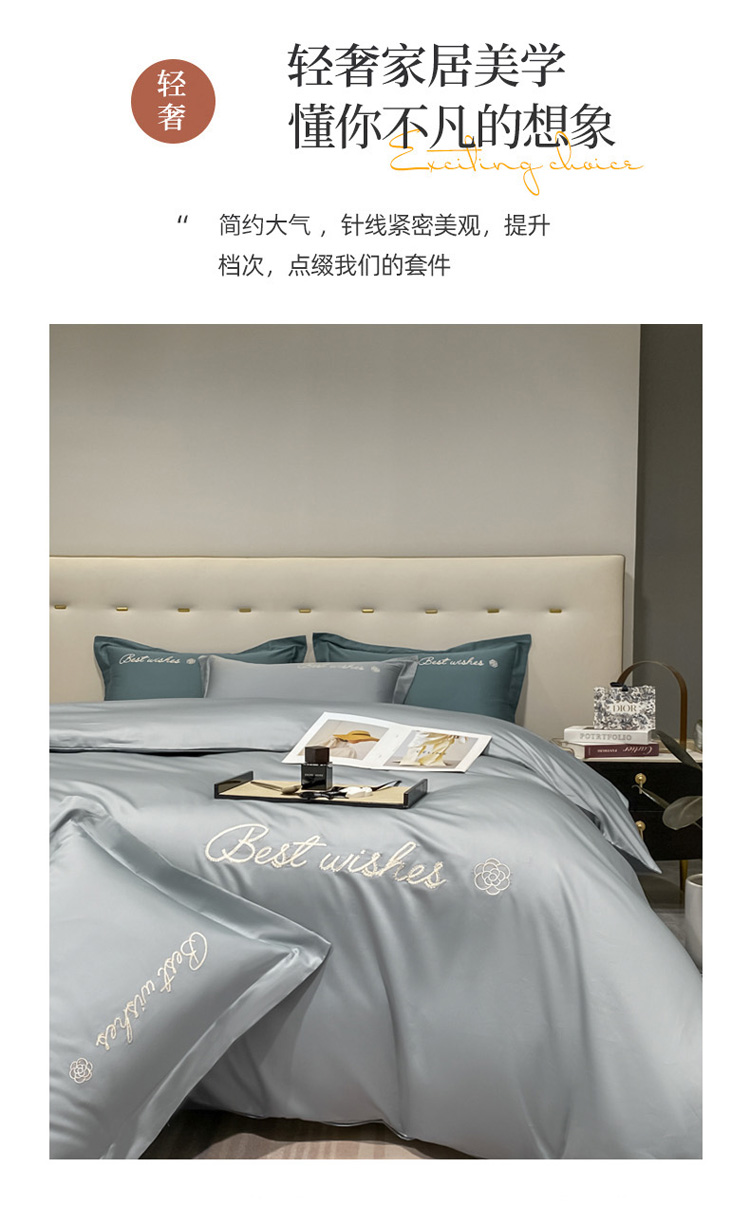 寐居 2022新款60支长绒棉刺绣四件套 浅爱-椰子灰