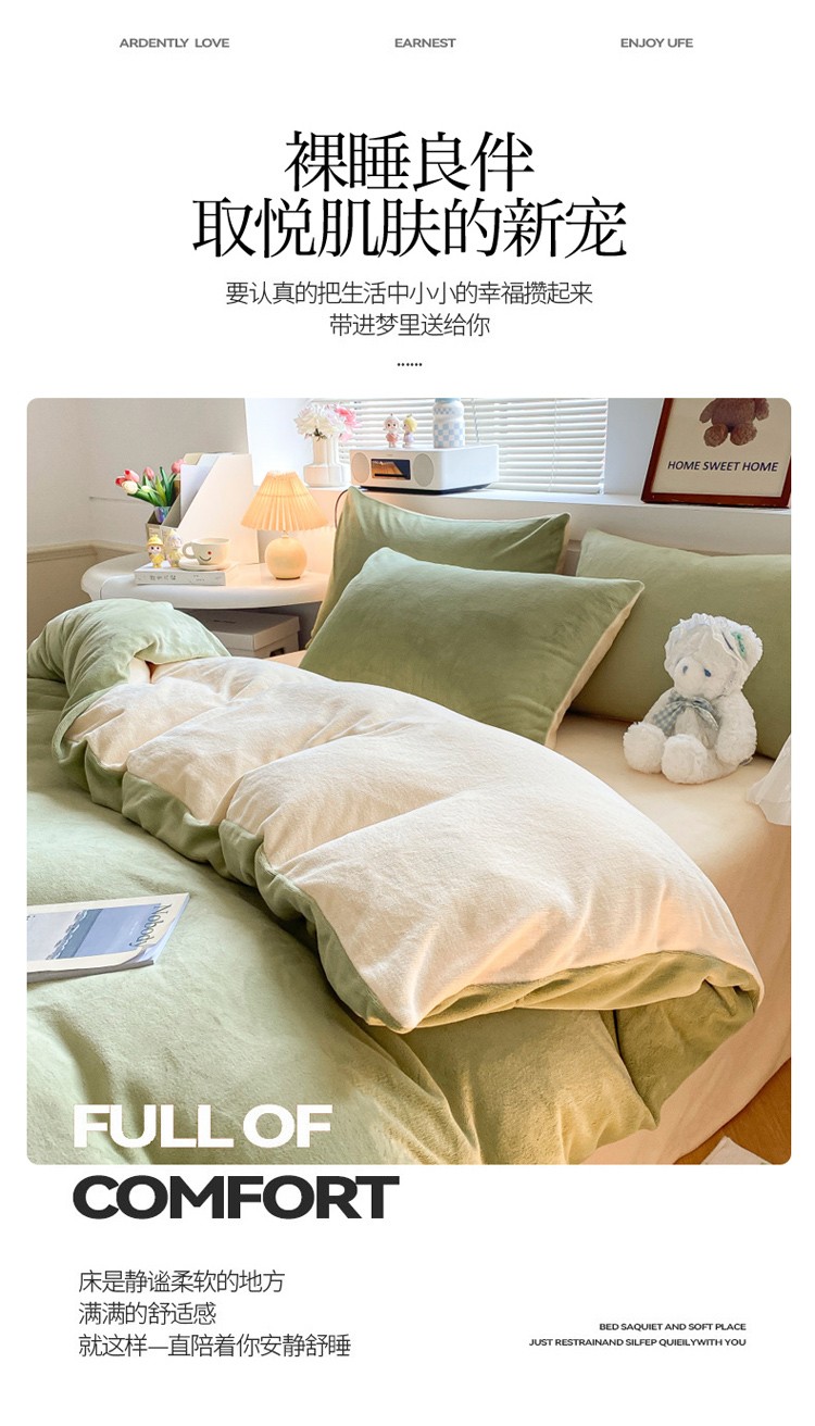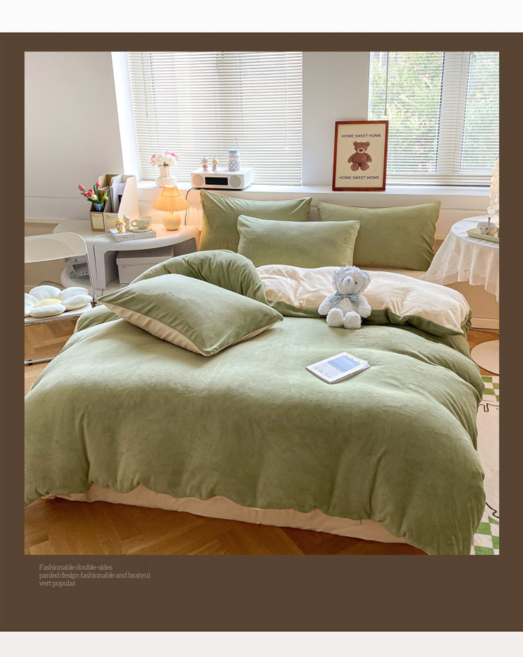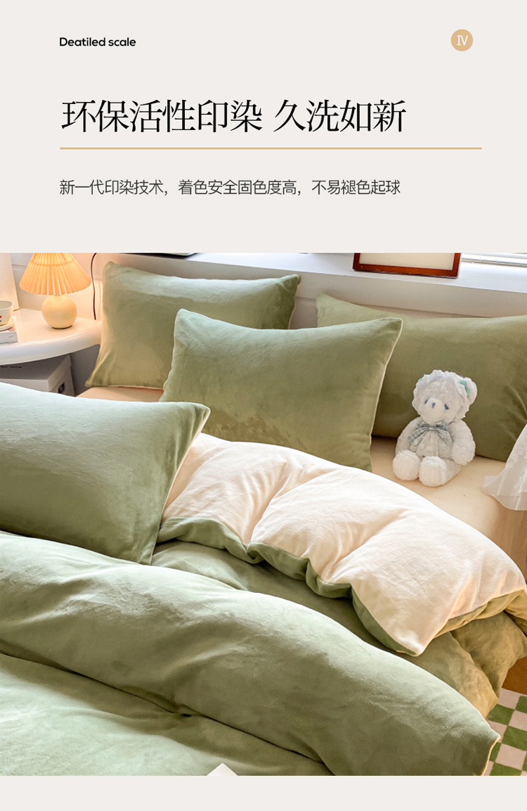 当前位置: 91家纺网 > 商品网购 > 床品套件 > 四件套 > 牛奶绒四件套 > 寐居 2022新款高克重加厚保暖拼色牛奶绒四件套 抹茶芝士