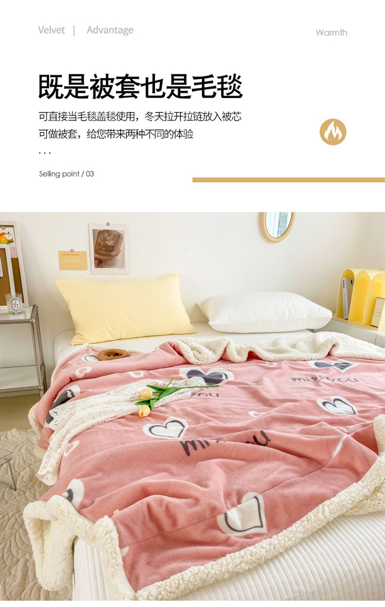 商品名称:寐居 2022新款牛奶绒羊羔绒被套两用多功能盖毯 甜心宝贝