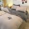 米瑞娜2022新款纯色磨毛双拼四件套 米白灰