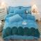 优姿家纺 牛奶绒贴边绣花荷叶花边保暖四件 花仙子-蓝