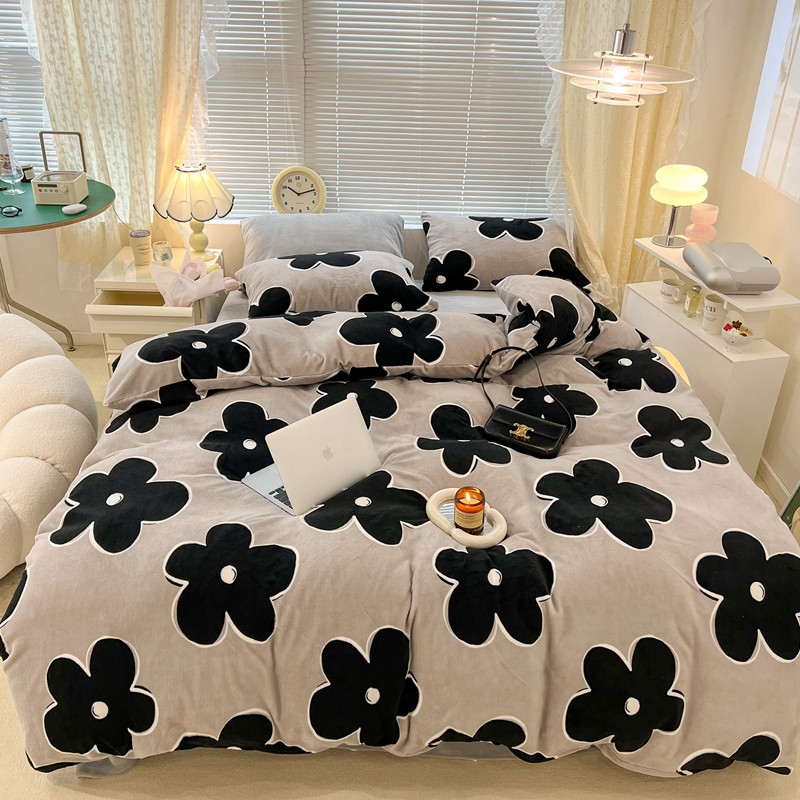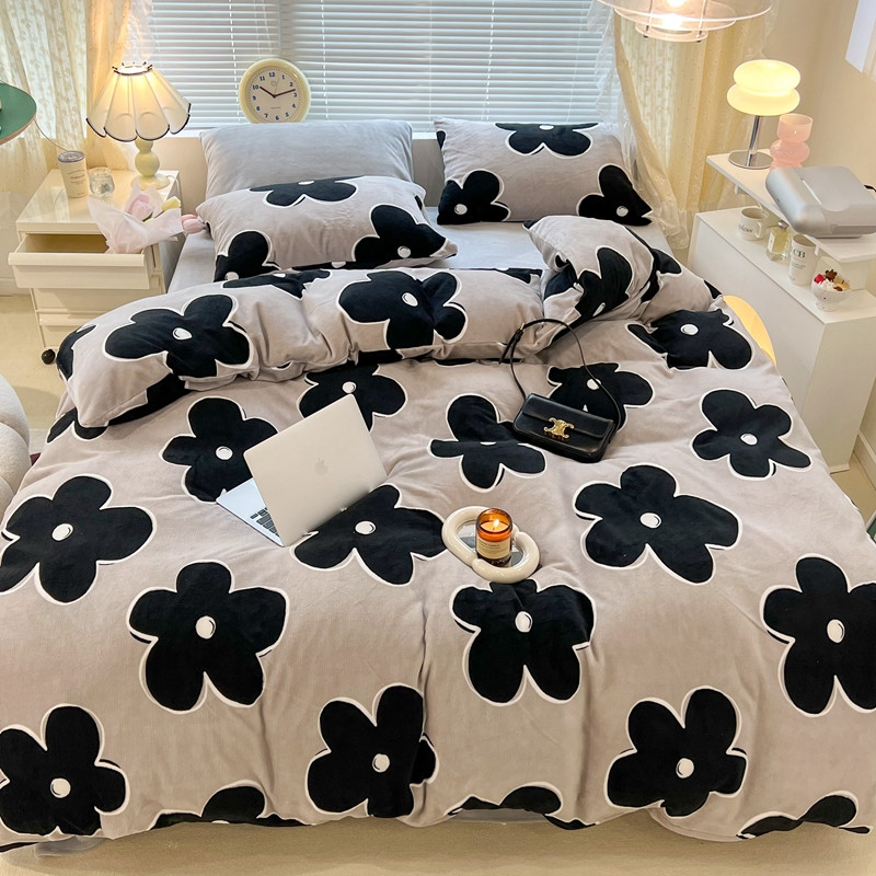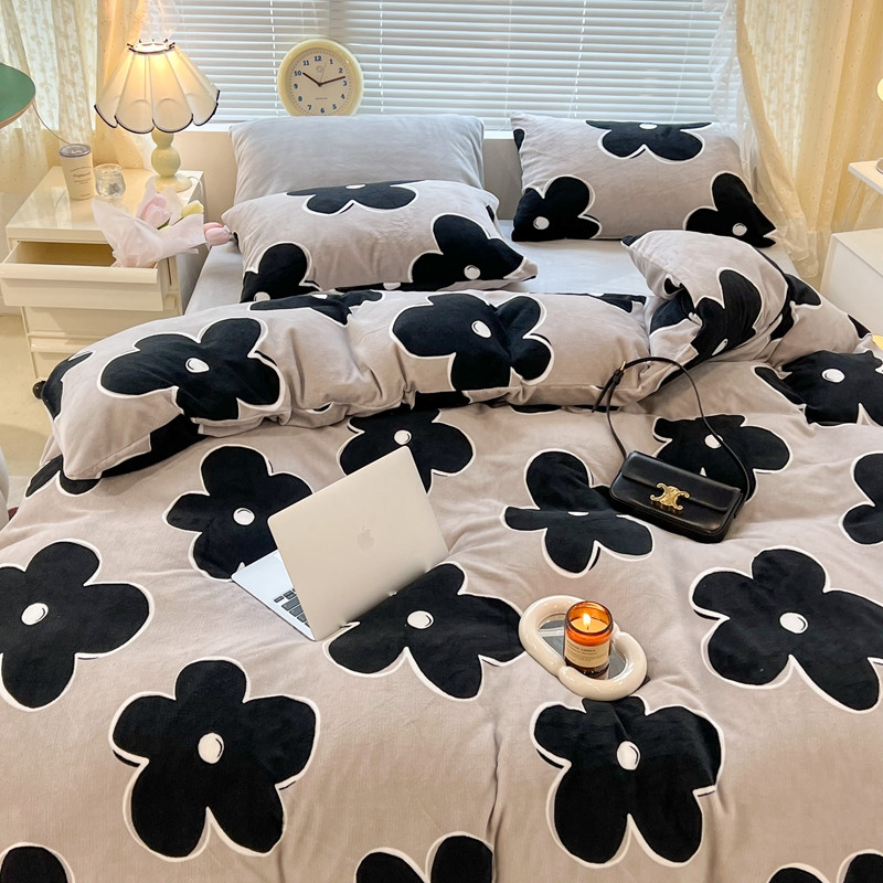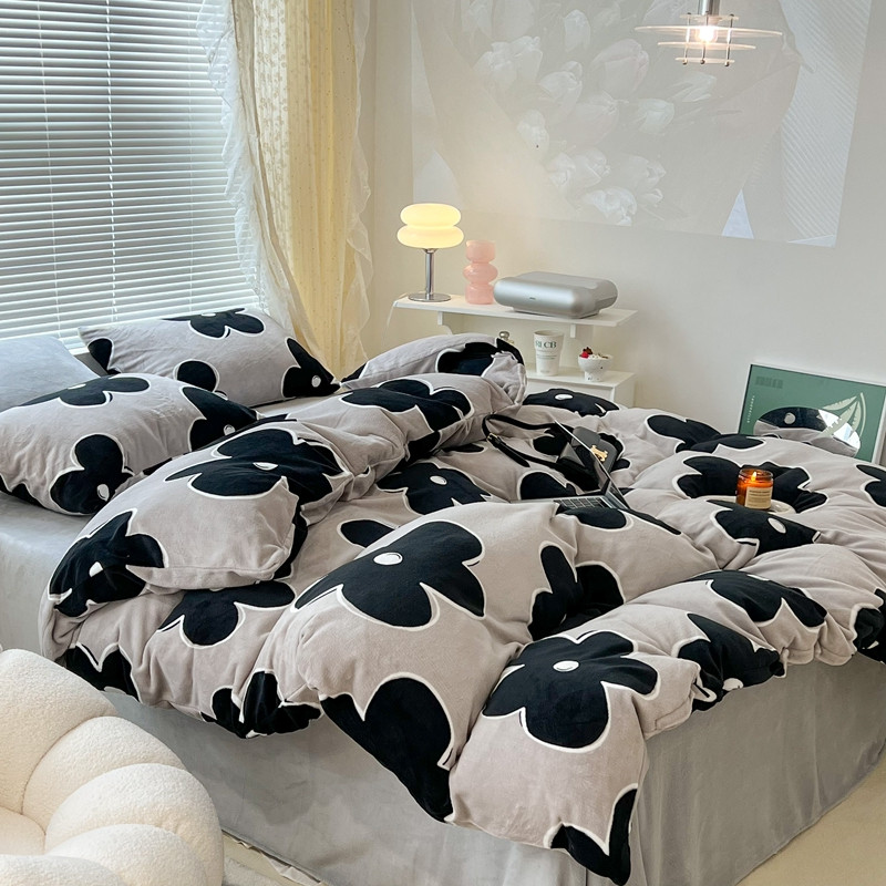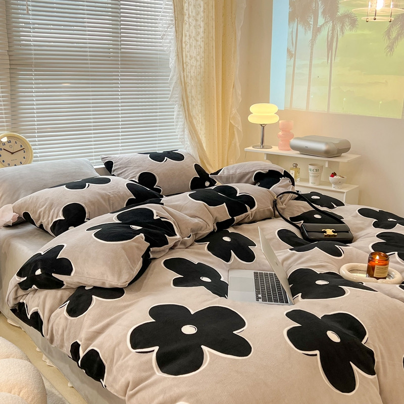 昔可 2022新款牛奶绒四件套花朵系列 冷雾花茶