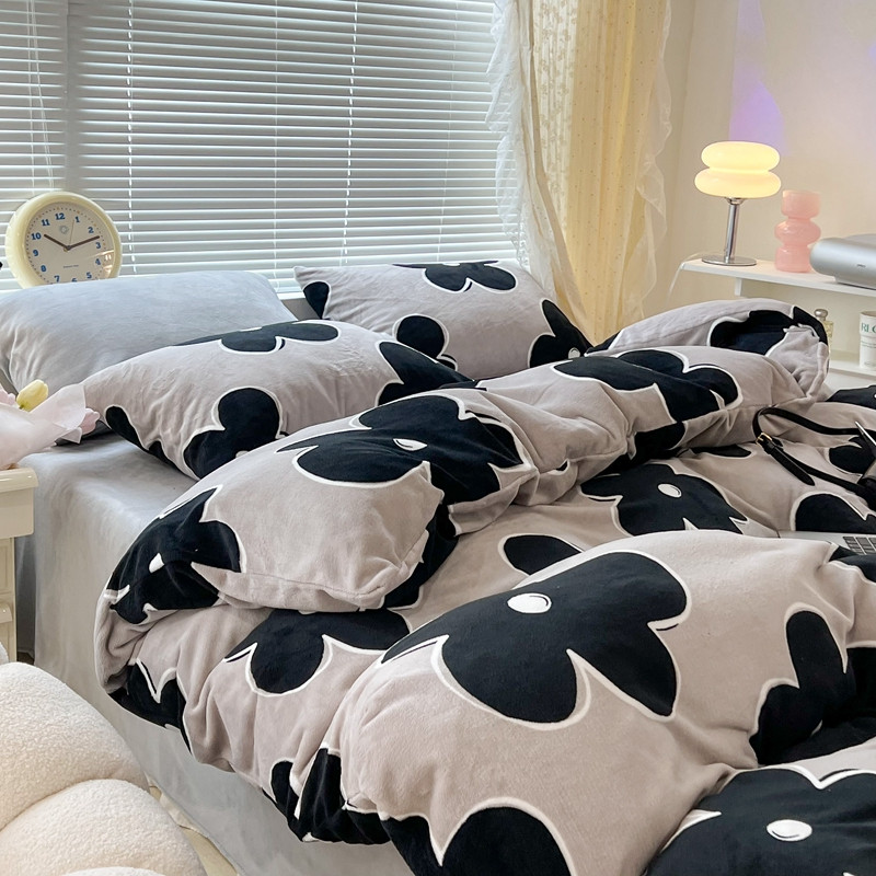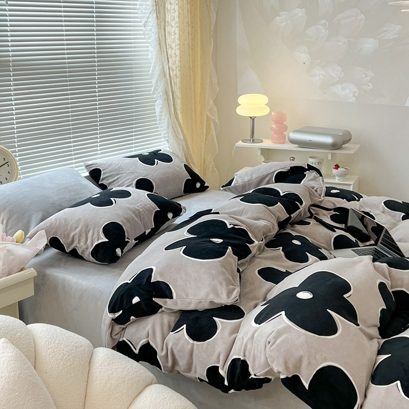 (总)昔可家纺 2024新款印花牛奶绒四件套系列-洛丽塔风,萝莉小兔,小熊烘焙屋,小熊玩偶屋